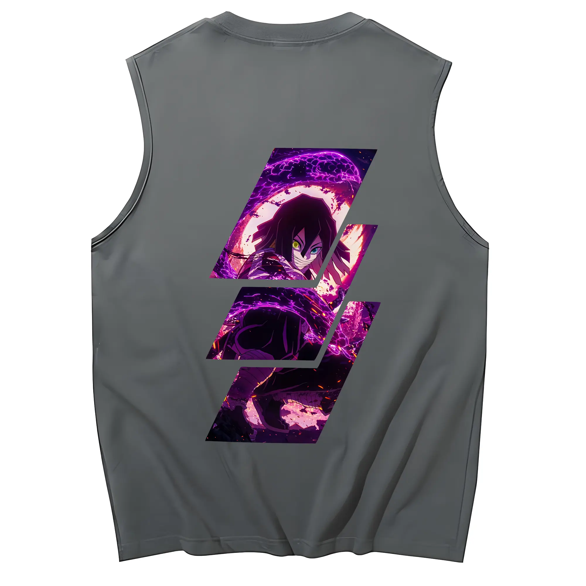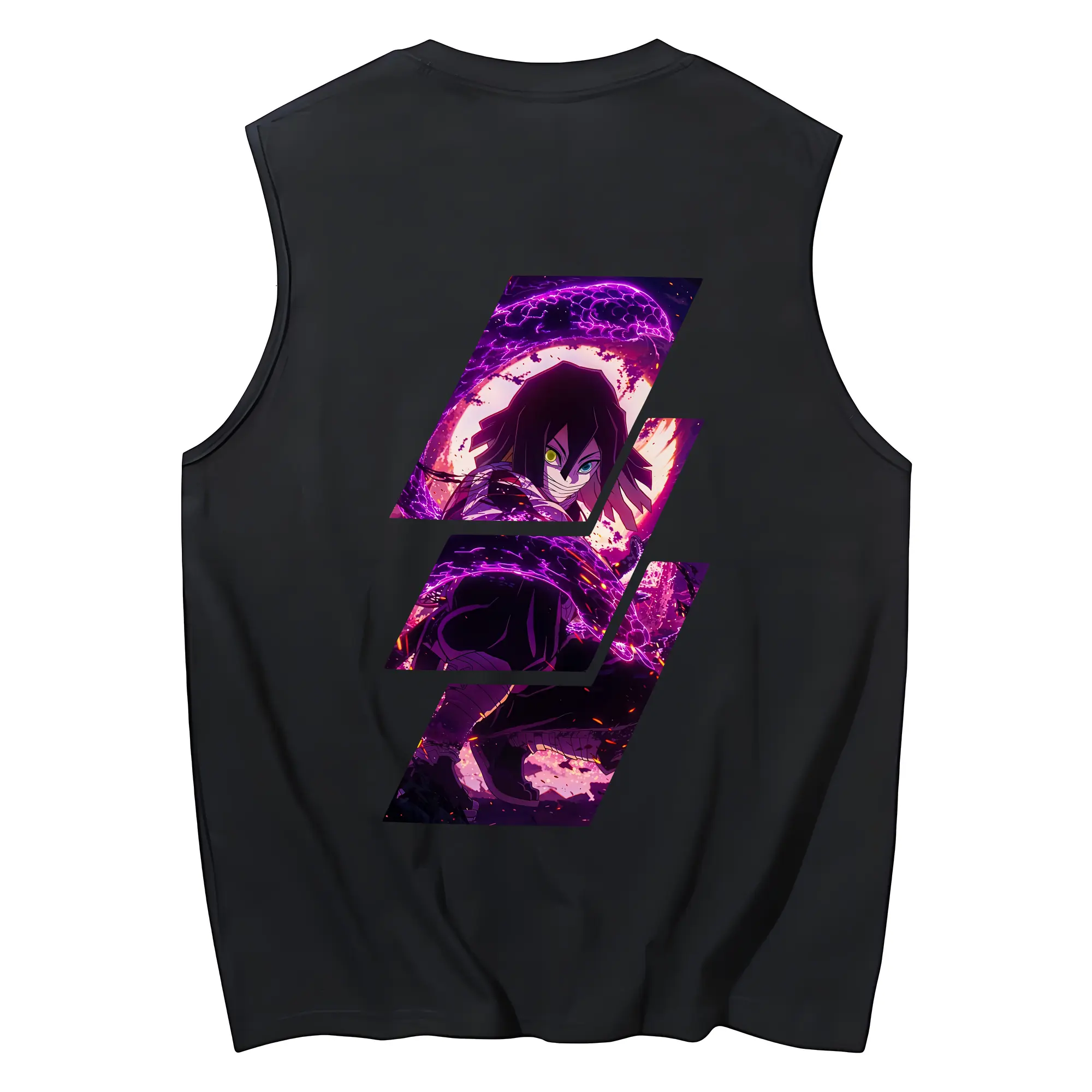 鬼滅の刃 グッズ,伊黒 小芭内 - コットン100% タンクトップ ・ 背面プリント ・ タイトシルエット ・ 快適 通気性 ・ スポーツ カジュアル 散歩用