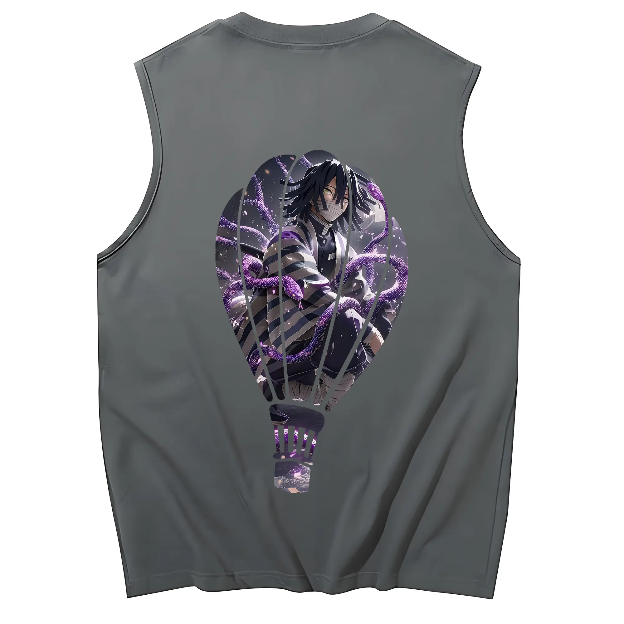 鬼滅の刃 グッズ,伊黒 小芭内 - コットン100% タンクトップ ・ 背面プリント ・ タイトシルエット ・ 快適 通気性 ・ スポーツ カジュアル 散歩用