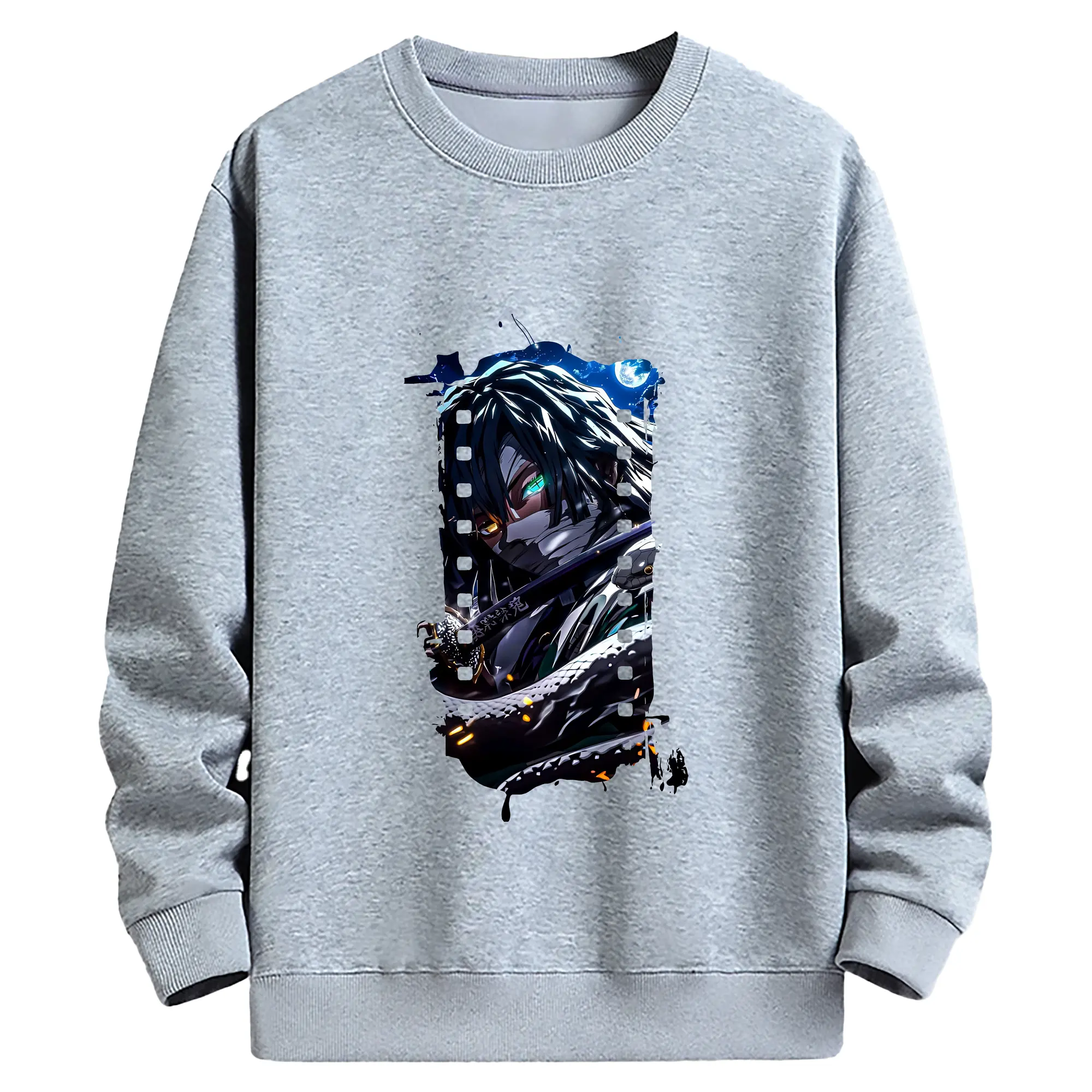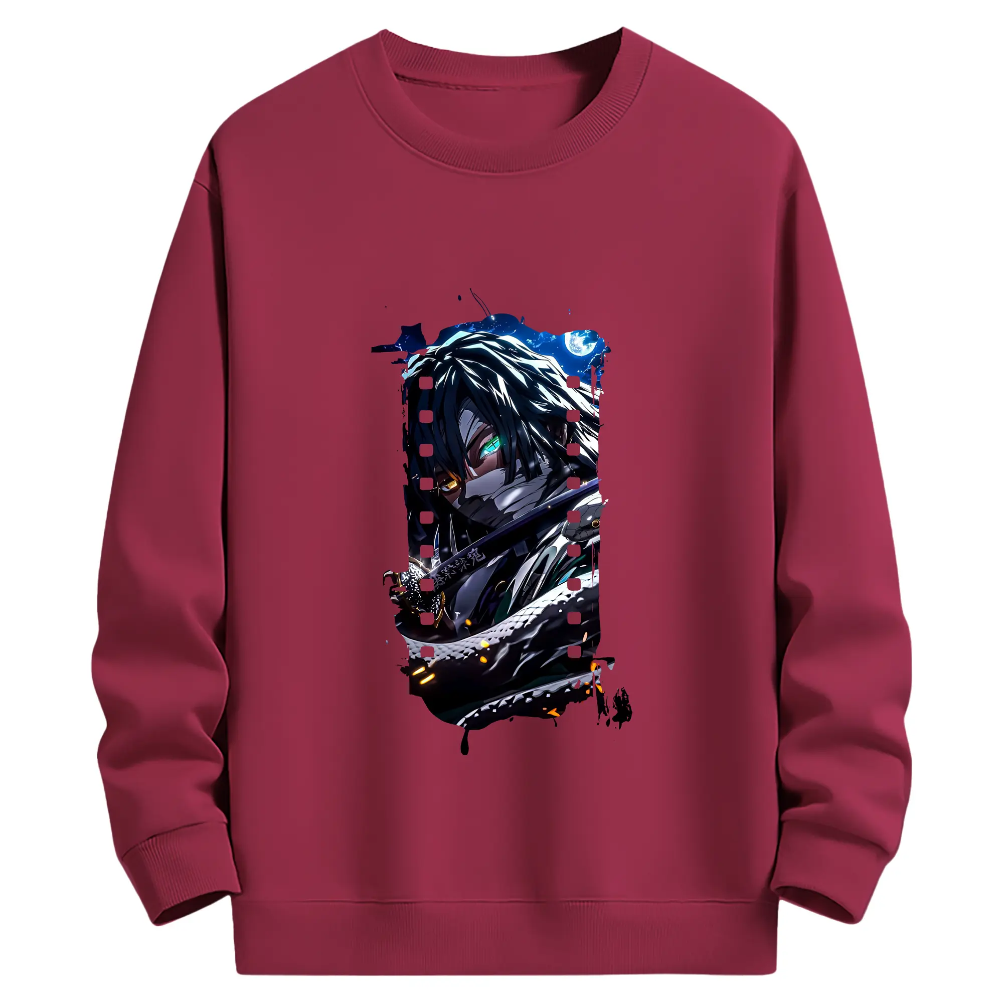 鬼滅の刃 グッズ,伊黒 小芭内 - 薄手 クルーネック スウェット 裏毛260g · ポリエステル 春秋向け カジュアル 男女兼用 · トレーナー デイリー スポーツ 散歩に最適