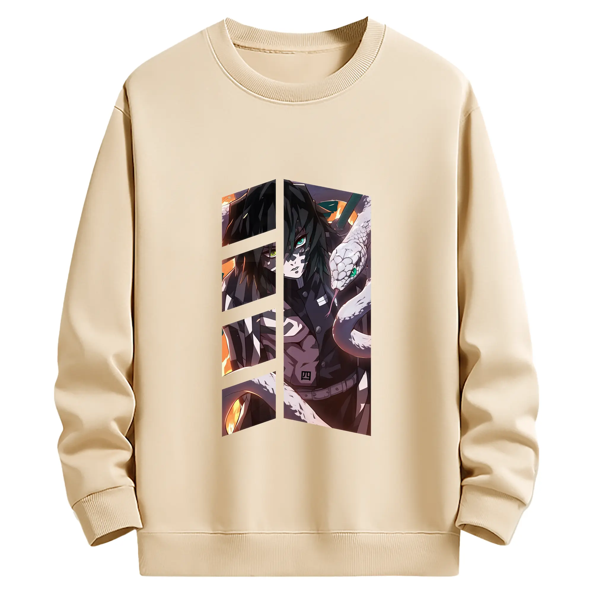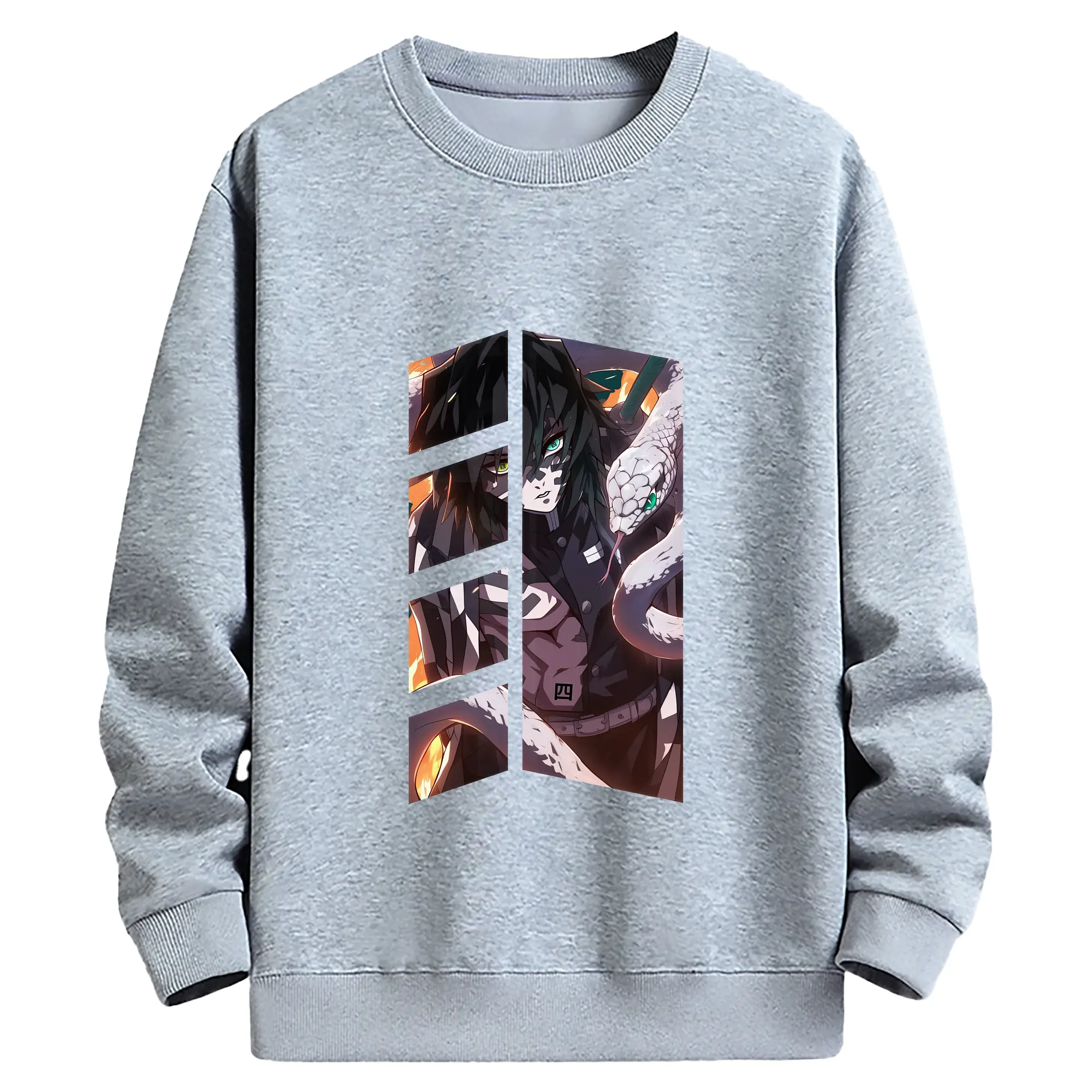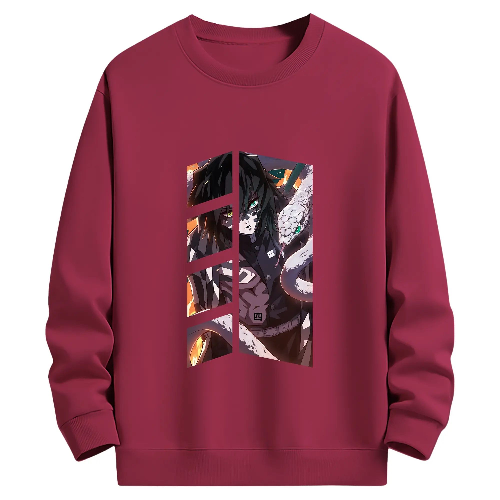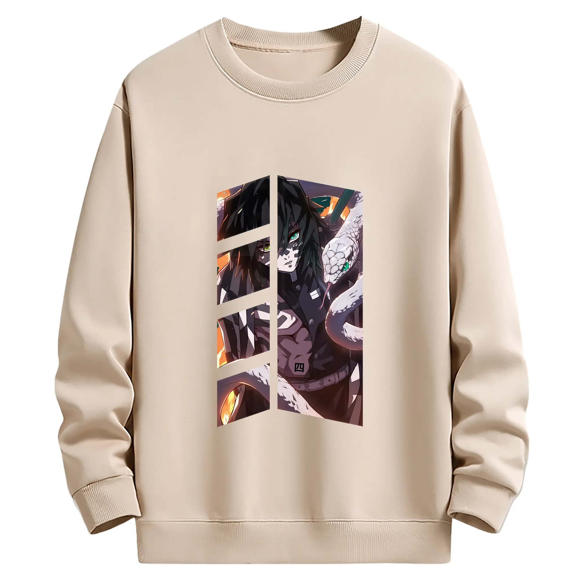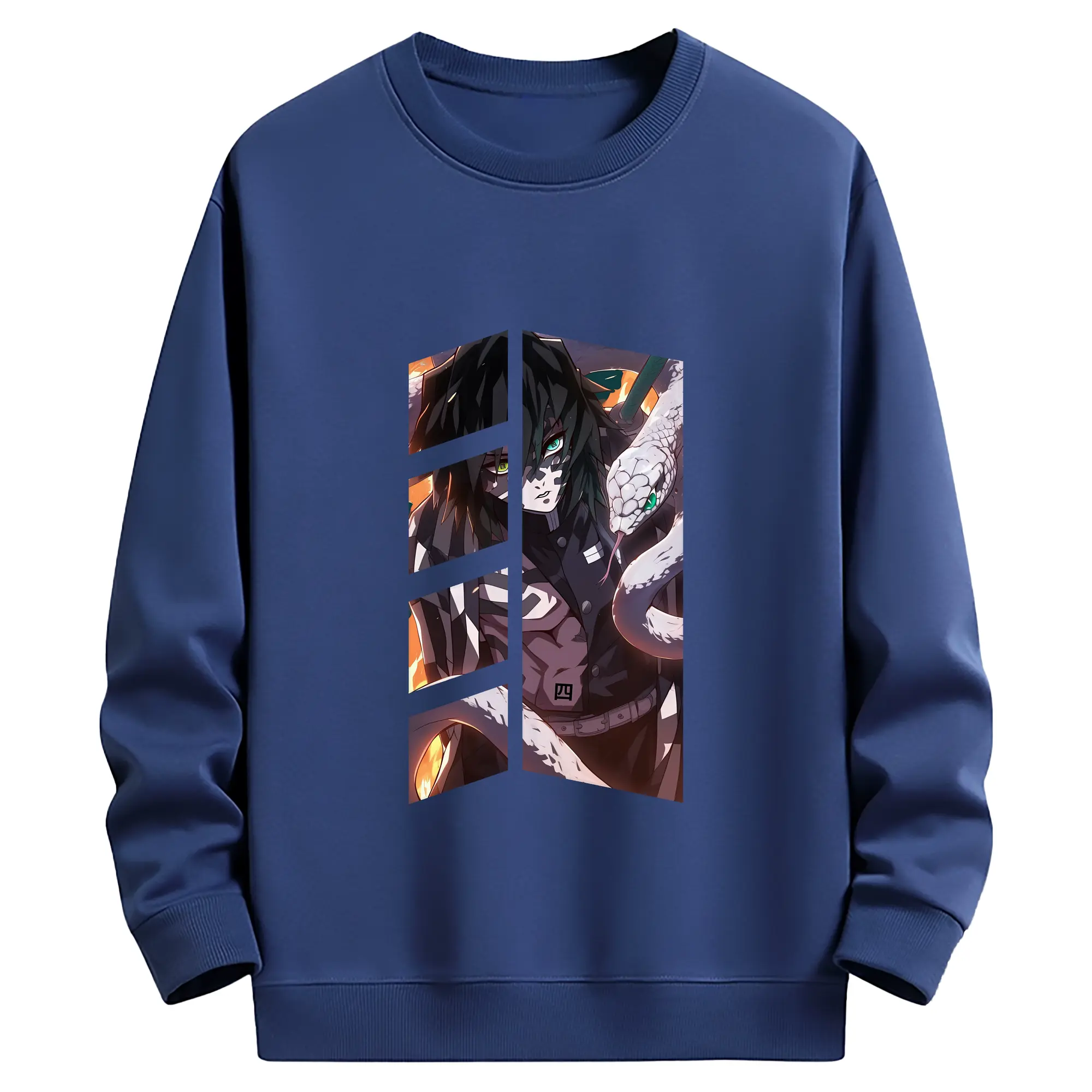 鬼滅の刃 グッズ,伊黒 小芭内 - 薄手 クルーネック スウェット 裏毛260g · ポリエステル 春秋向け カジュアル 男女兼用 · トレーナー デイリー スポーツ 散歩に最適