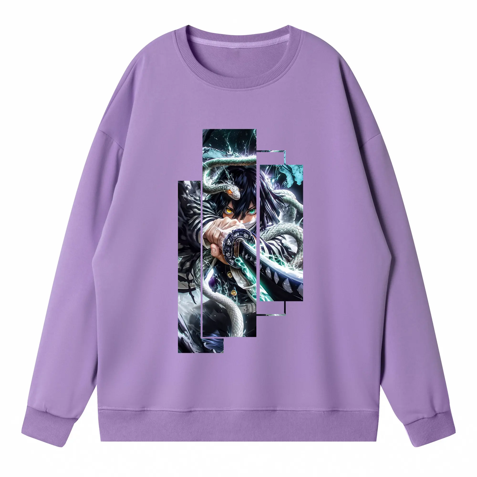 鬼滅の刃 グッズ,伊黒 小芭内 - 高品質 クルーネック スウェット ・ コットン59% ポリエステル41% ・ ユニセックス 長袖 トレーナー ・ カジュアル デイリー スポーツ 散歩用