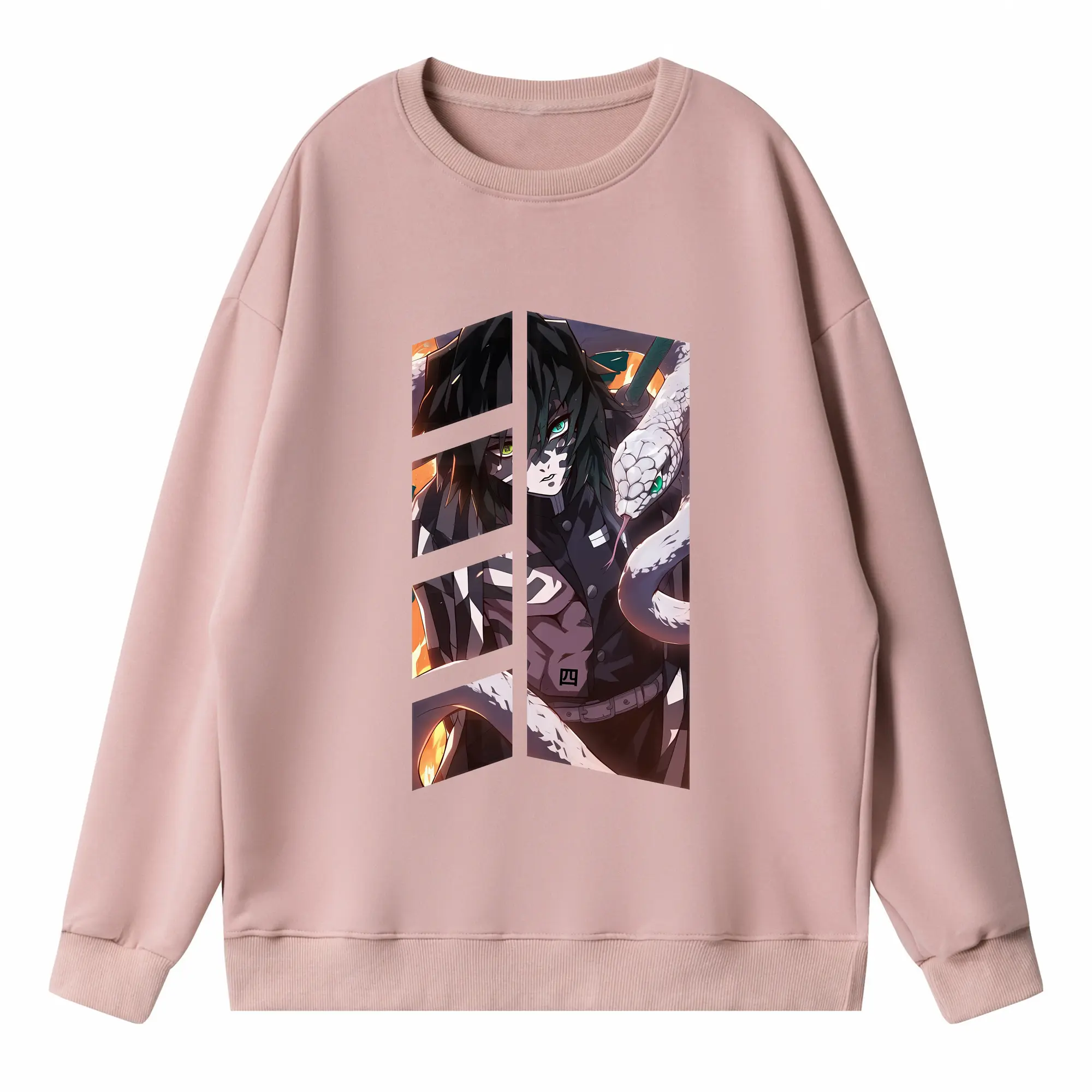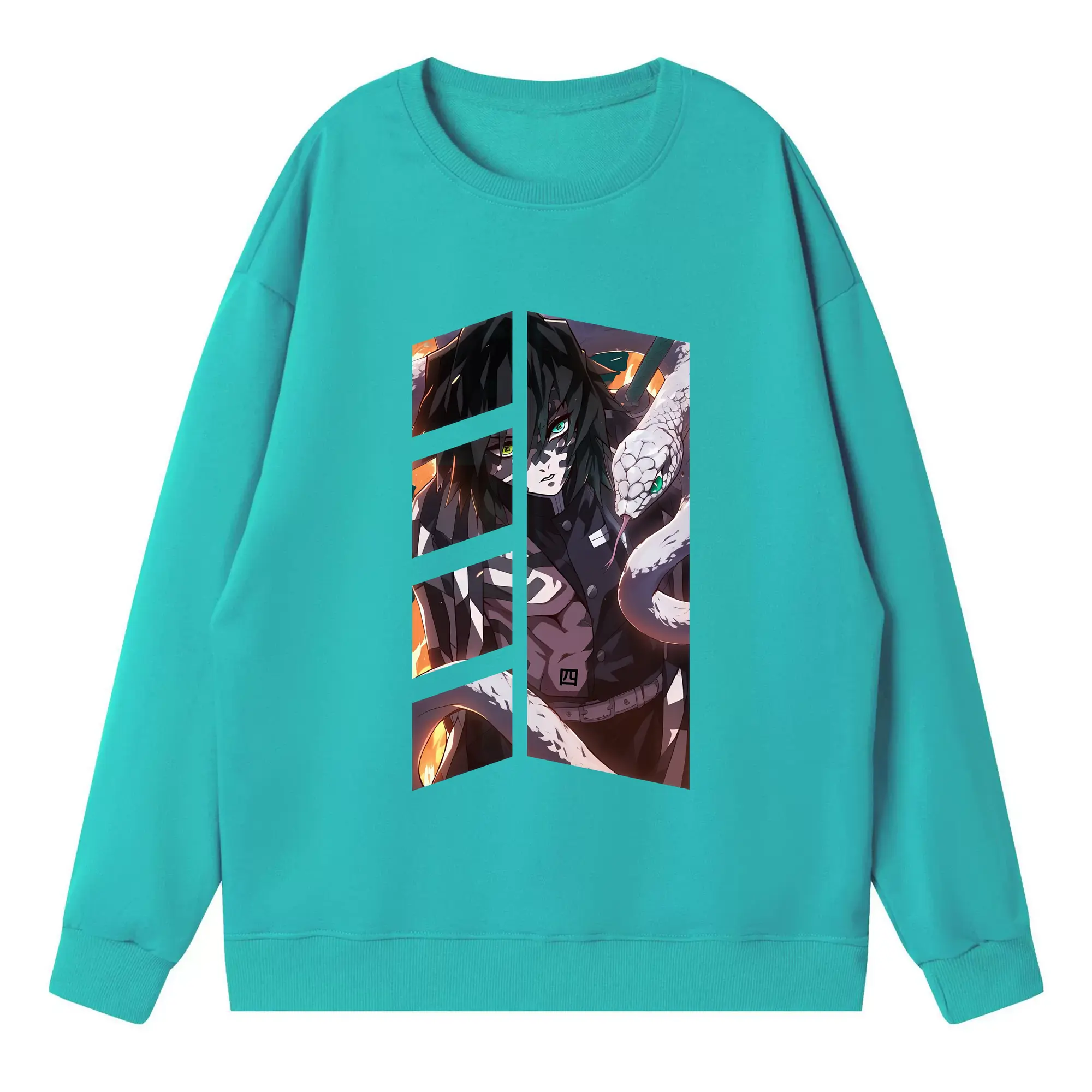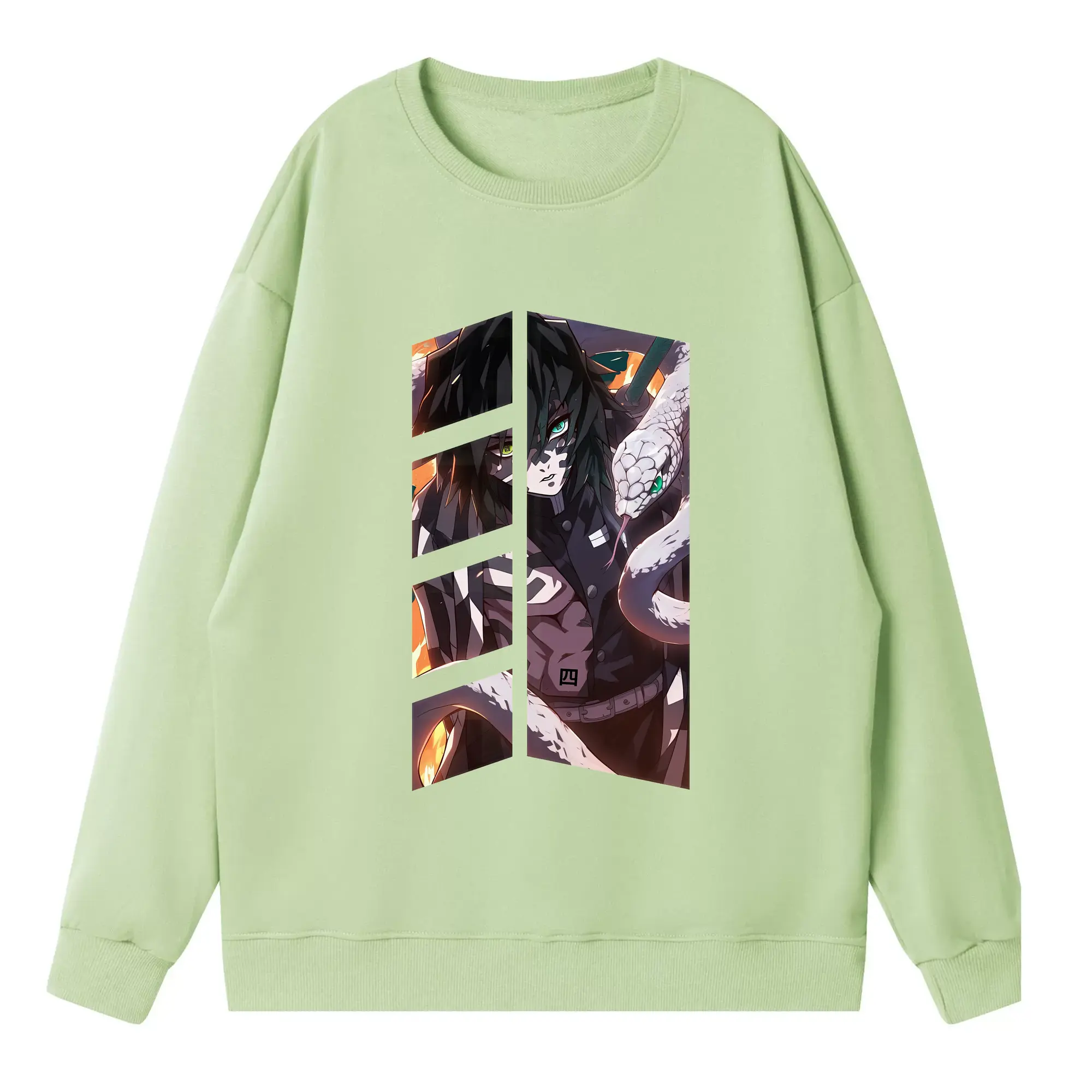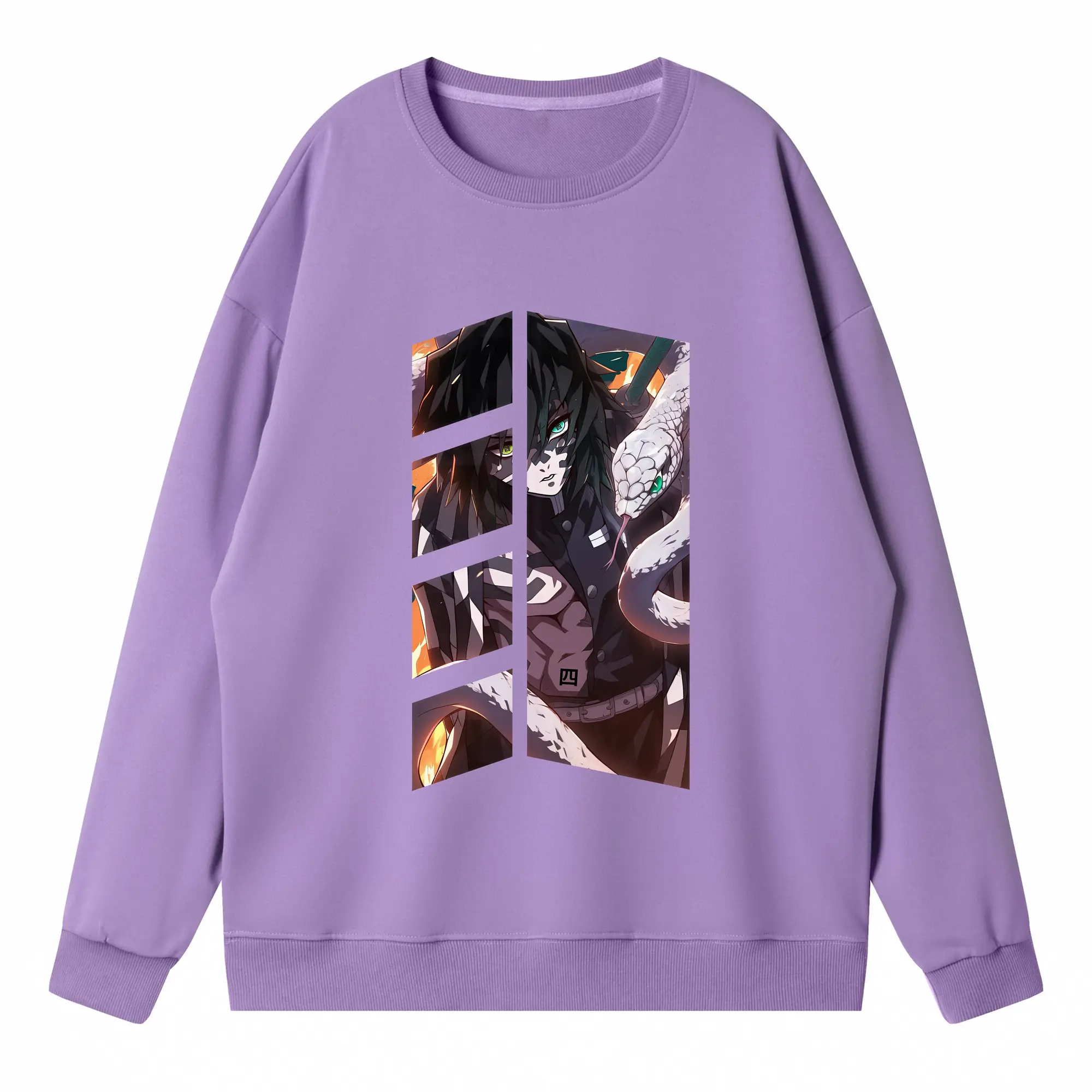 鬼滅の刃 グッズ,伊黒 小芭内 - 高品質 クルーネック スウェット ・ コットン59% ポリエステル41% ・ ユニセックス 長袖 トレーナー ・ カジュアル デイリー スポーツ 散歩用