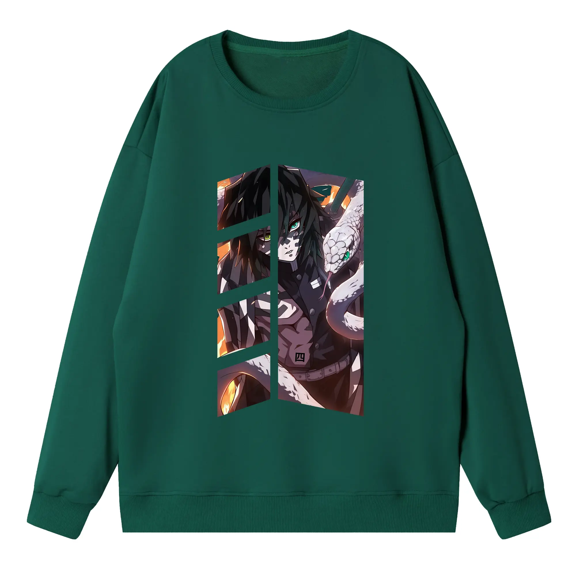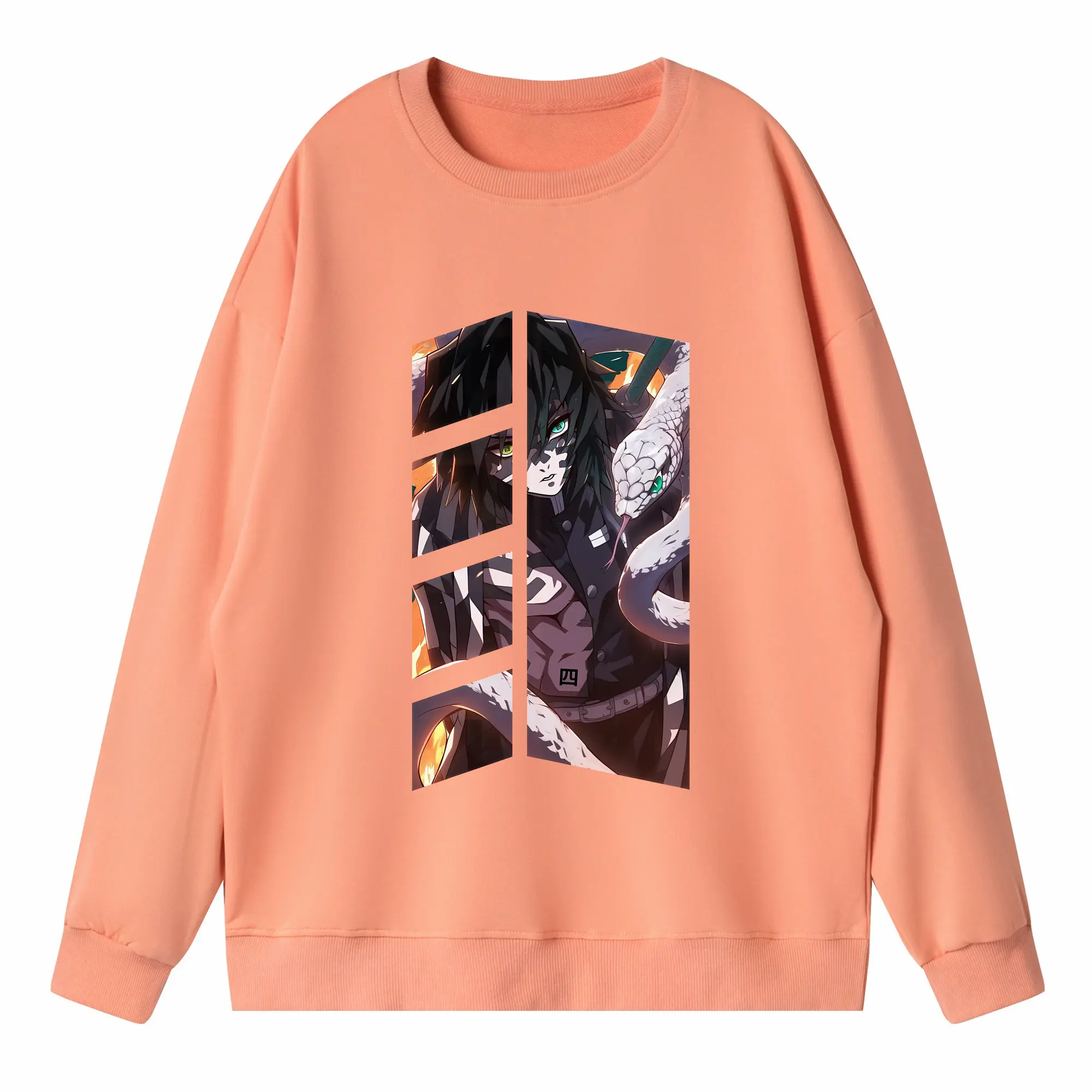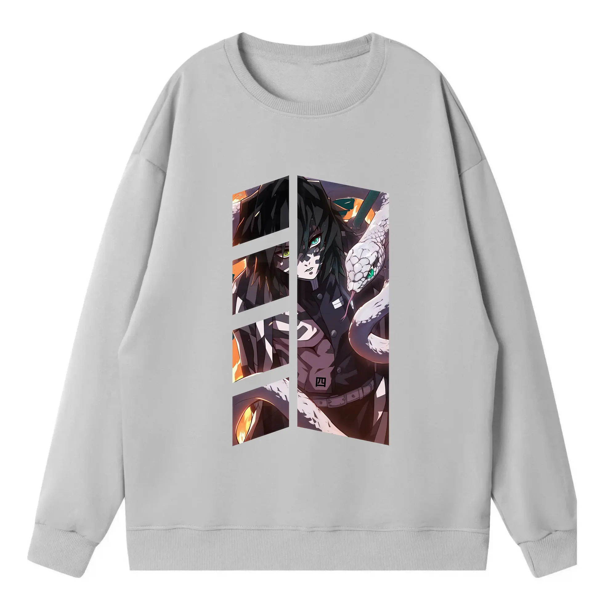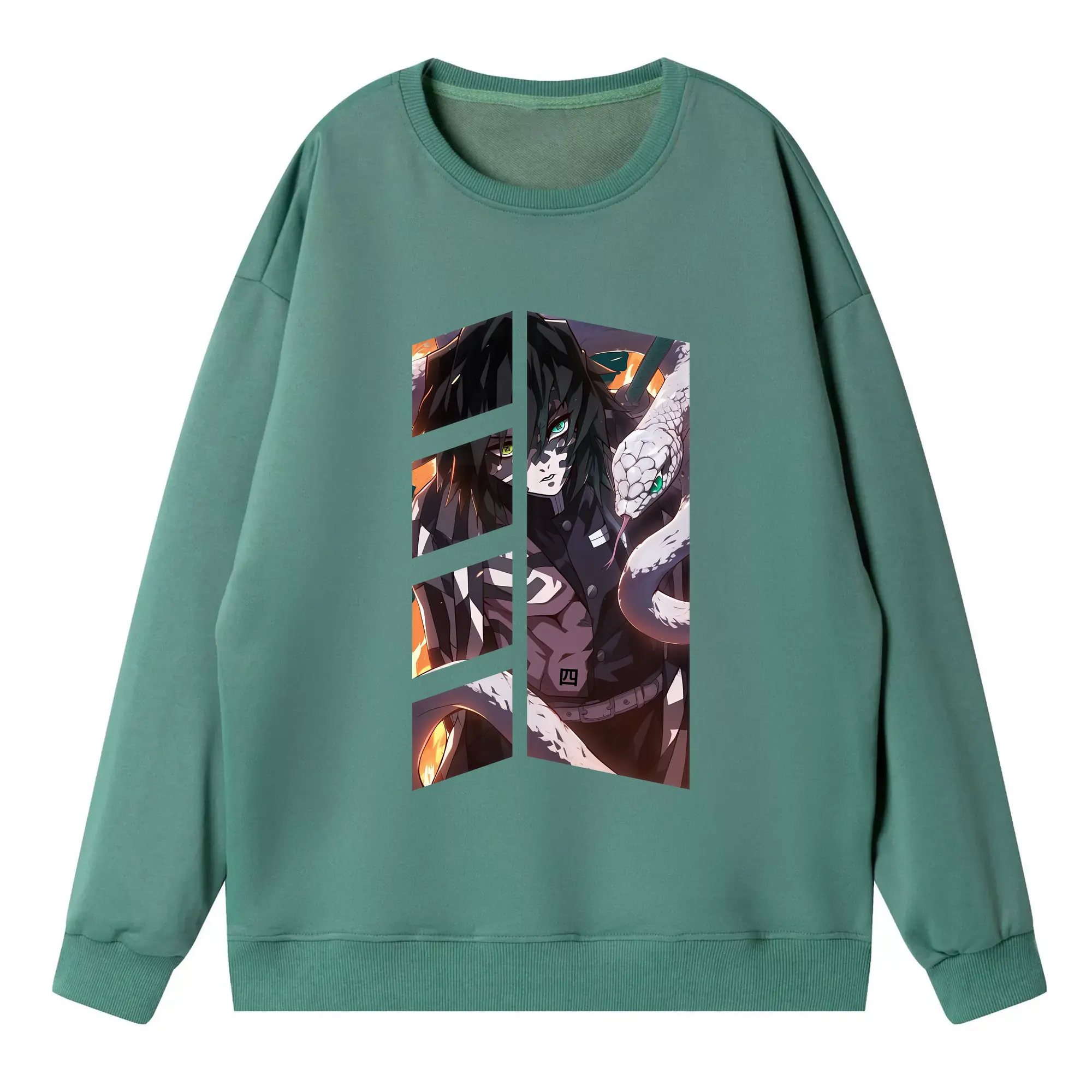 鬼滅の刃 グッズ,伊黒 小芭内 - 高品質 クルーネック スウェット ・ コットン59% ポリエステル41% ・ ユニセックス 長袖 トレーナー ・ カジュアル デイリー スポーツ 散歩用