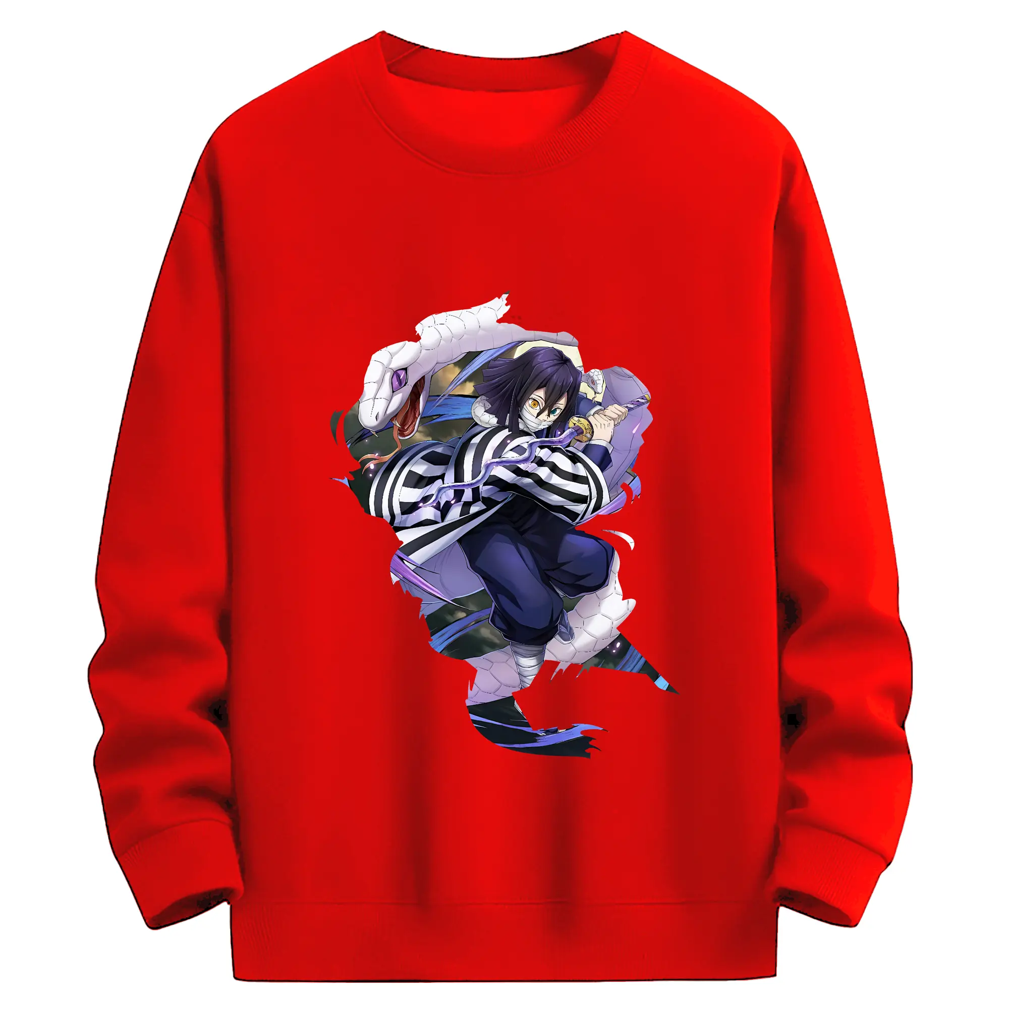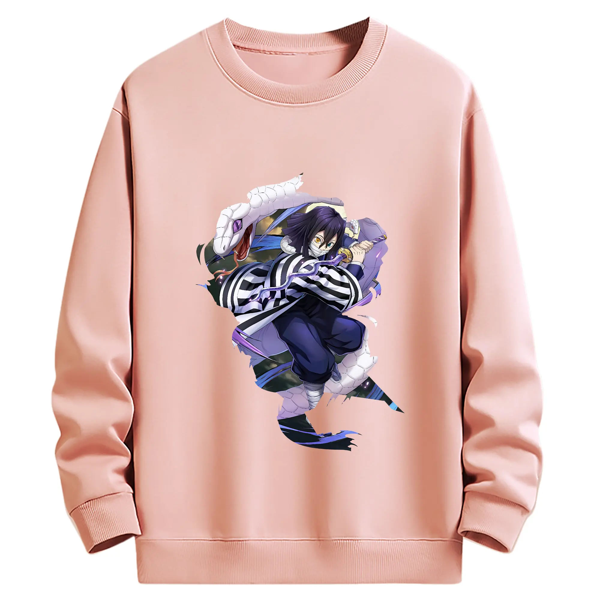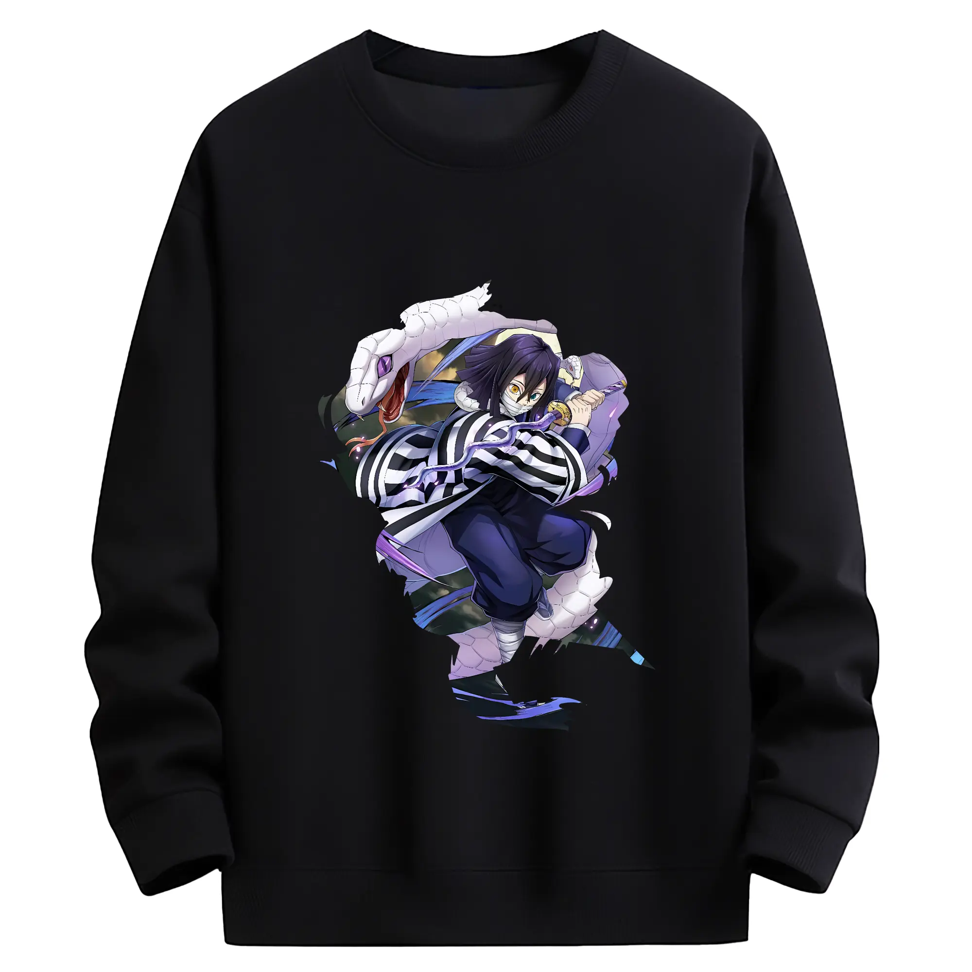 鬼滅の刃 グッズ,伊黒 小芭内 - 薄手 クルーネック スウェット 裏毛260g · ポリエステル 春秋向け カジュアル 男女兼用 · トレーナー デイリー スポーツ 散歩に最適