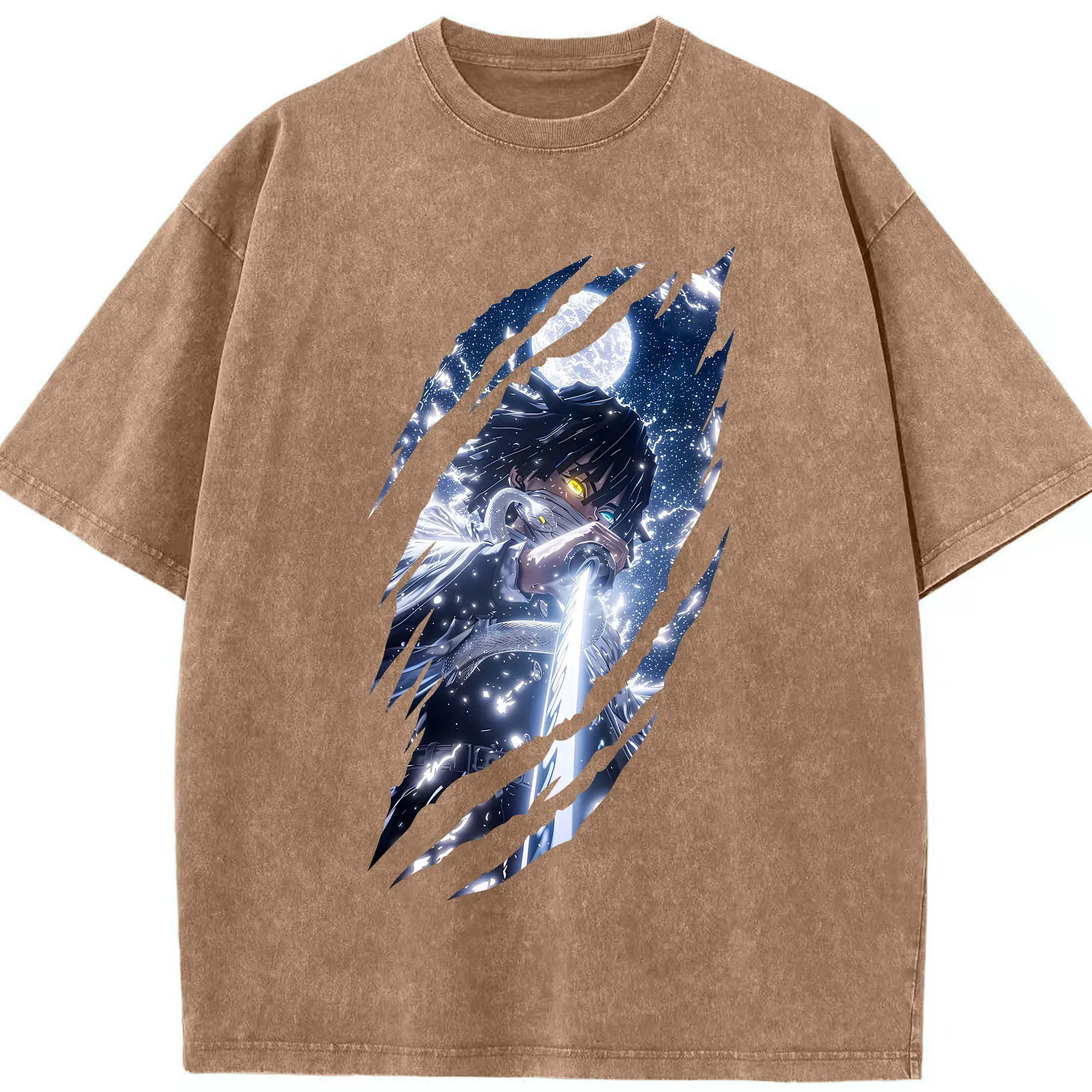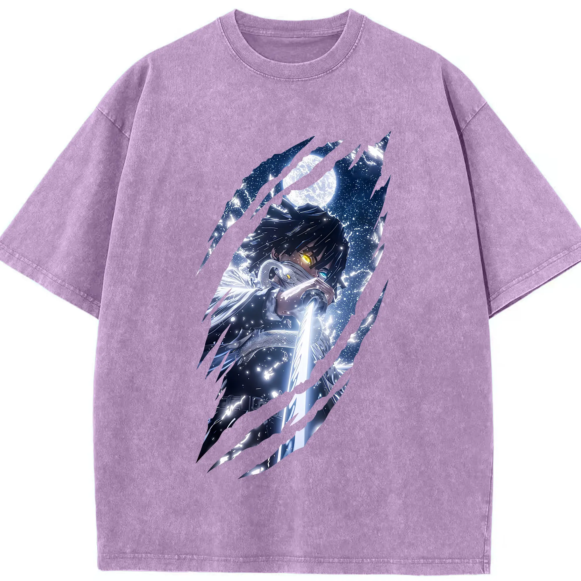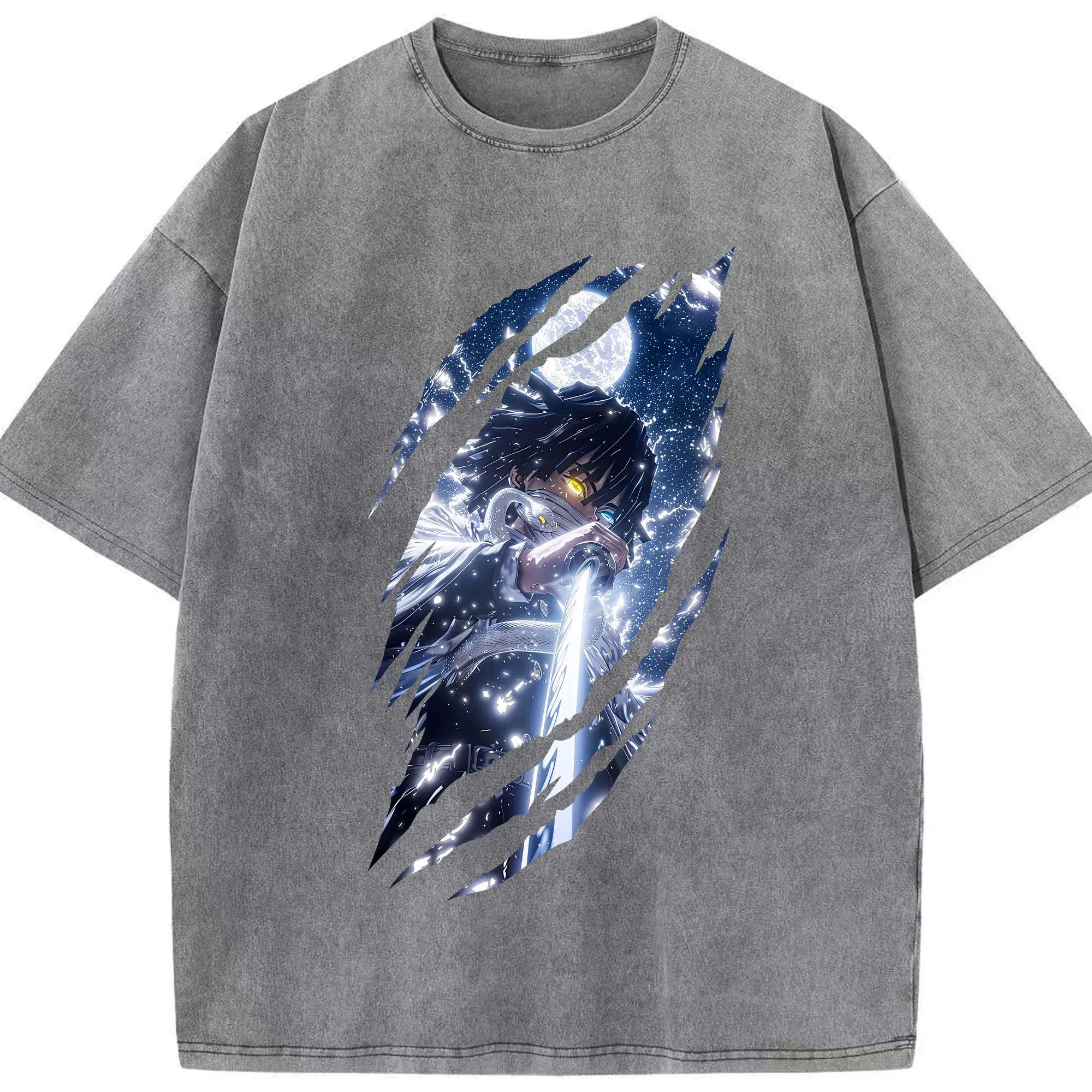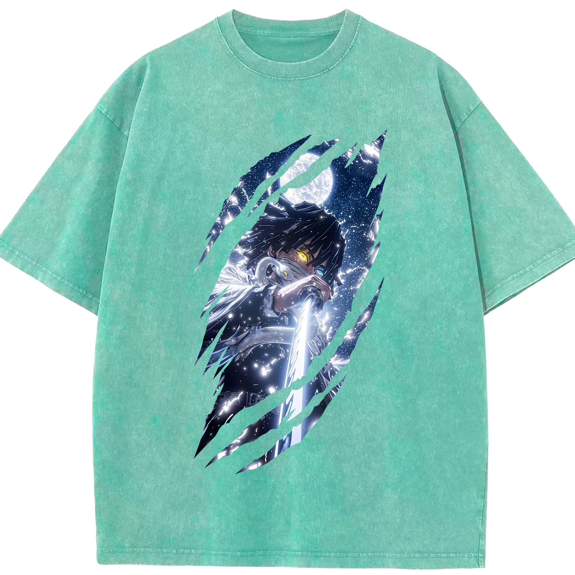 鬼滅の刃 グッズ,伊黒 小芭内 - 綿100% 半袖Tシャツ ・ フロントプリント ・ 快適 通気性 ・ 日常使い 散歩 スポーツ用