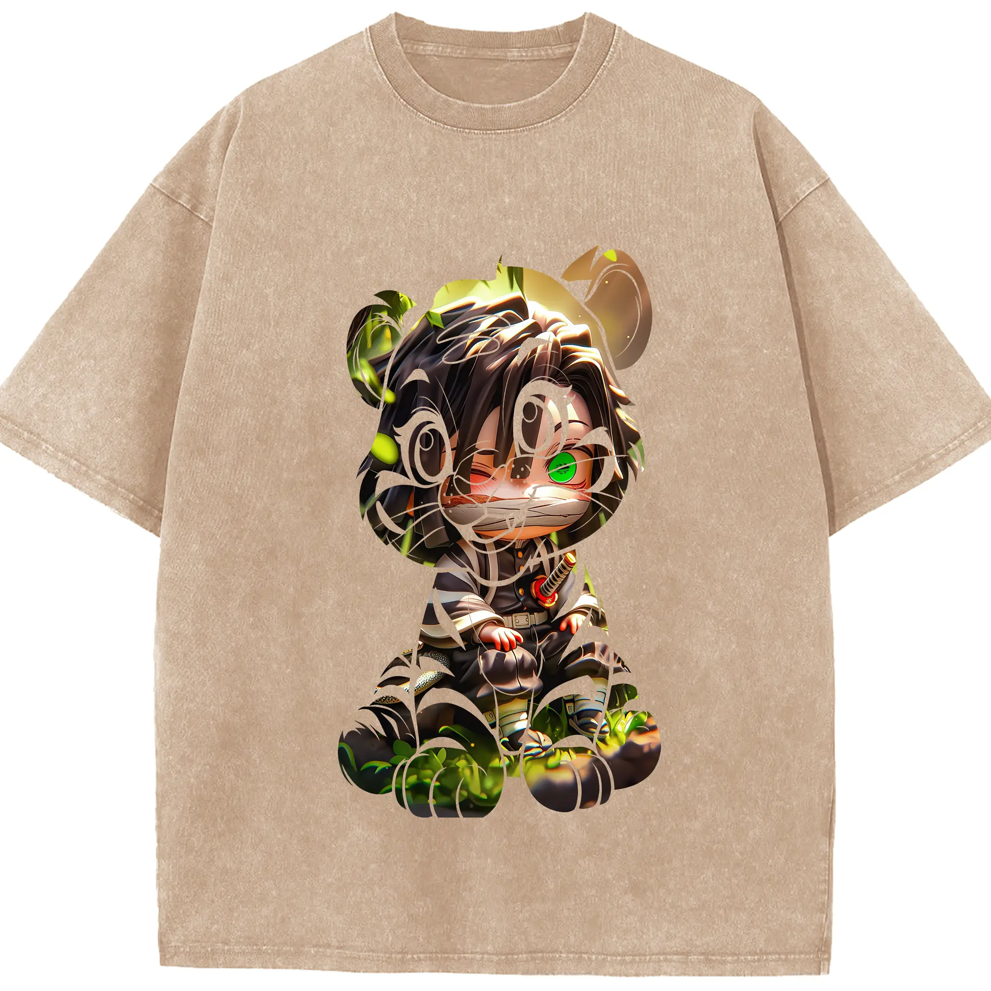 鬼滅の刃 グッズ,童磨 - 綿100% ヴィンテージ風 半袖Tシャツ ・ フロントプリント ・ 柔らか肌触り ・ 通気性 快適 ・ スポーツ カジュアル 外出用