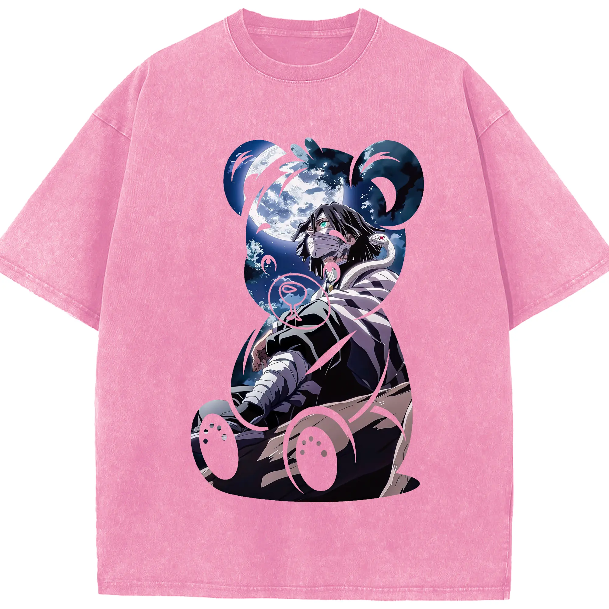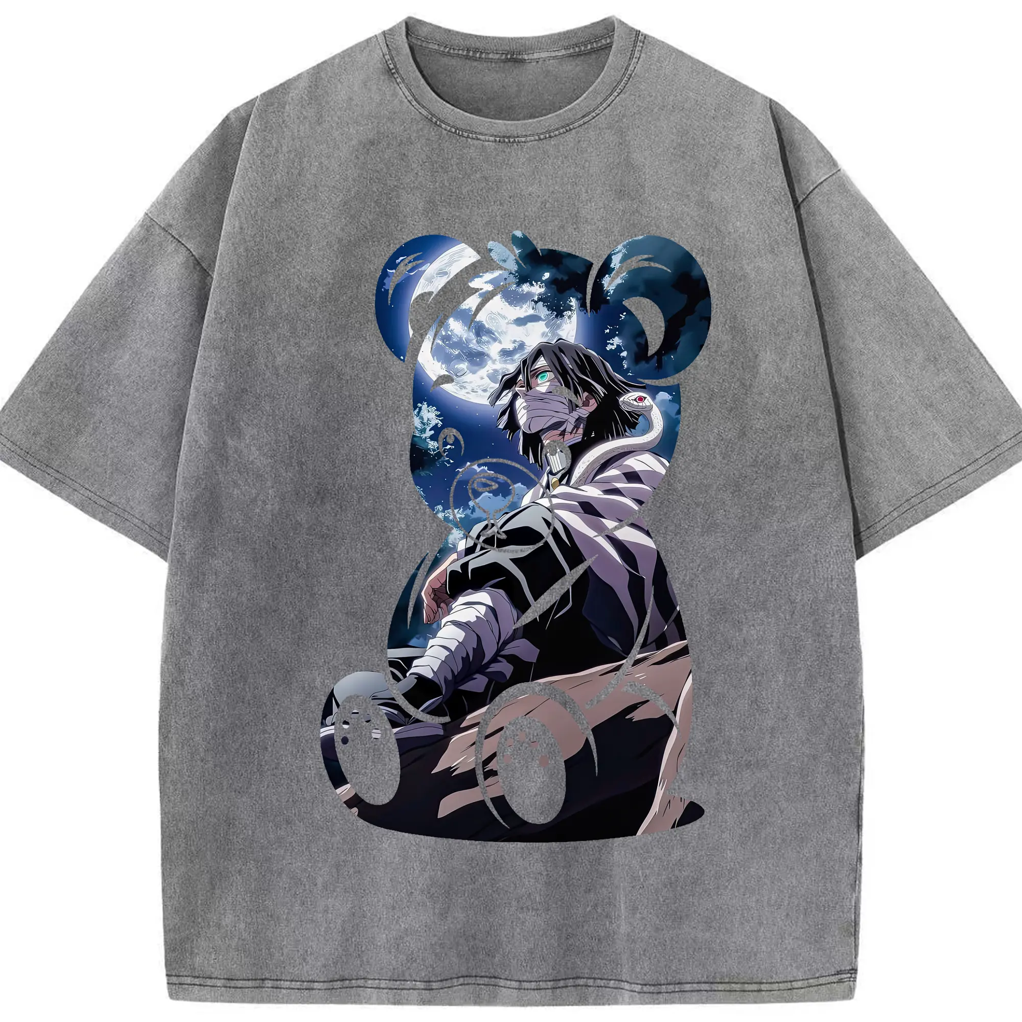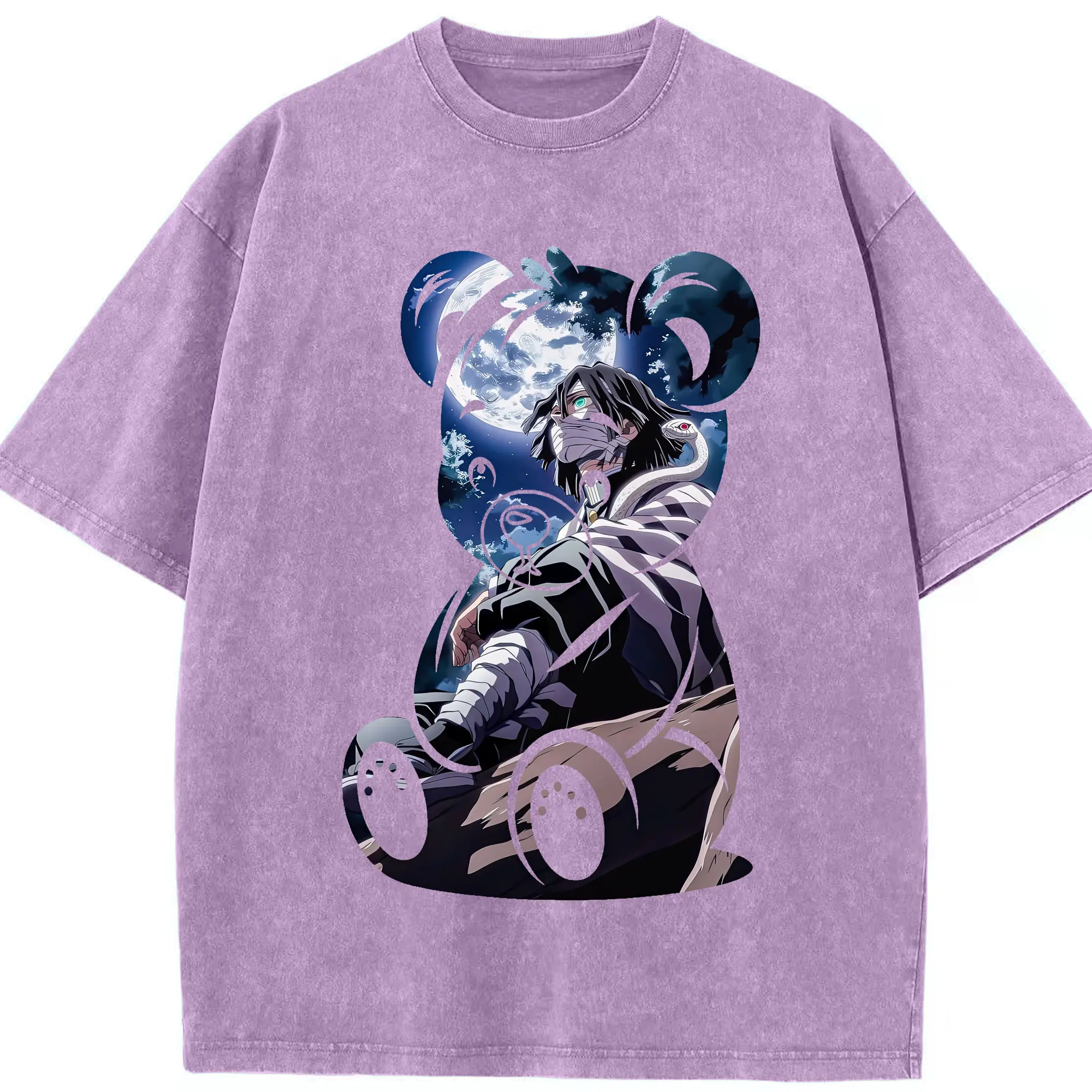 鬼滅の刃 グッズ,伊黒 小芭内 - 綿100% 半袖Tシャツ ・ フロントプリント ・ 快適 通気性 ・ 日常使い 散歩 スポーツ用