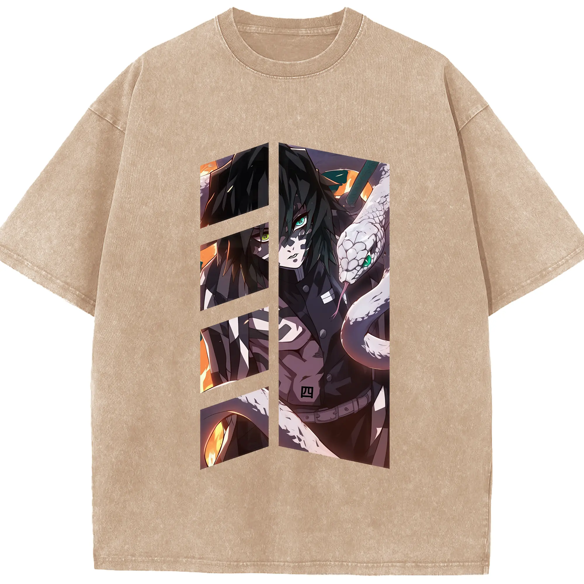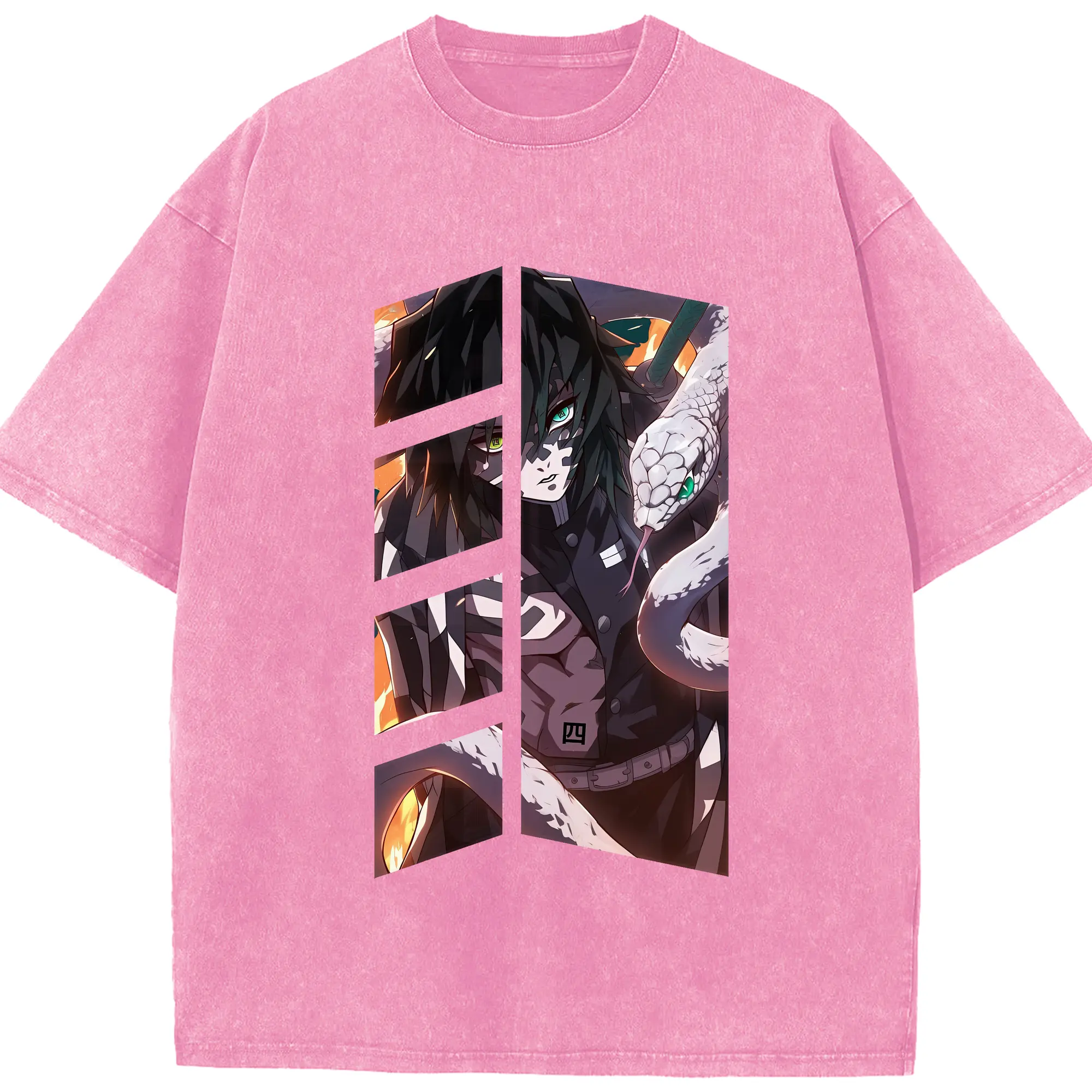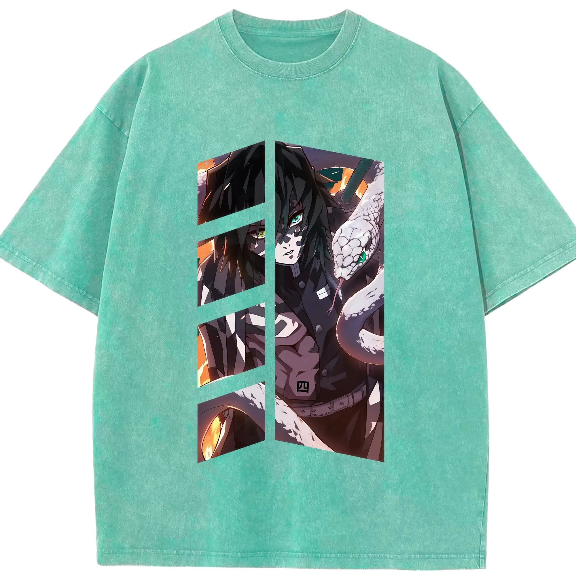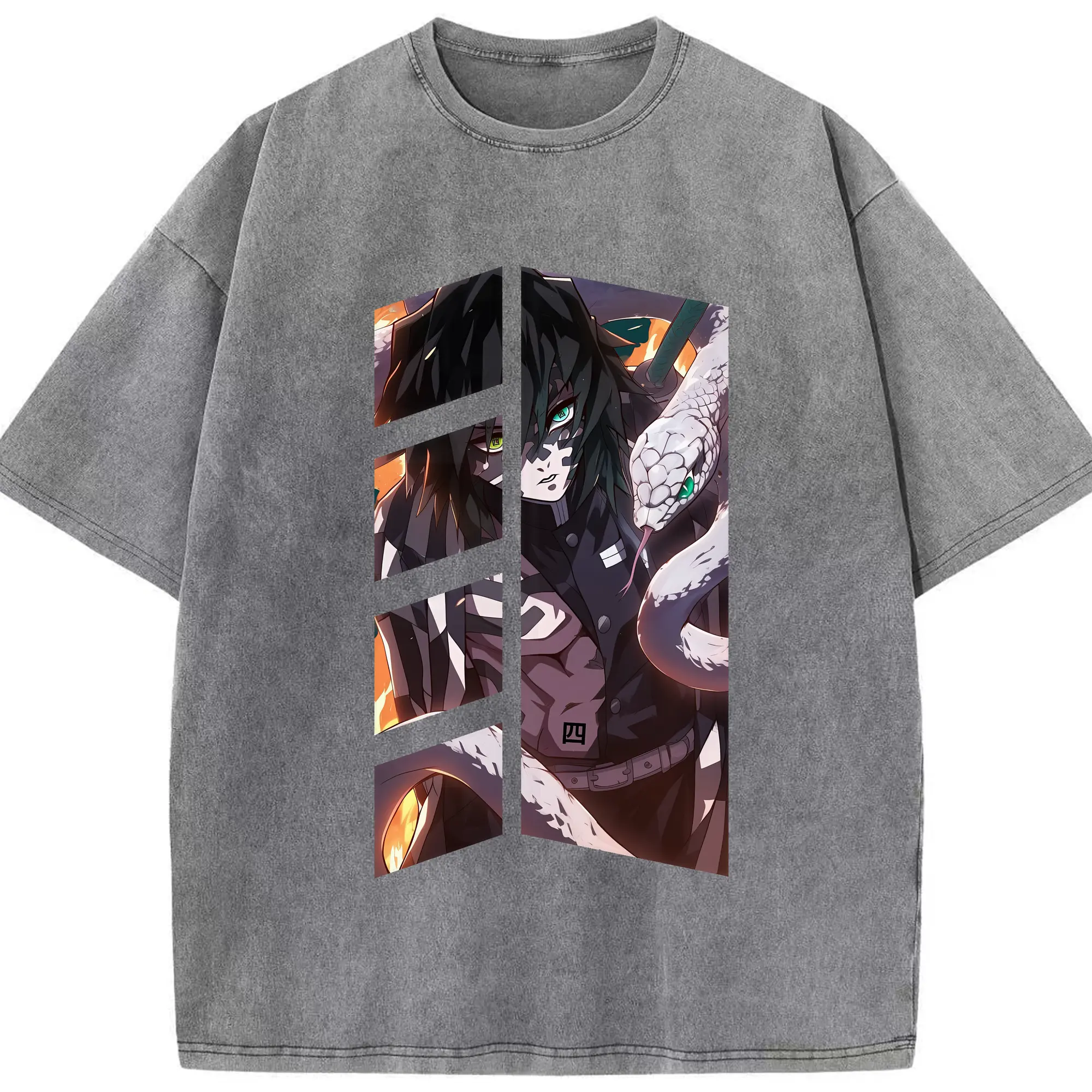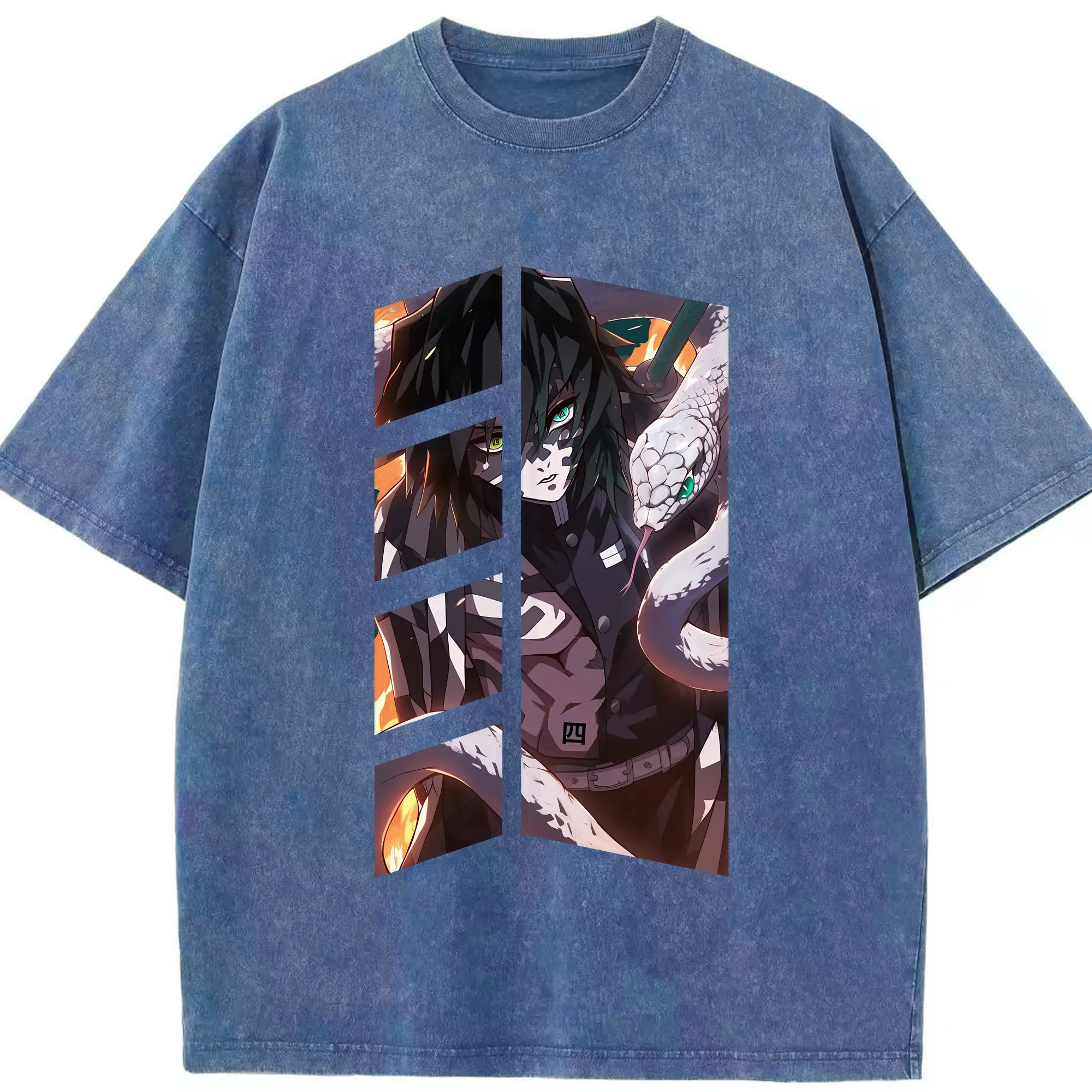 鬼滅の刃 グッズ,伊黒 小芭内 - 綿100% 半袖Tシャツ ・ フロントプリント ・ 快適 通気性 ・ 日常使い 散歩 スポーツ用