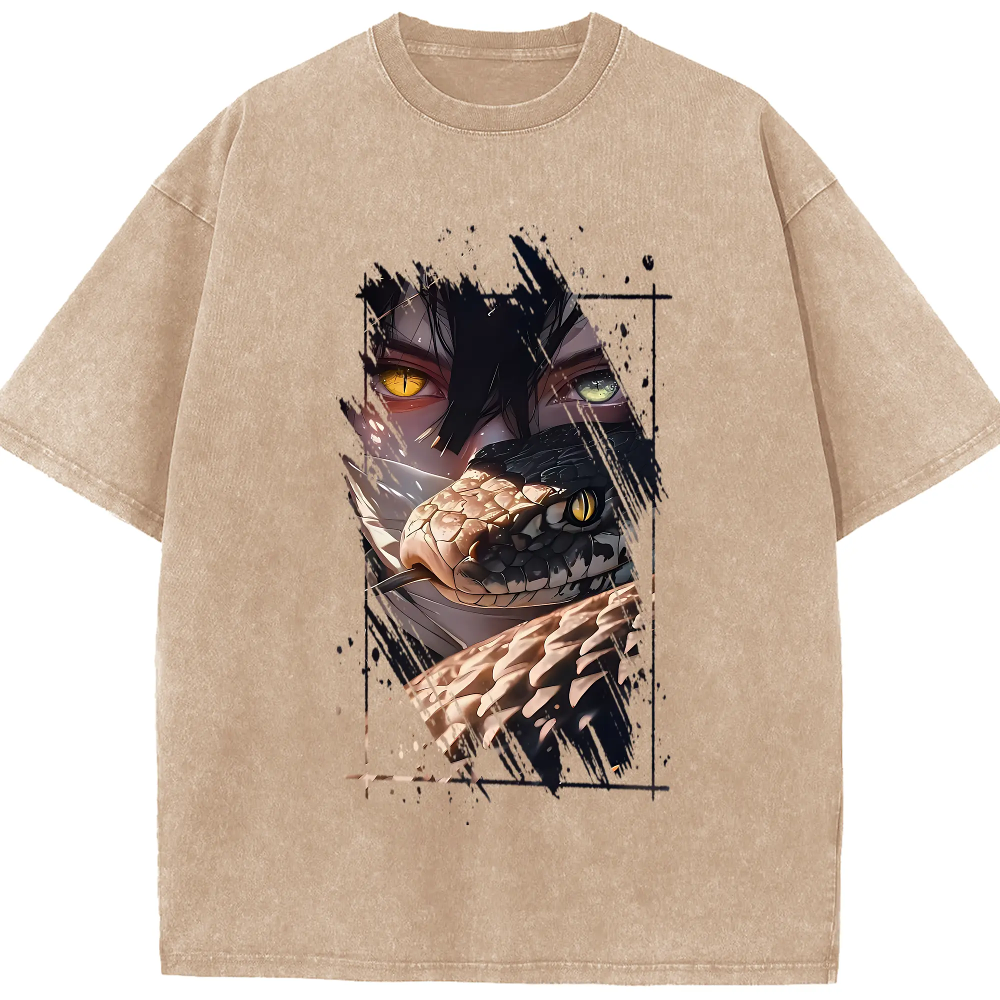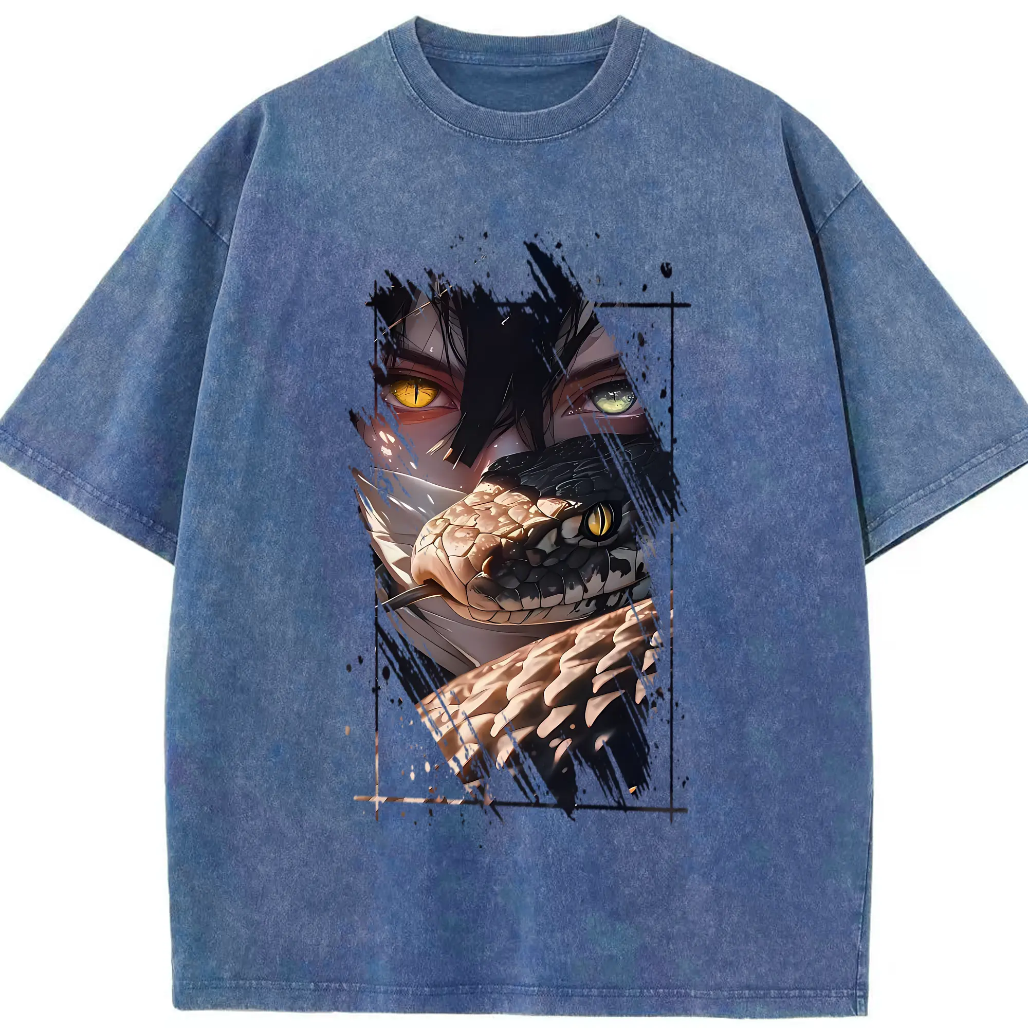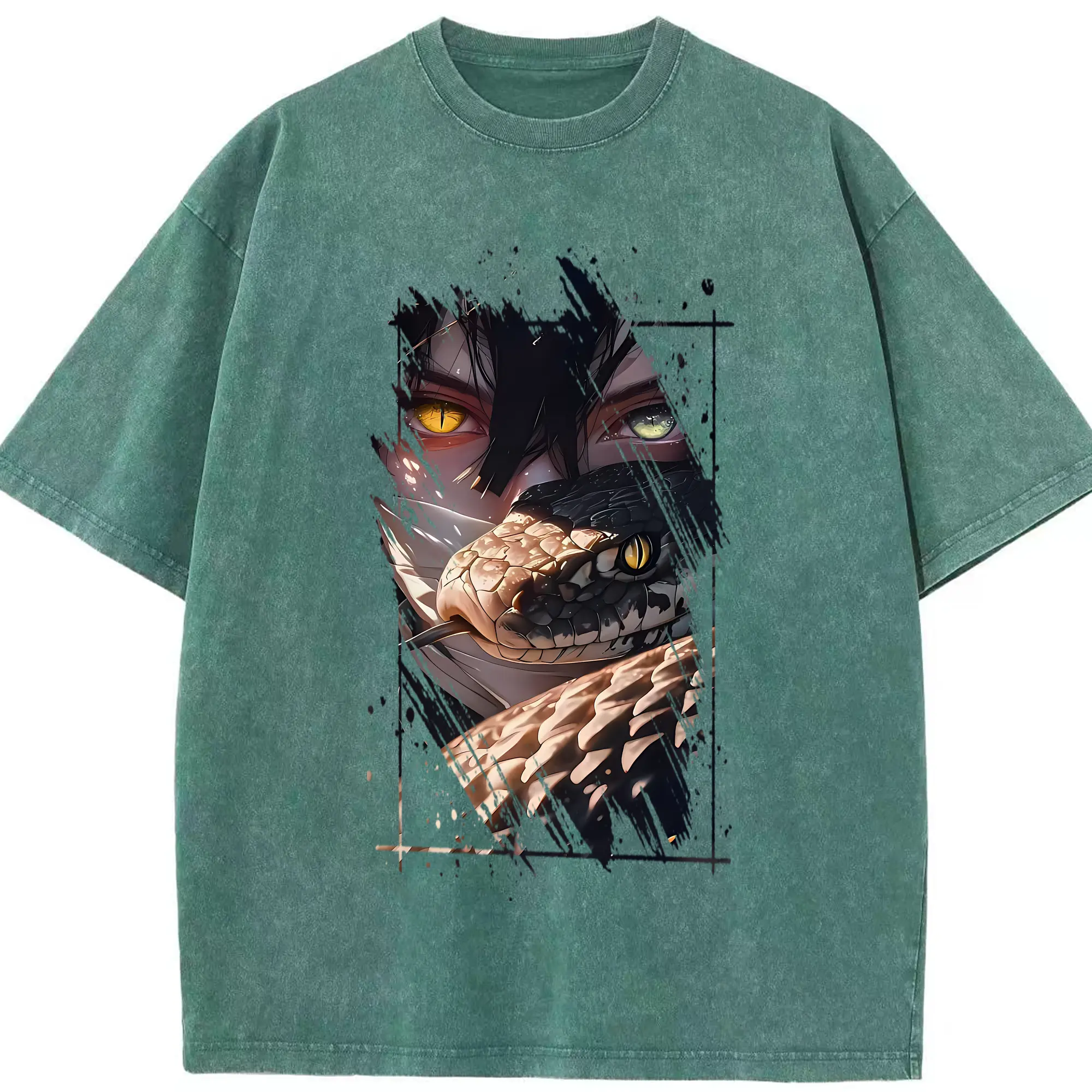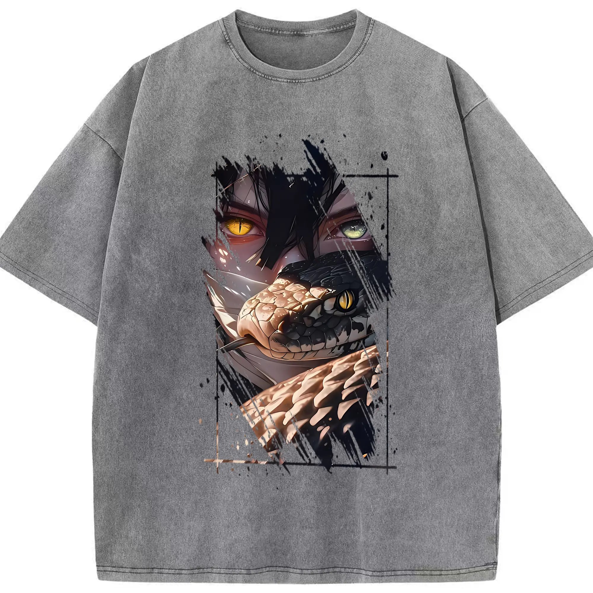 鬼滅の刃 グッズ,伊黒 小芭内 - 綿100% ヴィンテージ風 半袖Tシャツ ・ フロントプリント ・ 柔らか肌触り ・ 通気性 快適 ・ スポーツ カジュアル 外出用