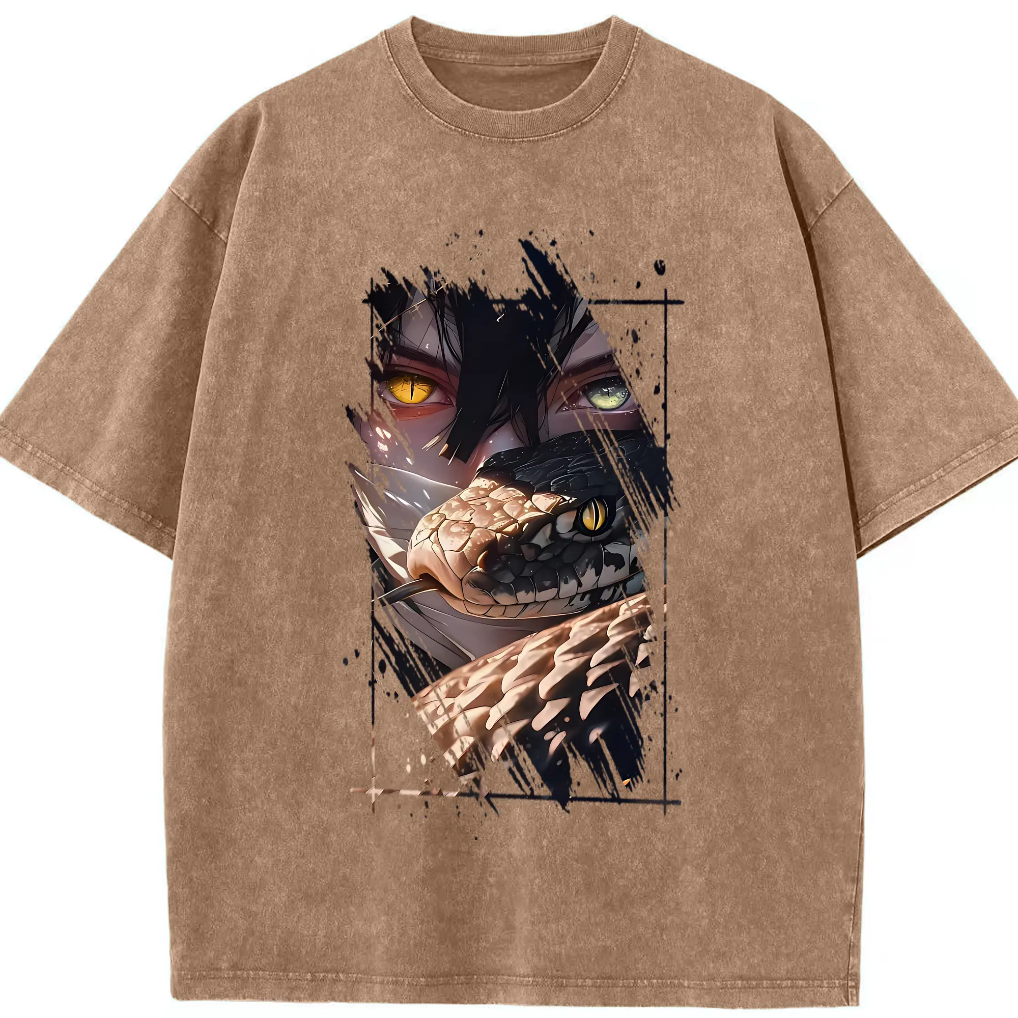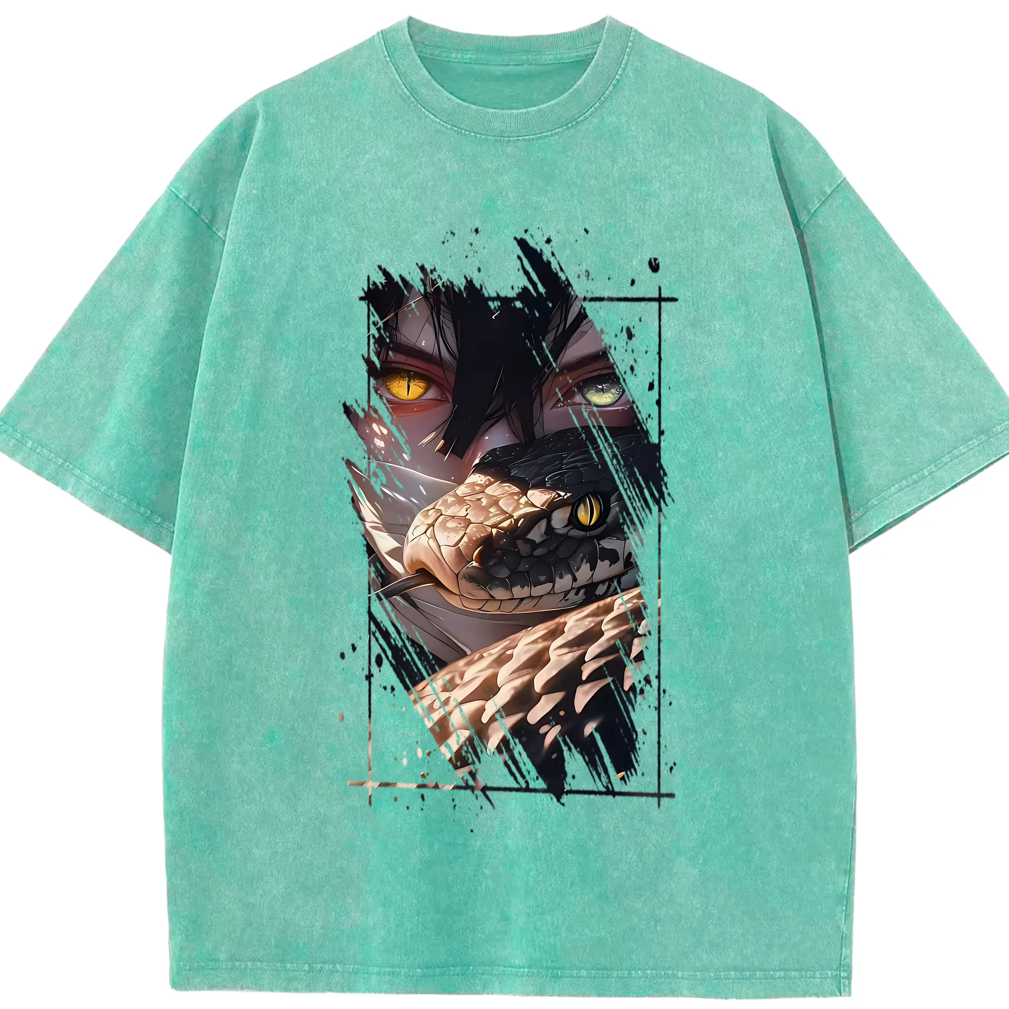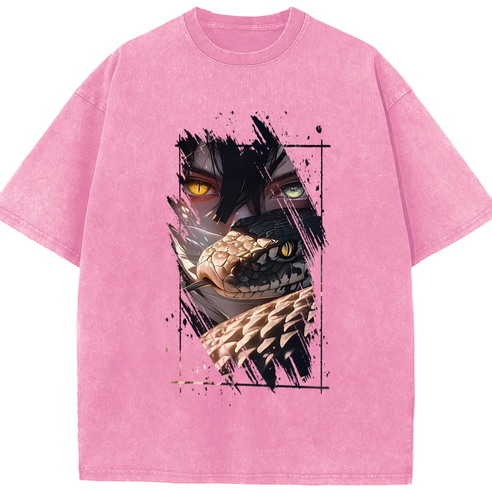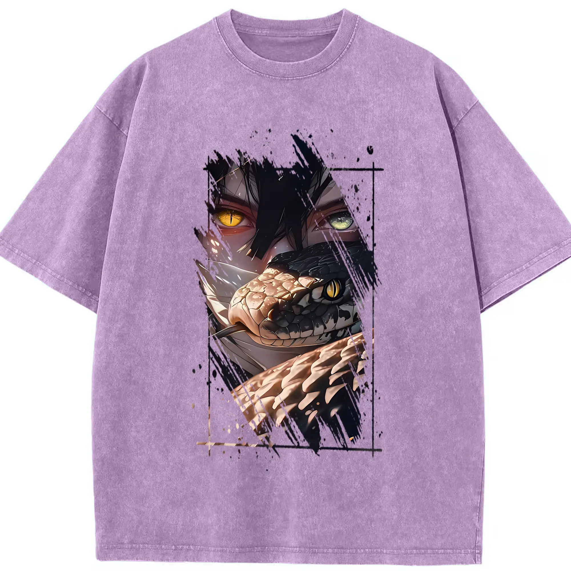 鬼滅の刃 グッズ,伊黒 小芭内 - 綿100% ヴィンテージ風 半袖Tシャツ ・ フロントプリント ・ 柔らか肌触り ・ 通気性 快適 ・ スポーツ カジュアル 外出用