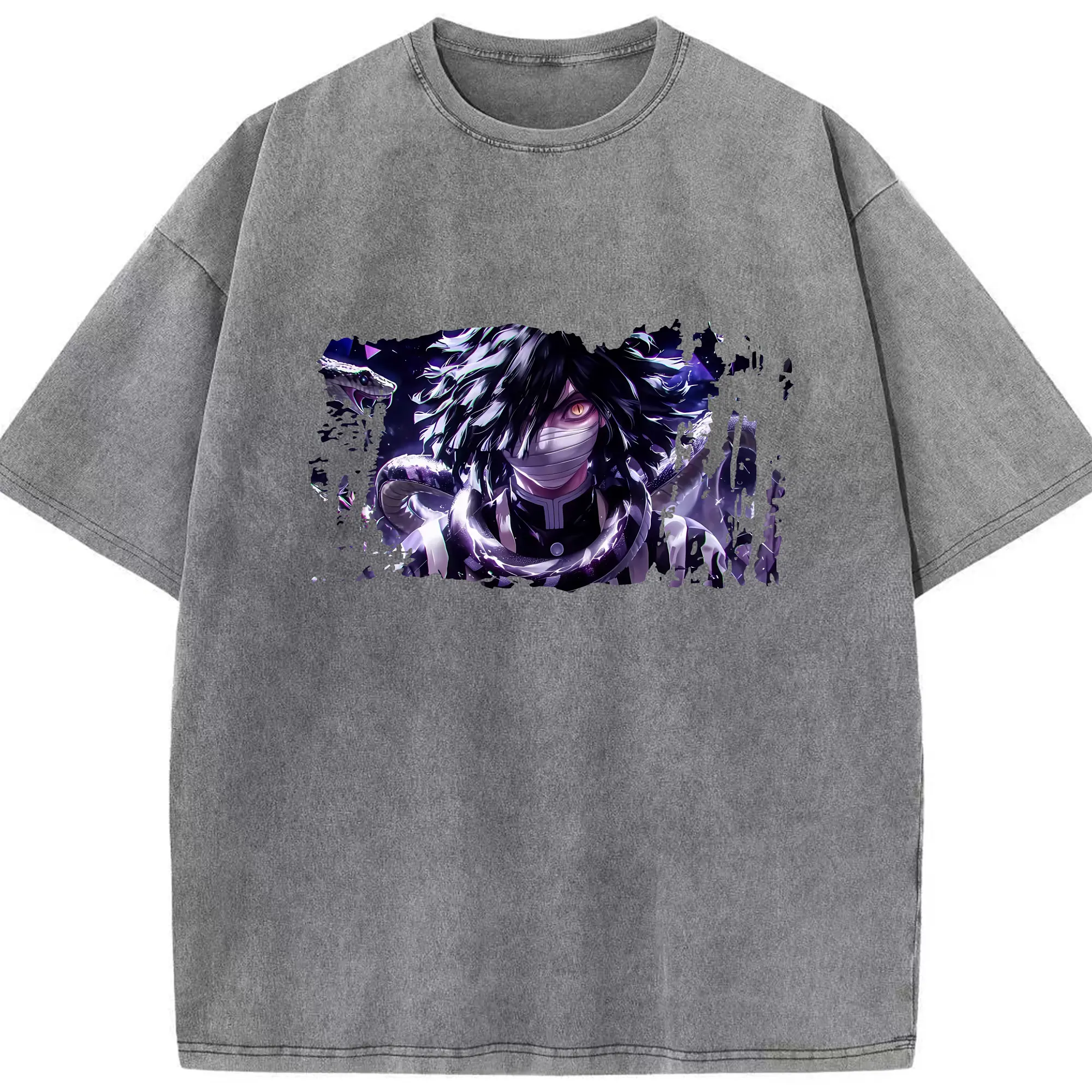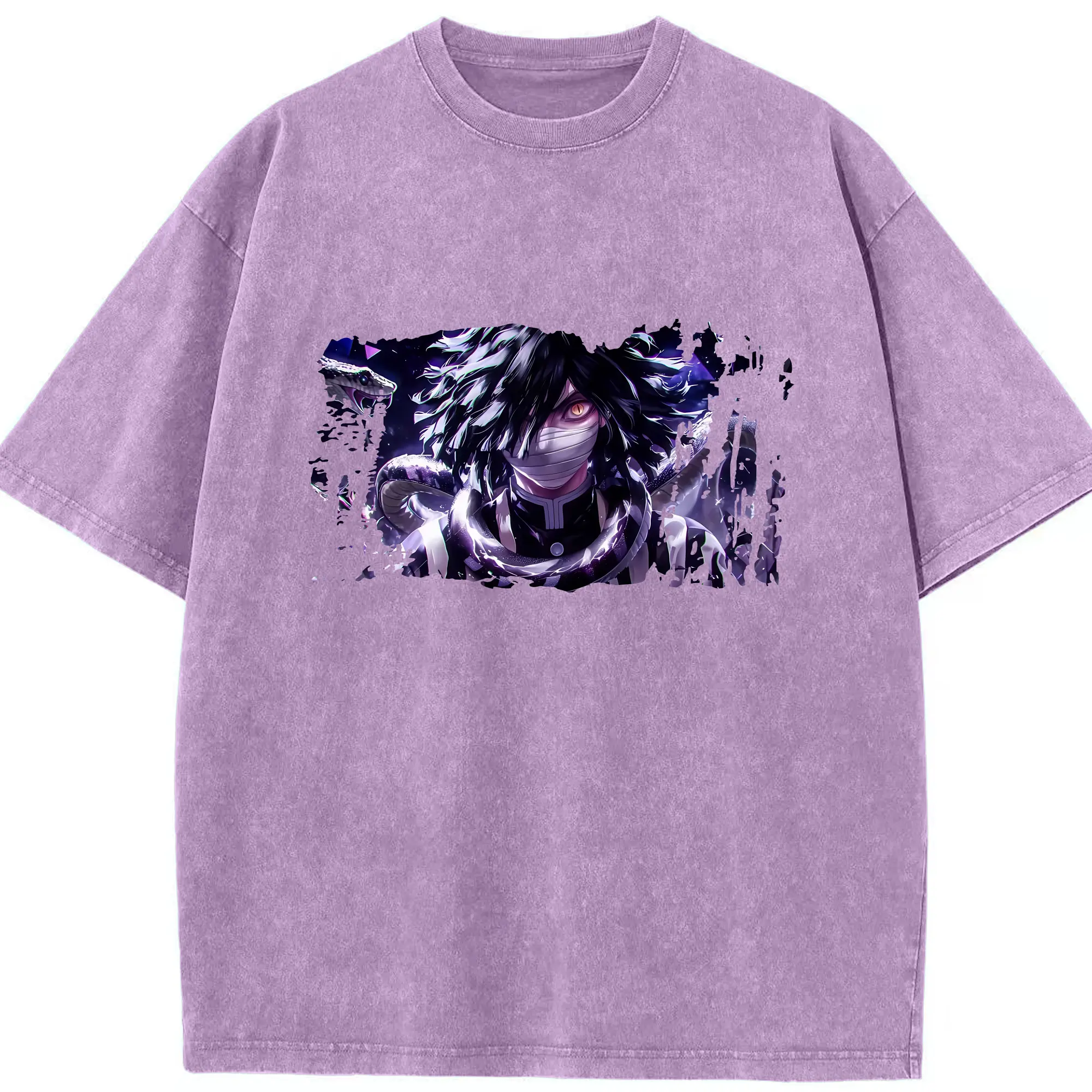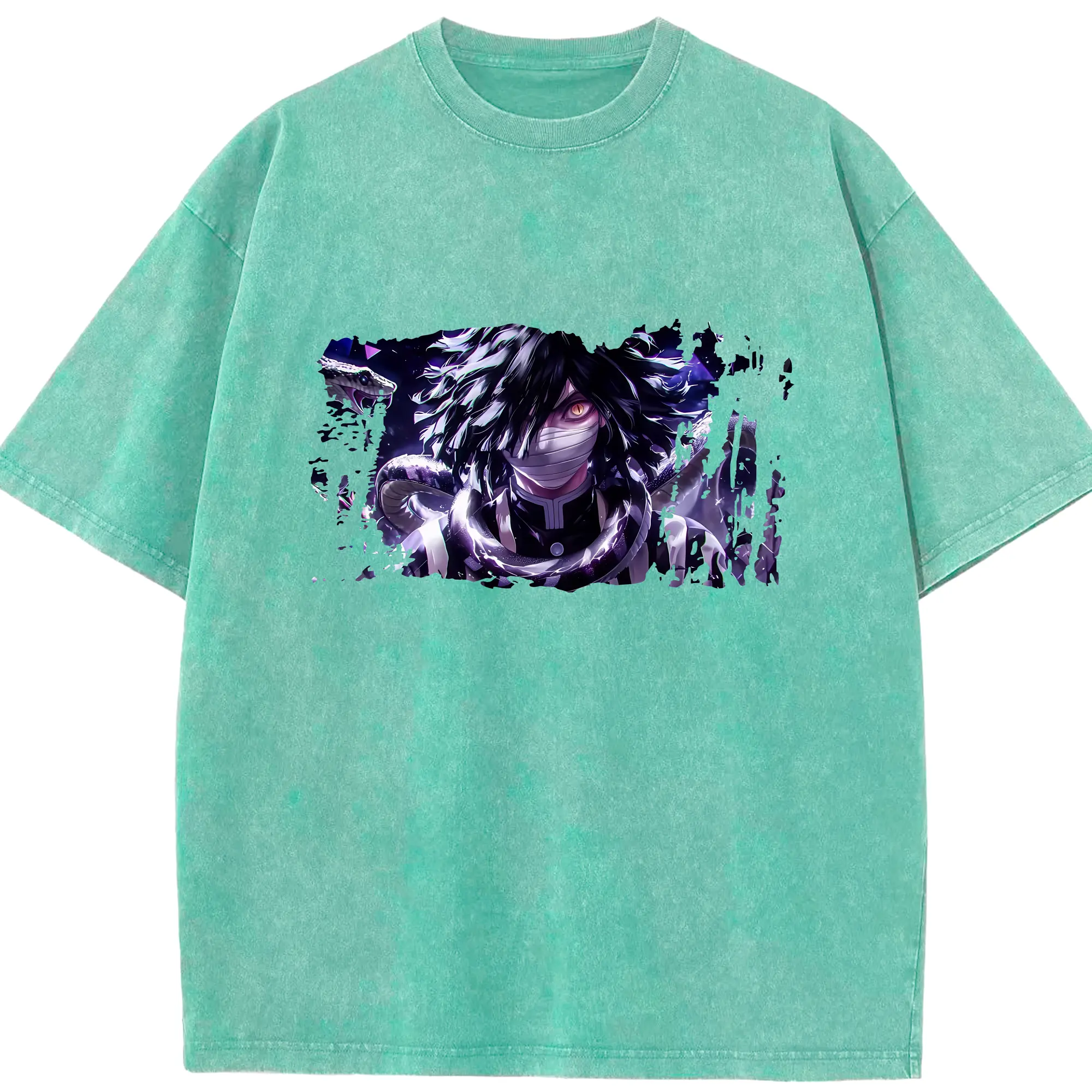 鬼滅の刃 グッズ,伊黒 小芭内 - 綿100% 半袖Tシャツ ・ フロントプリント ・ 快適 通気性 ・ 日常使い 散歩 スポーツ用