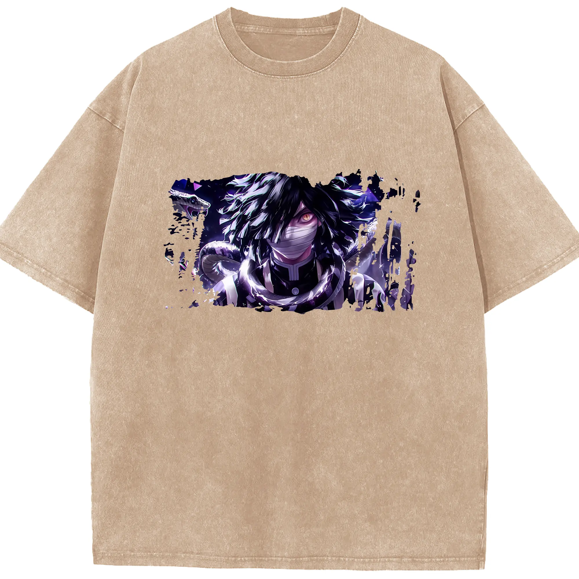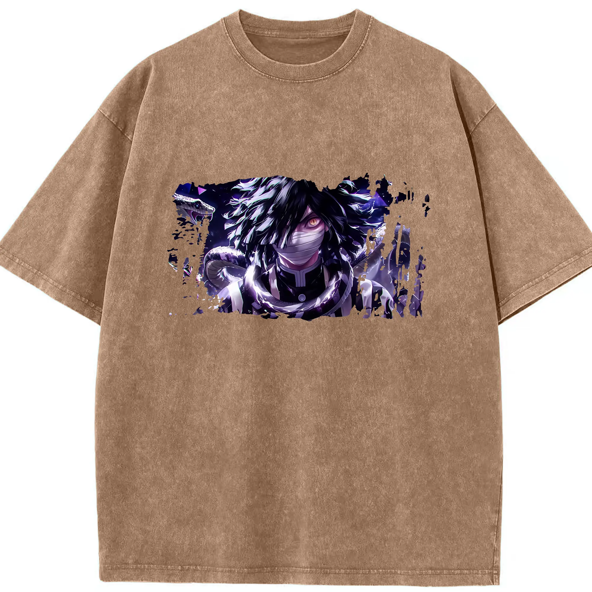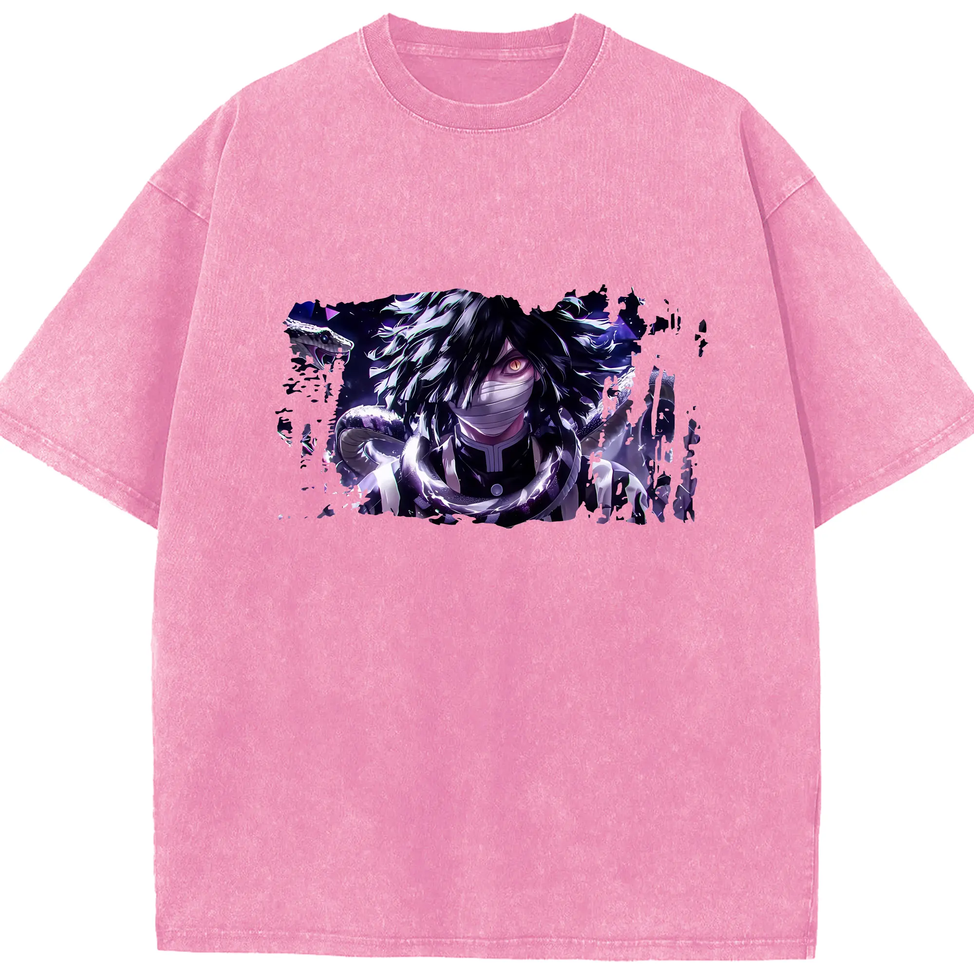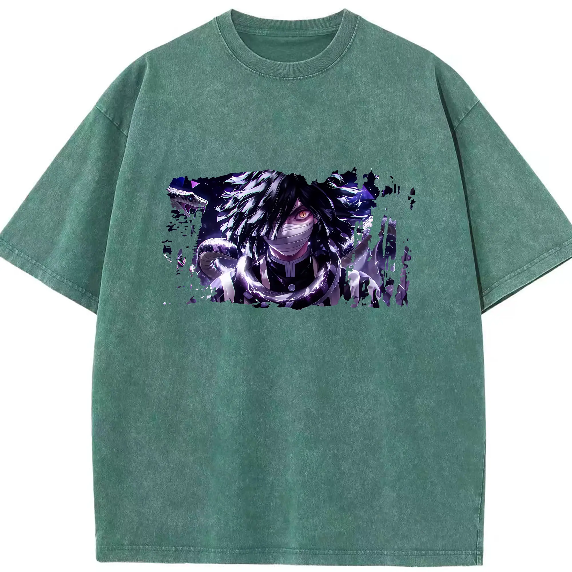 鬼滅の刃 グッズ,伊黒 小芭内 - 綿100% 半袖Tシャツ ・ フロントプリント ・ 快適 通気性 ・ 日常使い 散歩 スポーツ用