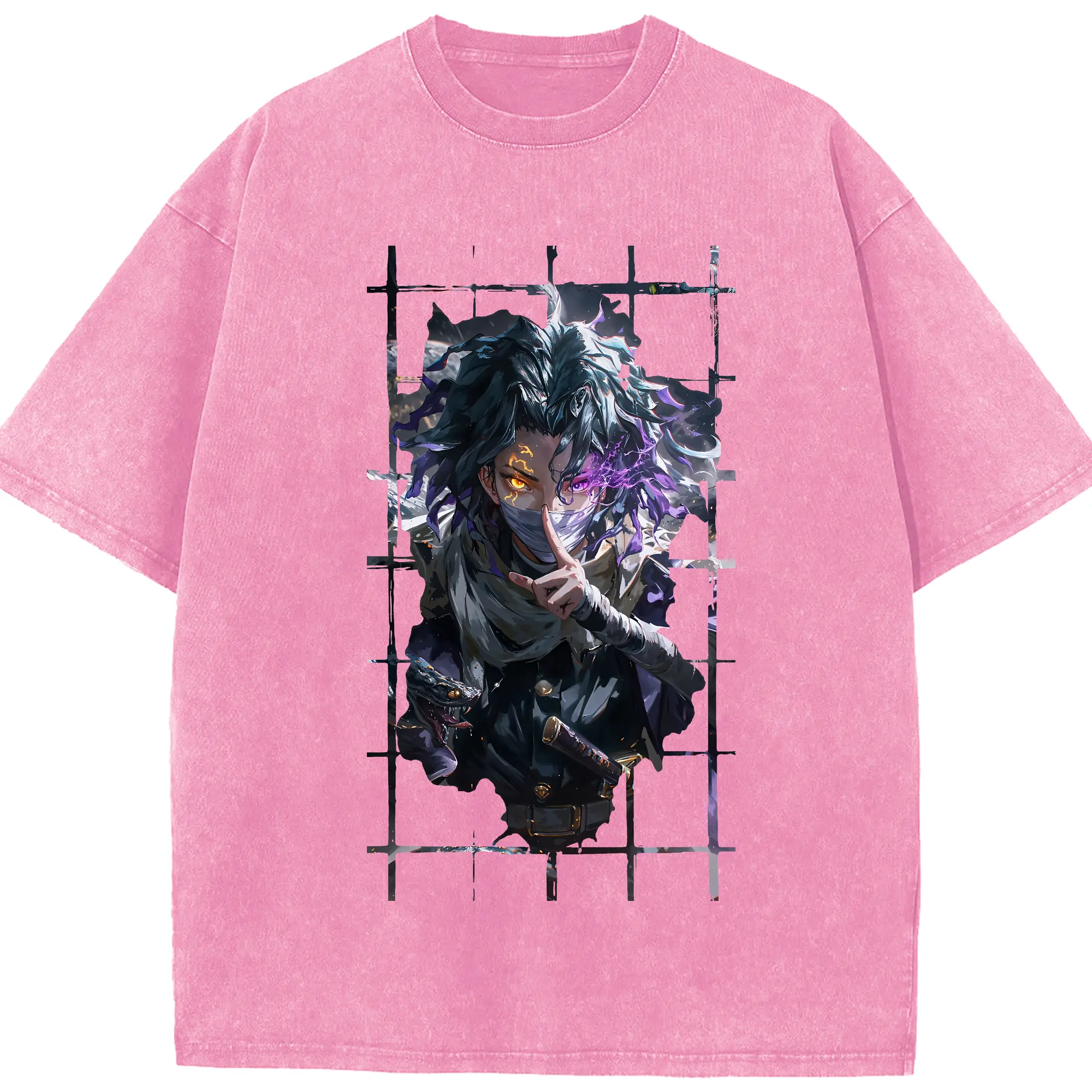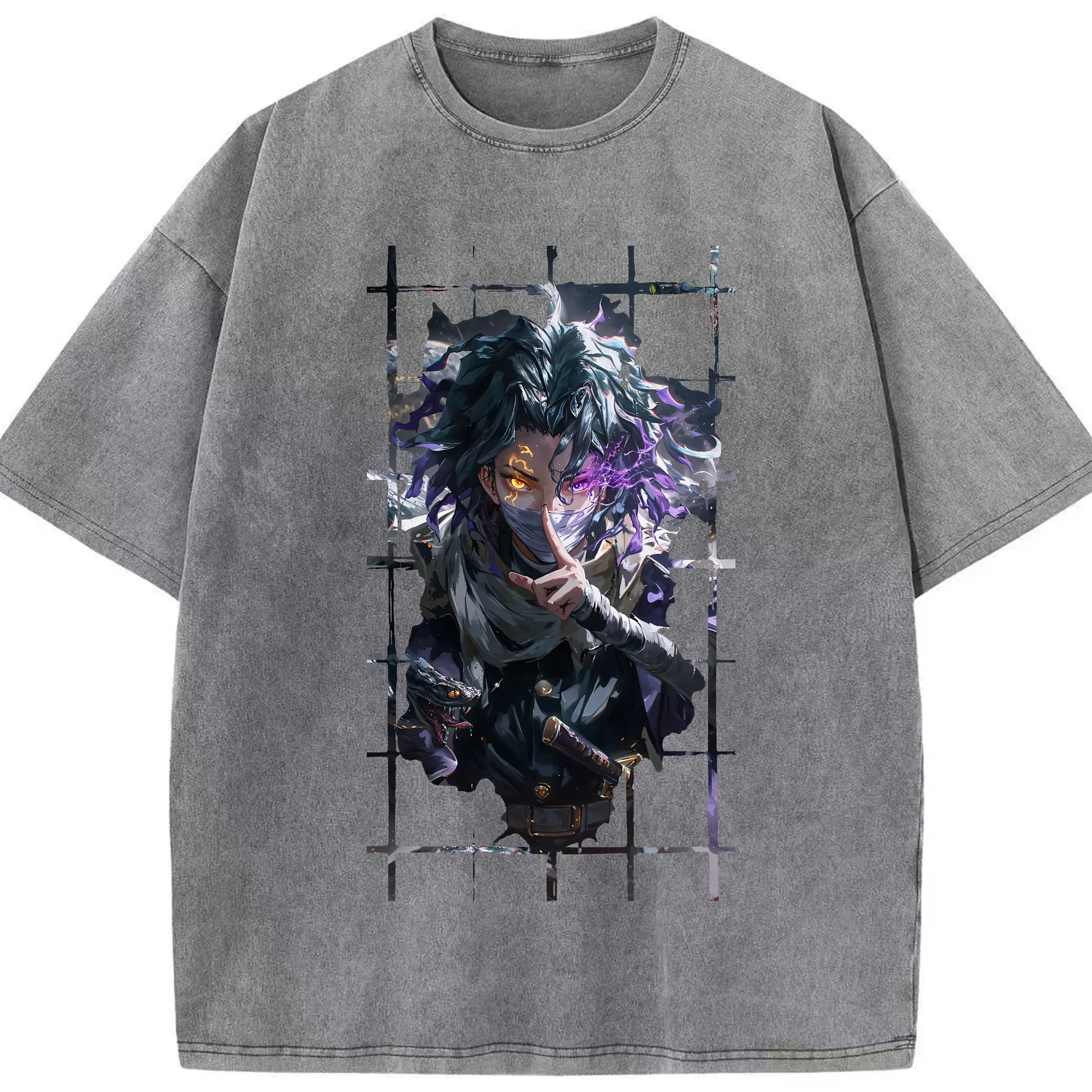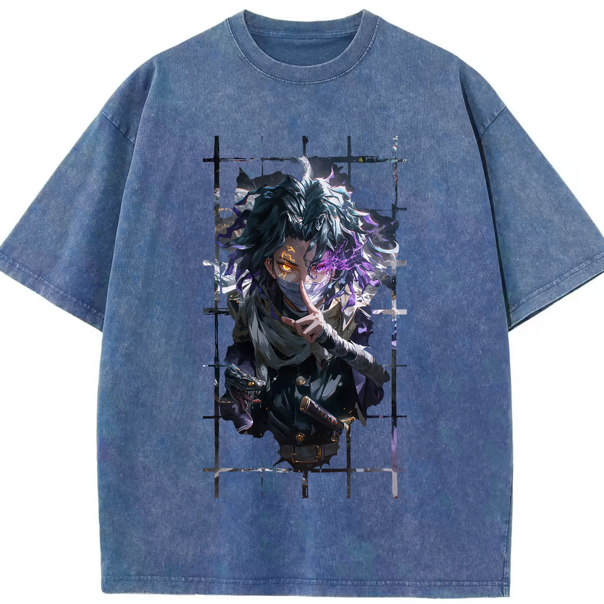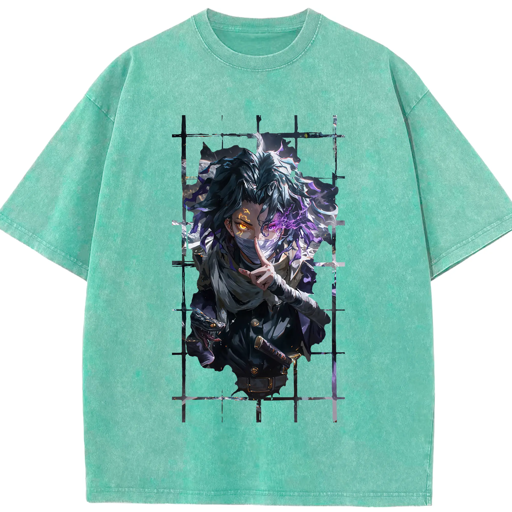 鬼滅の刃 グッズ,伊黒 小芭内 - 綿100% 半袖Tシャツ ・ フロントプリント ・ 快適 通気性 ・ 日常使い 散歩 スポーツ用