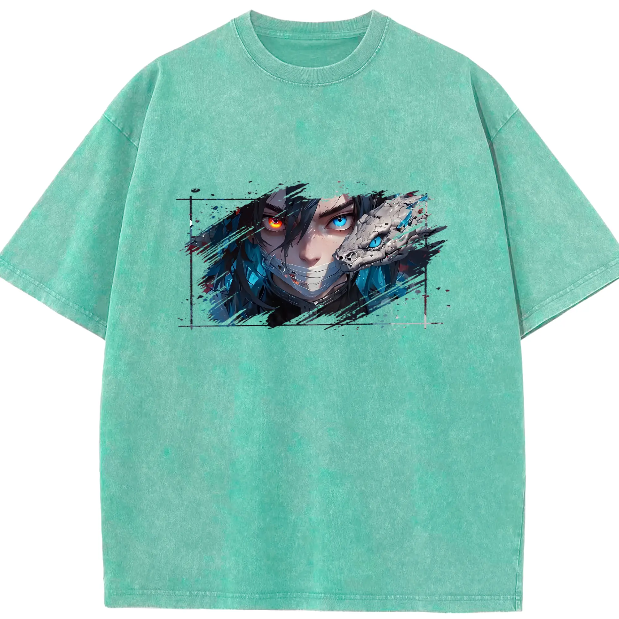 鬼滅の刃 グッズ,伊黒 小芭内 - 綿100% 半袖Tシャツ ・ フロントプリント ・ 快適 通気性 ・ 日常使い 散歩 スポーツ用
