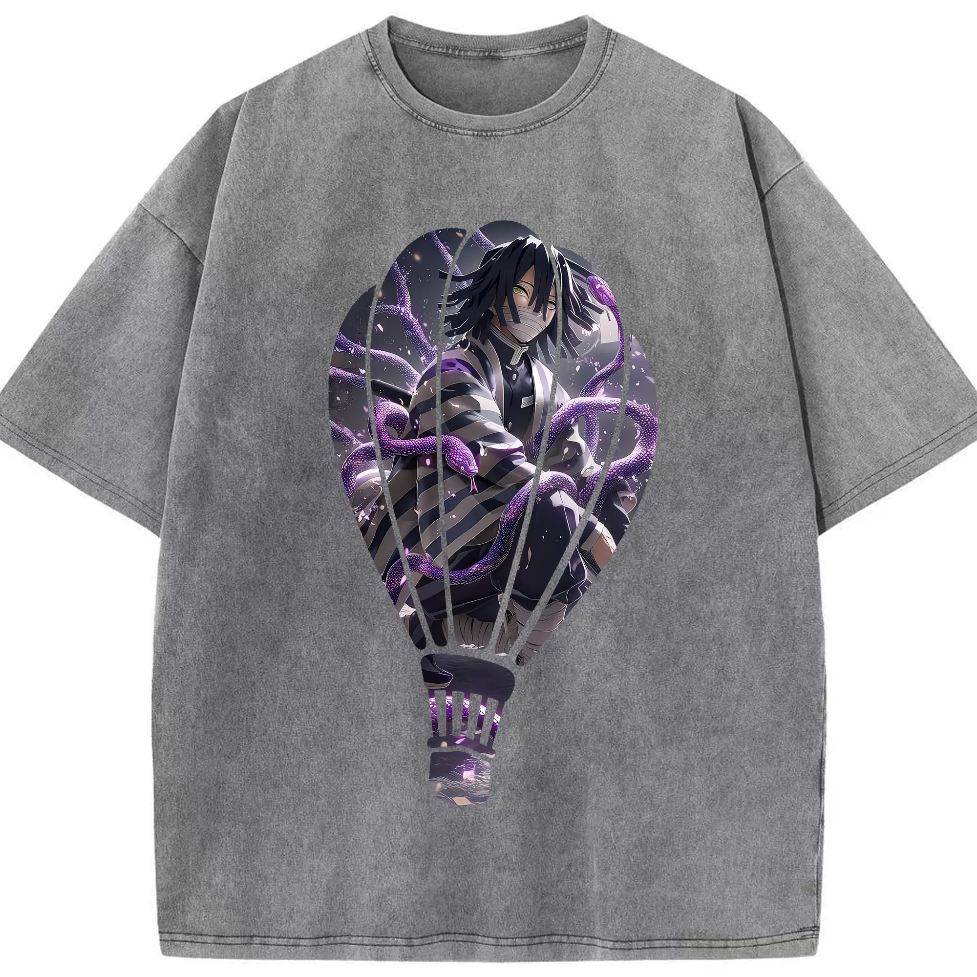 鬼滅の刃 グッズ,伊黒 小芭内 - 綿100% 半袖Tシャツ ・ フロントプリント ・ 快適 通気性 ・ 日常使い 散歩 スポーツ用