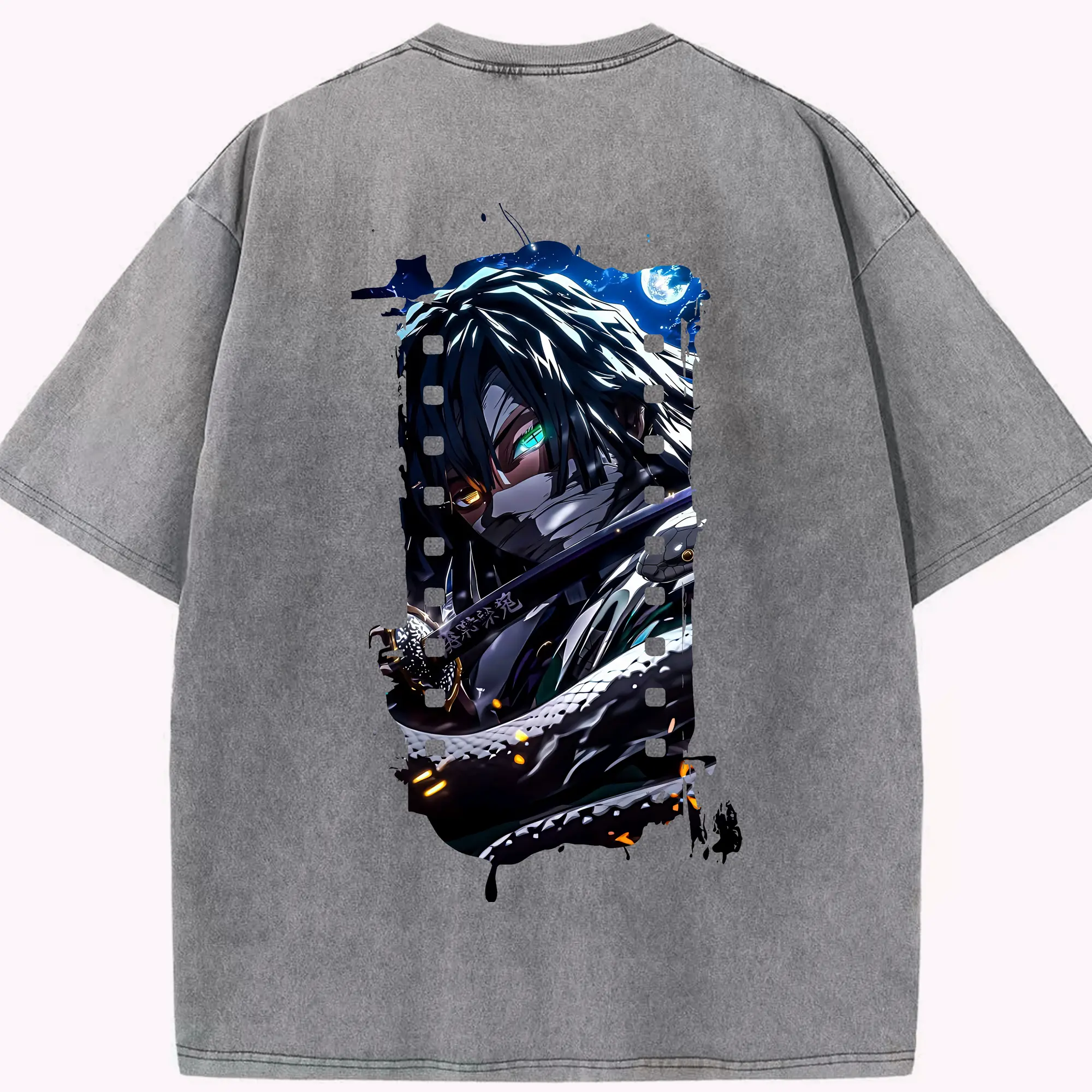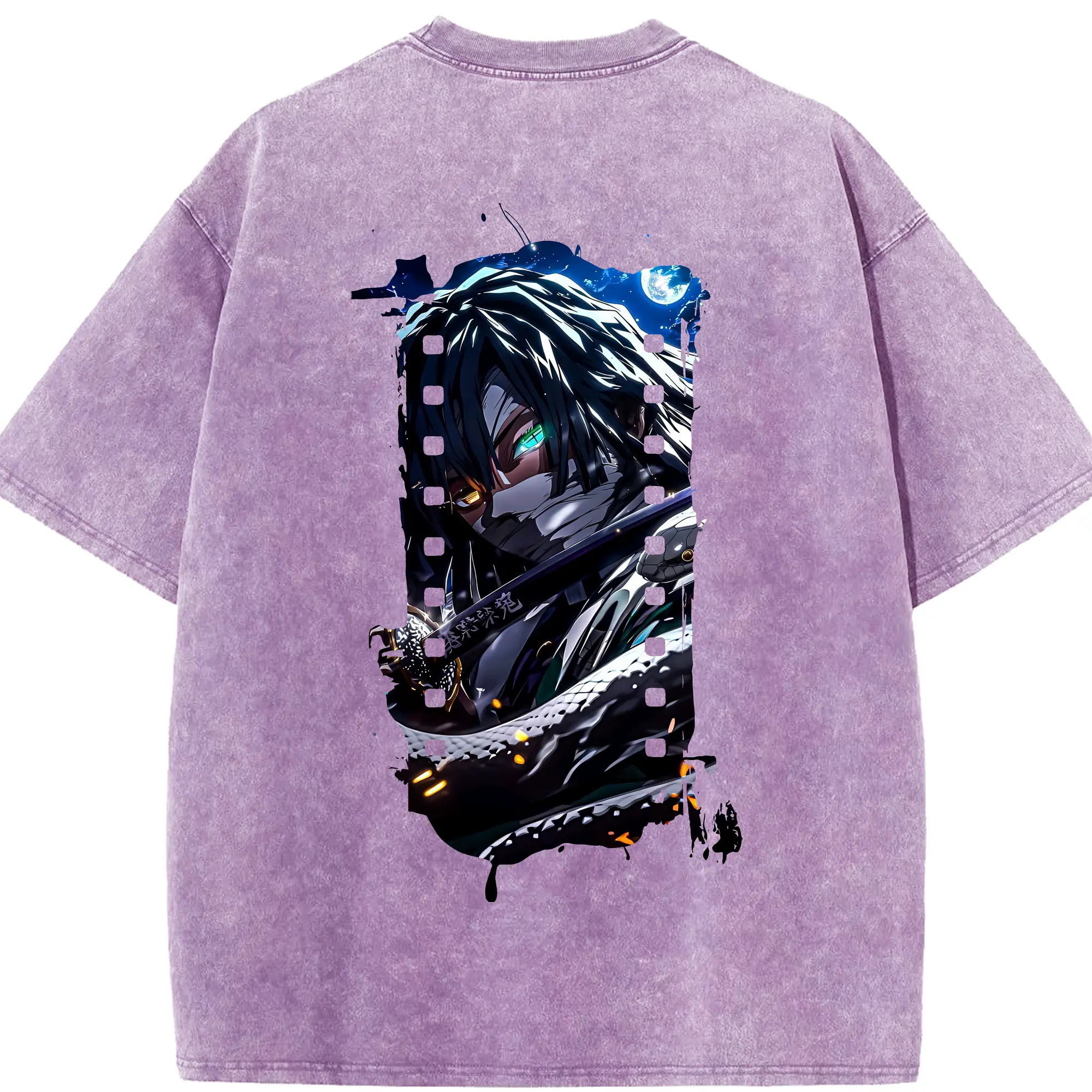鬼滅の刃 グッズ,伊黒 小芭内 - 綿100% 半袖Tシャツ ・ バックプリント ・ 快適 通気性 ・ 日常使い 散歩 スポーツ用