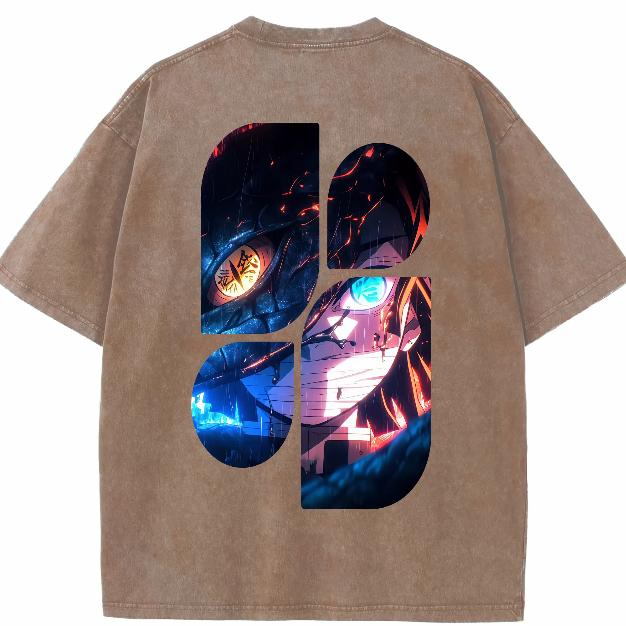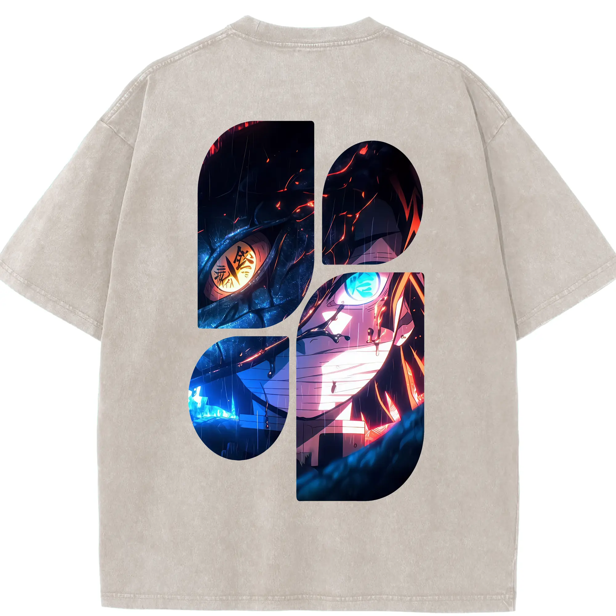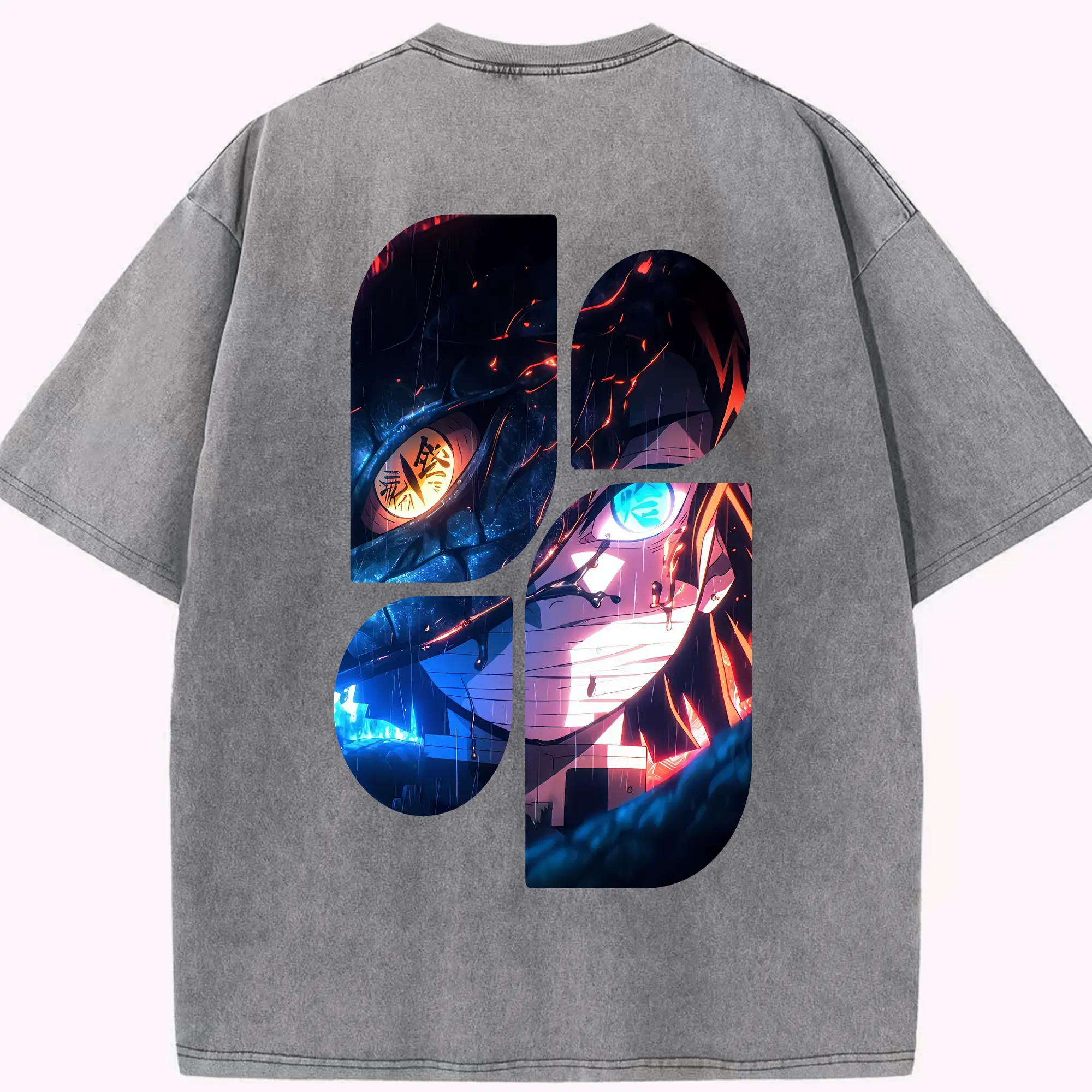 呪術廻戦 グッズ,両面宿儺 - 綿100% ヴィンテージ風 半袖Tシャツ ・ 背面プリント ・ 柔らか肌触り ・ 通気性 快適 ・ スポーツ カジュアル 外出用