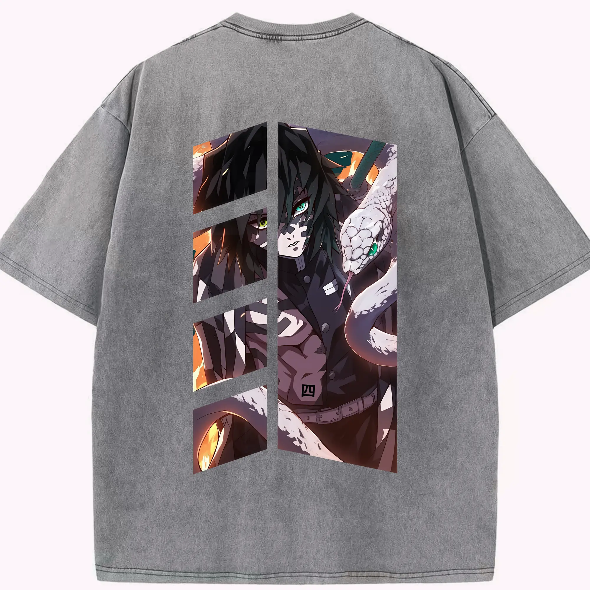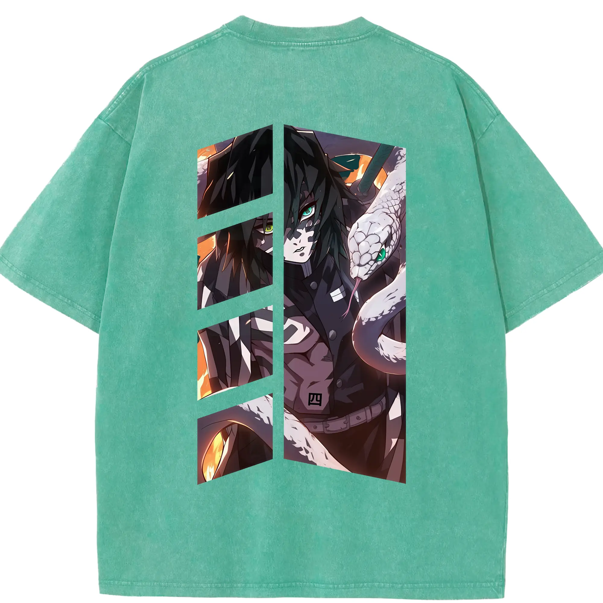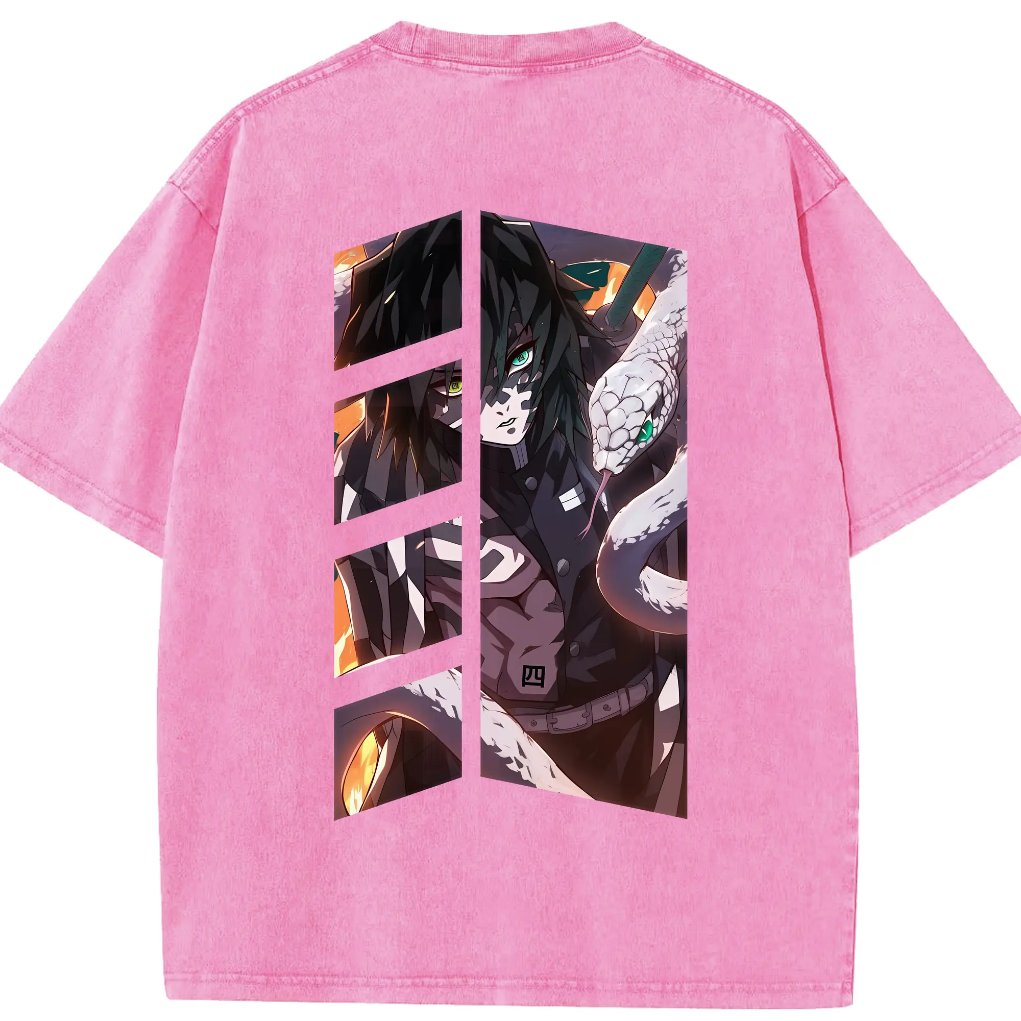 鬼滅の刃 グッズ,伊黒 小芭内 - 綿100% 半袖Tシャツ ・ バックプリント ・ 快適 通気性 ・ 日常使い 散歩 スポーツ用