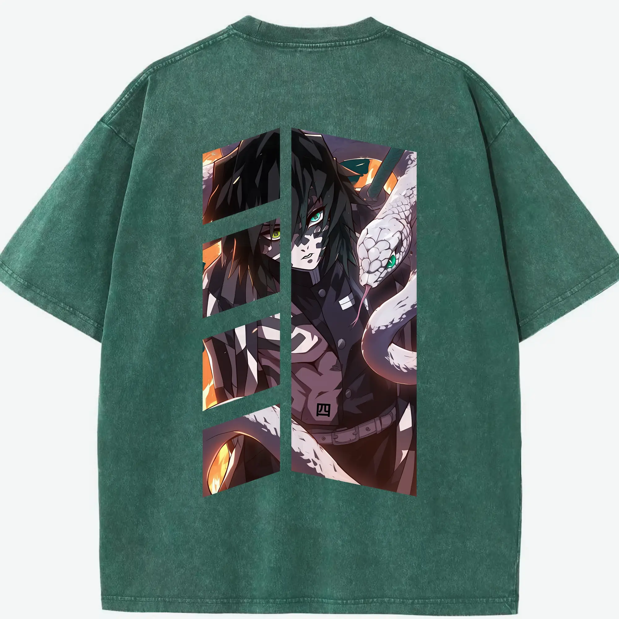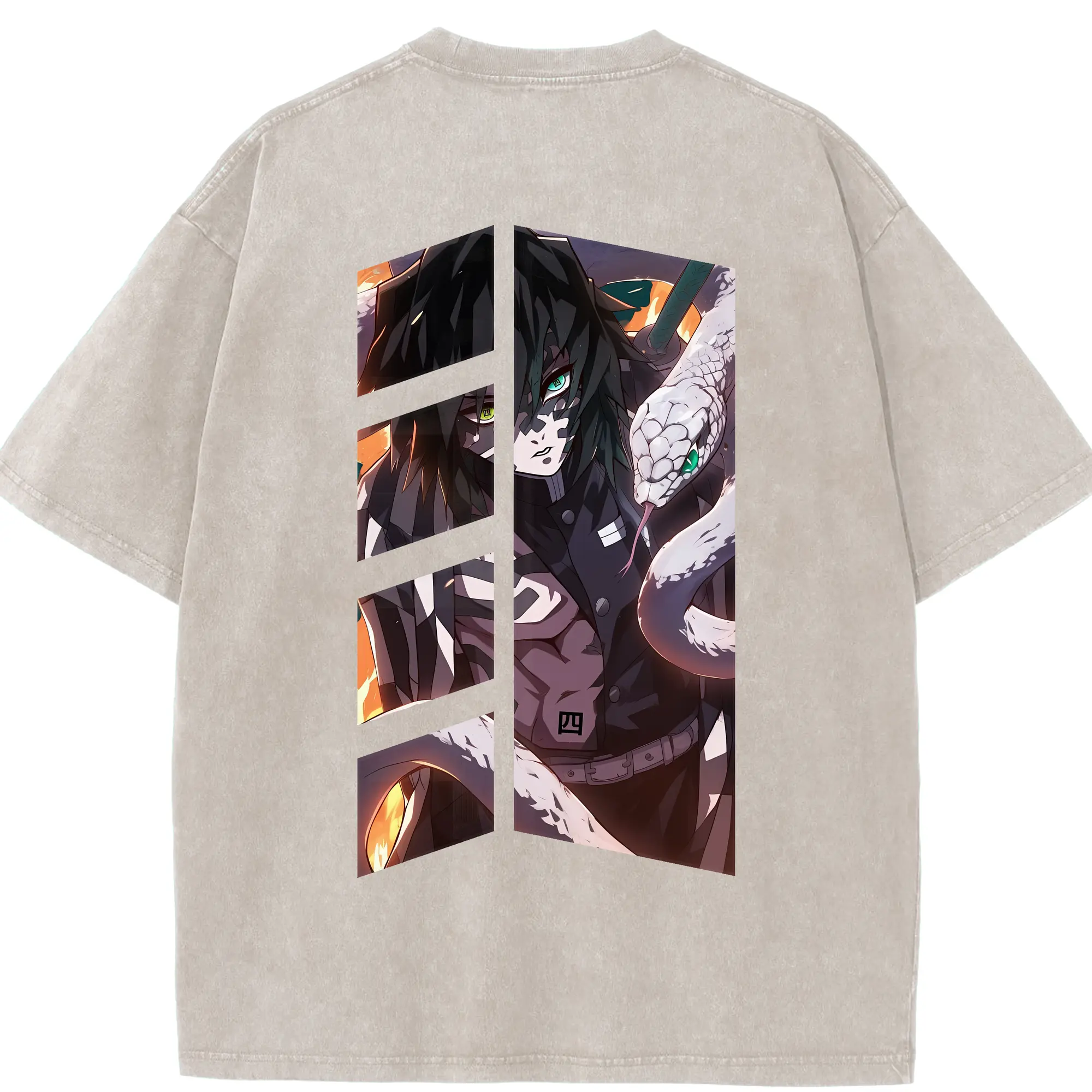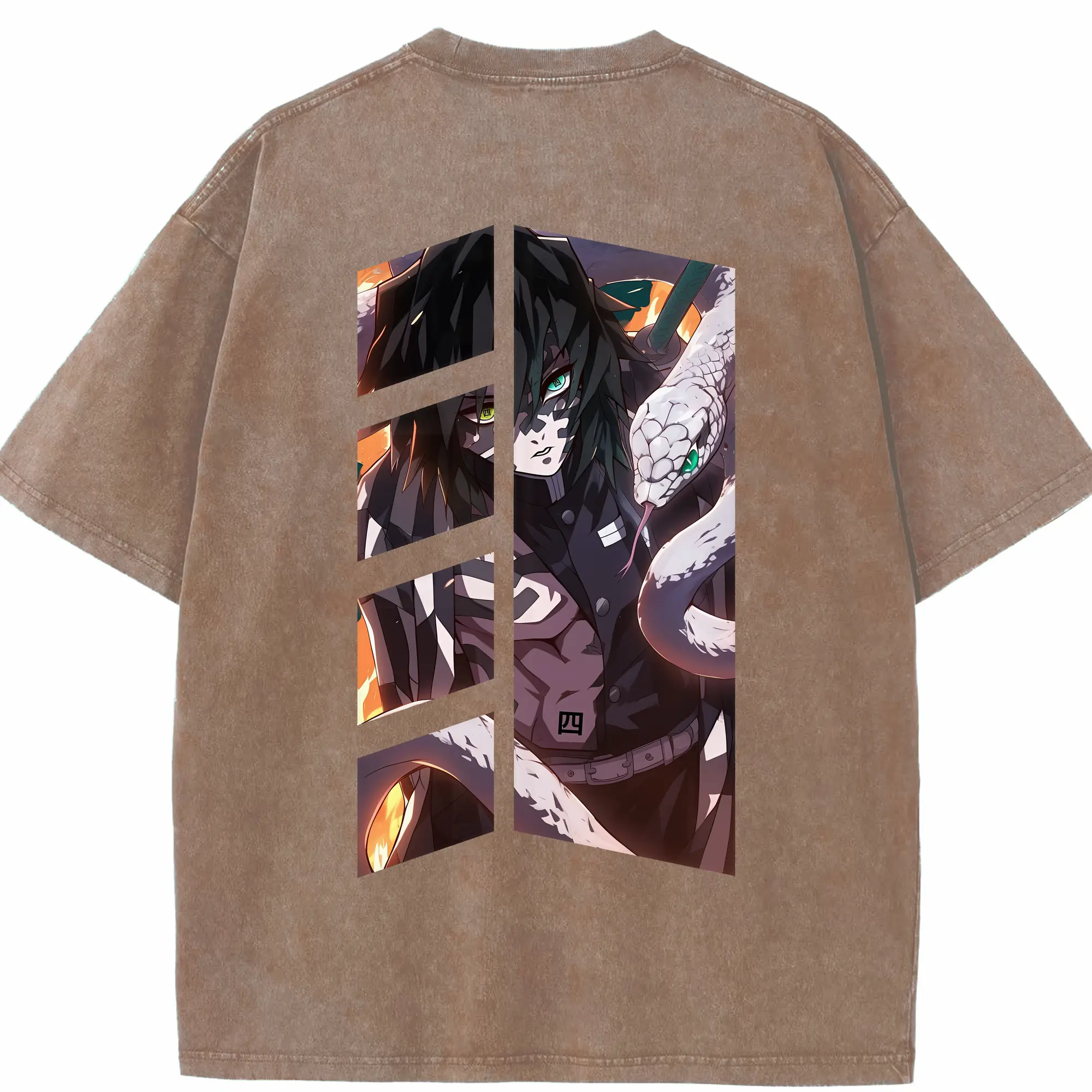 鬼滅の刃 グッズ,伊黒 小芭内 - 綿100% 半袖Tシャツ ・ バックプリント ・ 快適 通気性 ・ 日常使い 散歩 スポーツ用