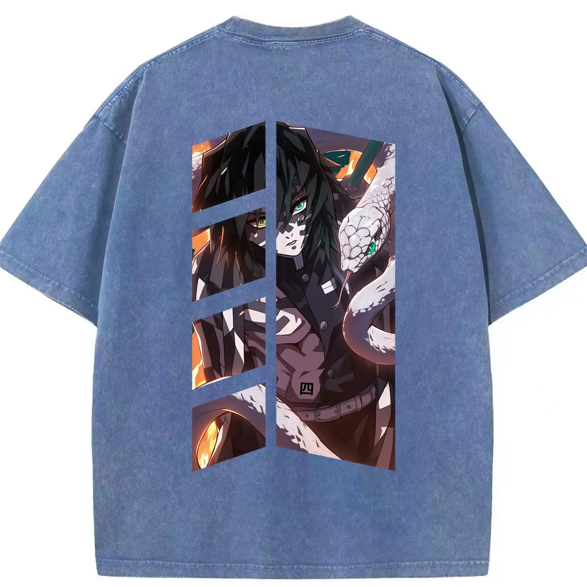 鬼滅の刃 グッズ,宇髄 天元 - 綿100% ヴィンテージ風 半袖Tシャツ ・ 背面プリント ・ 柔らか肌触り ・ 通気性 快適 ・ スポーツ カジュアル 外出用
