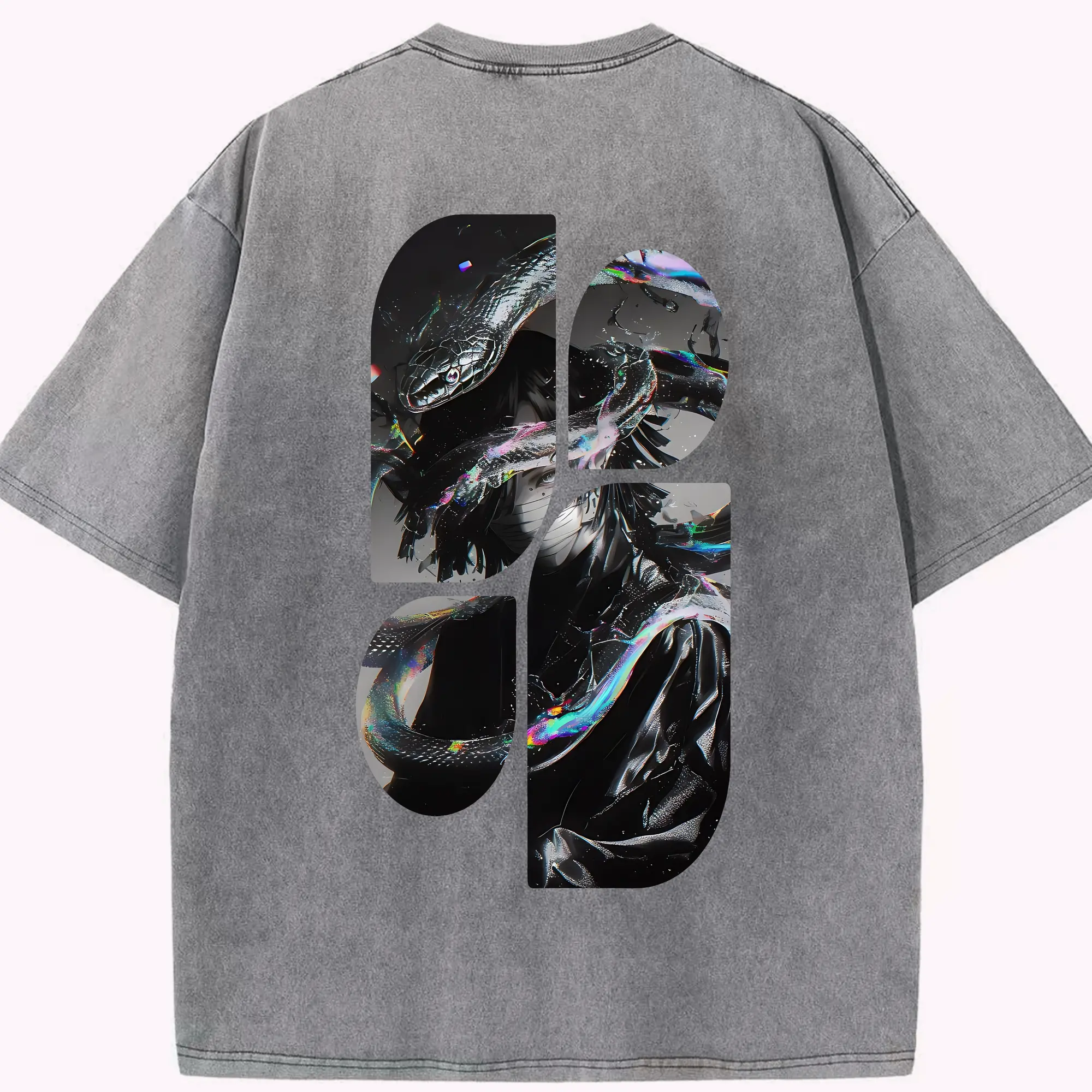 チェンソーマン グッズ,マキマ - 綿100% ヴィンテージ風 半袖Tシャツ ・ 背面プリント ・ 柔らか肌触り ・ 通気性 快適 ・ スポーツ カジュアル 外出用