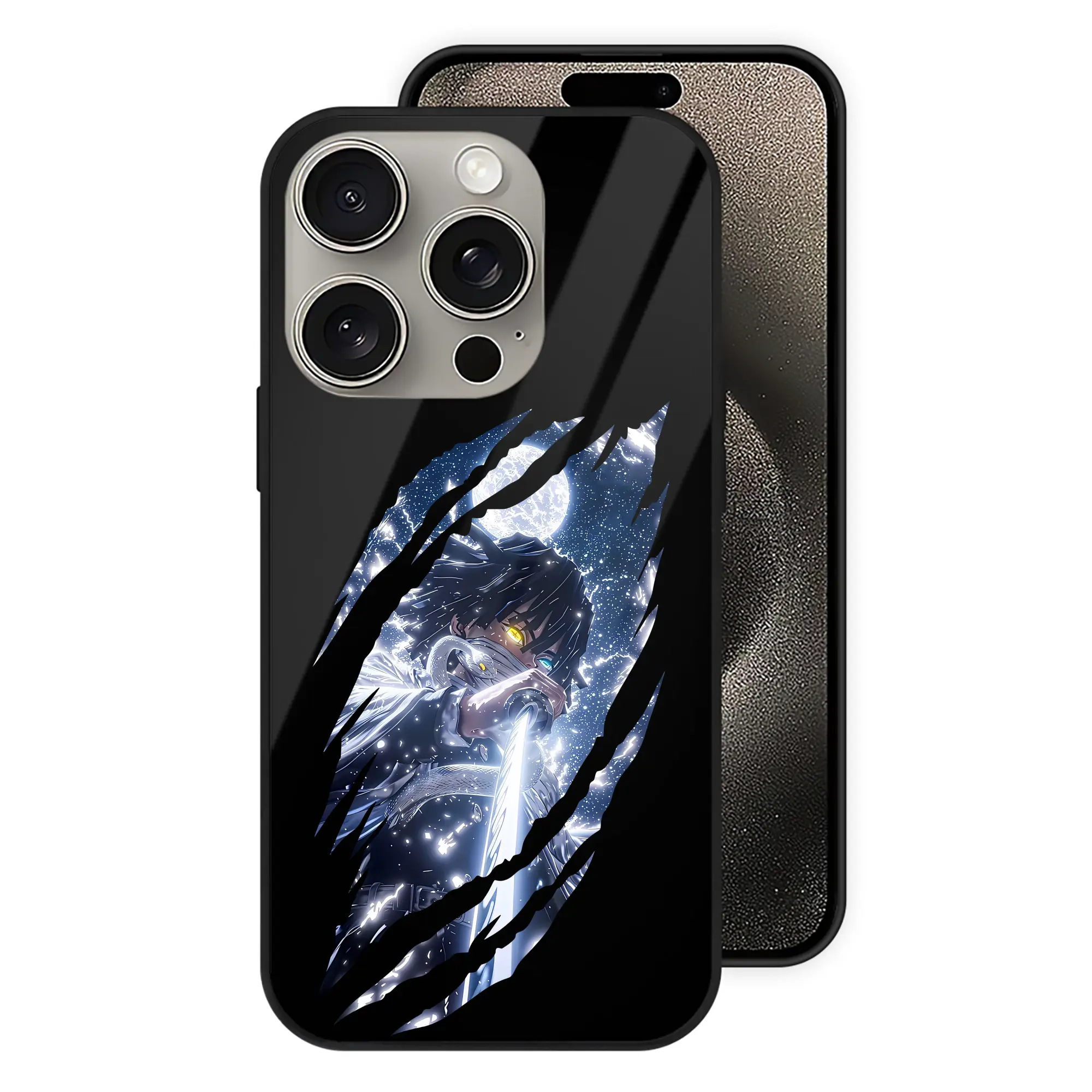 鬼滅の刃 グッズ,伊黒 小芭内 - IPhone15Pro対応 ・ スマホケース ・ 背面ガラス ・ TPU+強化ガラス ・ 耐衝撃 ・ 黄変防止 ・ ワイヤレス充電対応 ・ 3D立体ボタン