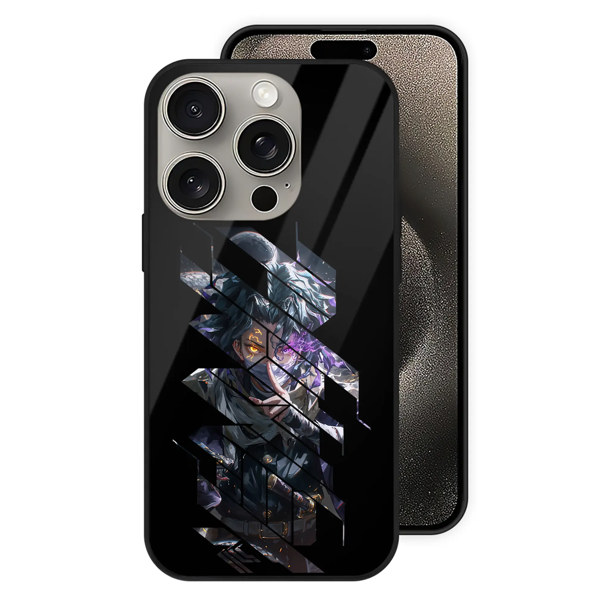 鬼滅の刃 グッズ,伊黒 小芭内 - IPhone15Pro対応 ・ スマホケース ・ 背面ガラス ・ TPU+強化ガラス ・ 耐衝撃 ・ 黄変防止 ・ ワイヤレス充電対応 ・ 3D立体ボタン