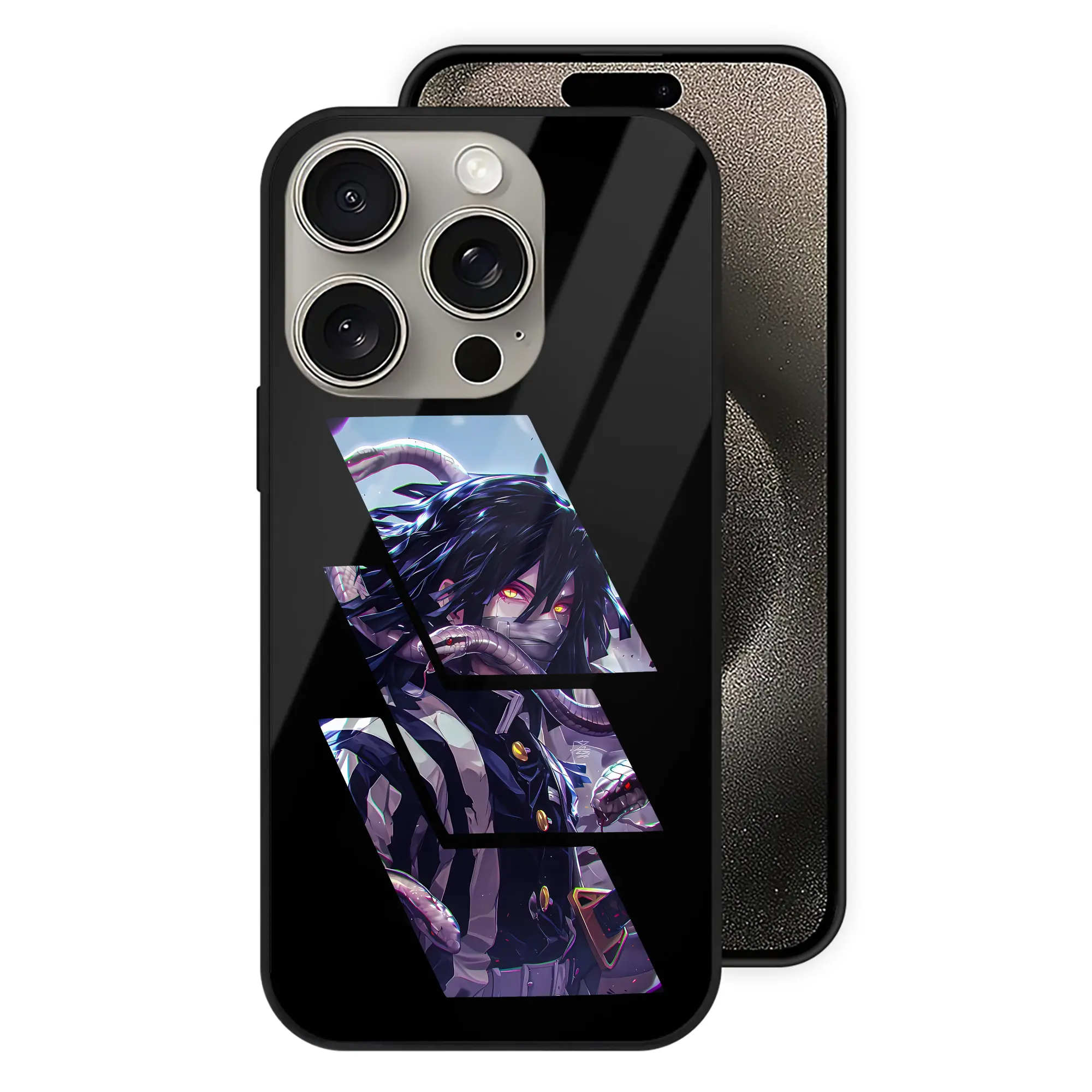 鬼滅の刃 グッズ,伊黒 小芭内 - IPhone15Pro対応 ・ スマホケース ・ 背面ガラス ・ TPU+強化ガラス ・ 耐衝撃 ・ 黄変防止 ・ ワイヤレス充電対応 ・ 3D立体ボタン