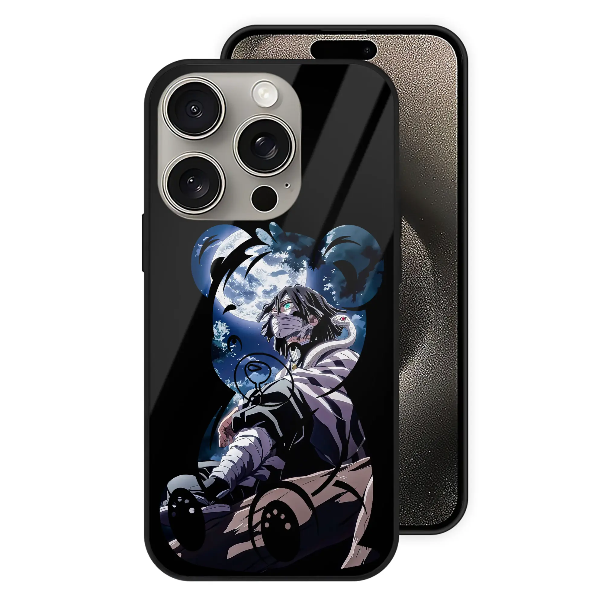鬼滅の刃 グッズ,伊黒 小芭内 - IPhone15Pro対応 ・ スマホケース ・ 背面ガラス ・ TPU+強化ガラス ・ 耐衝撃 ・ 黄変防止 ・ ワイヤレス充電対応 ・ 3D立体ボタン