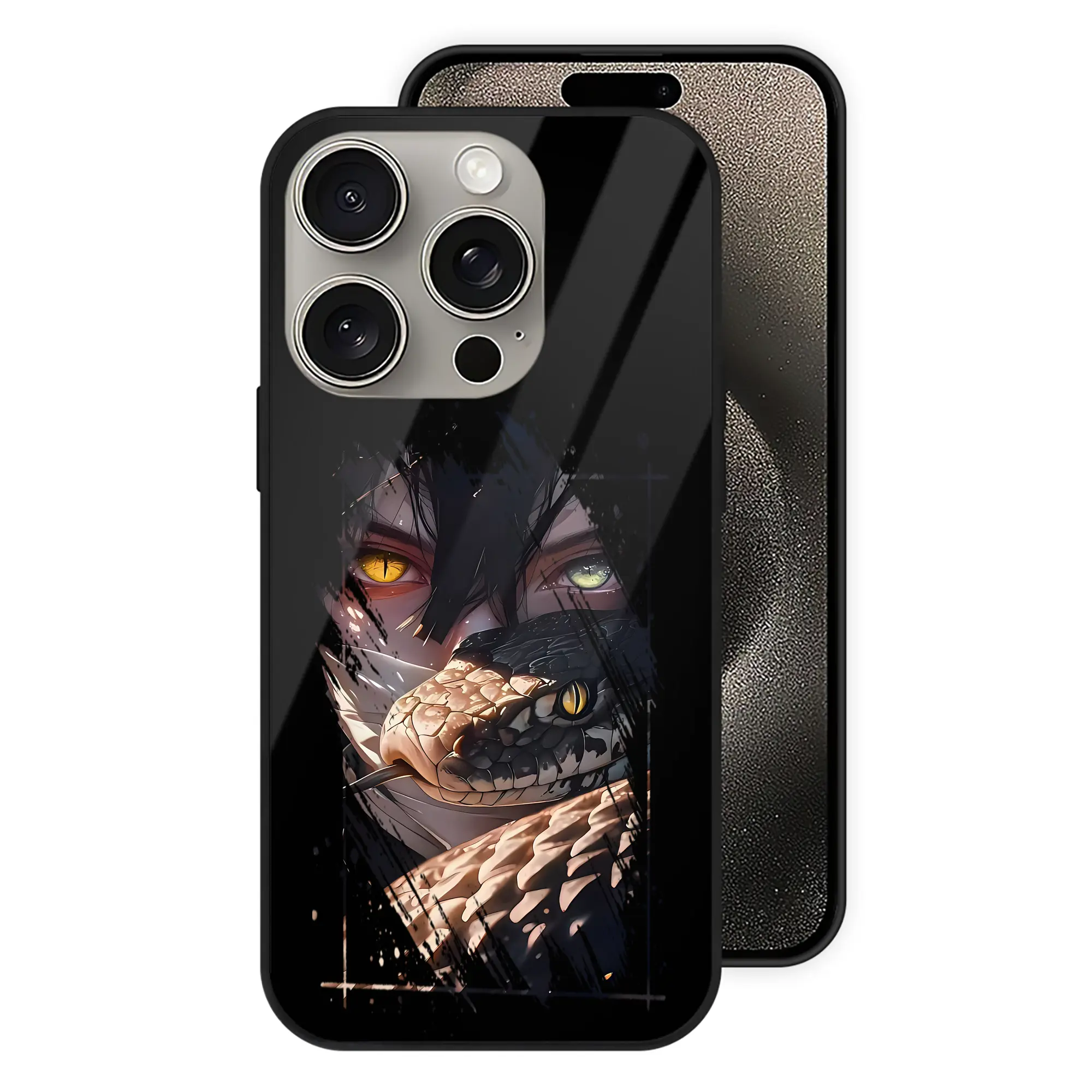 鬼滅の刃 グッズ,伊黒 小芭内 - IPhone15Pro対応 ・ スマホケース ・ 背面ガラス ・ TPU+強化ガラス ・ 耐衝撃 ・ 黄変防止 ・ ワイヤレス充電対応 ・ 3D立体ボタン