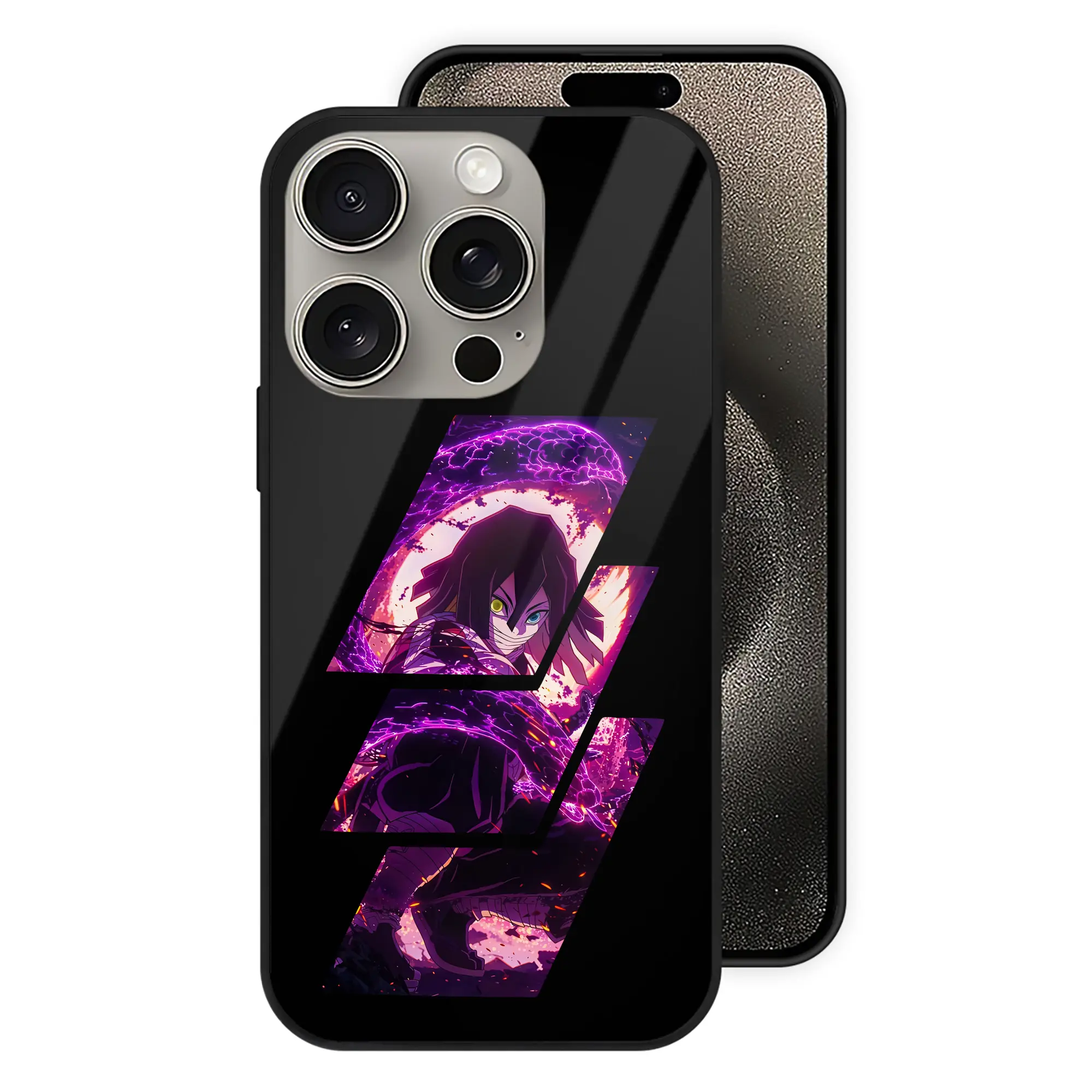 鬼滅の刃 グッズ,伊黒 小芭内 - IPhone15Pro対応 ・ スマホケース ・ 背面ガラス ・ TPU+強化ガラス ・ 耐衝撃 ・ 黄変防止 ・ ワイヤレス充電対応 ・ 3D立体ボタン