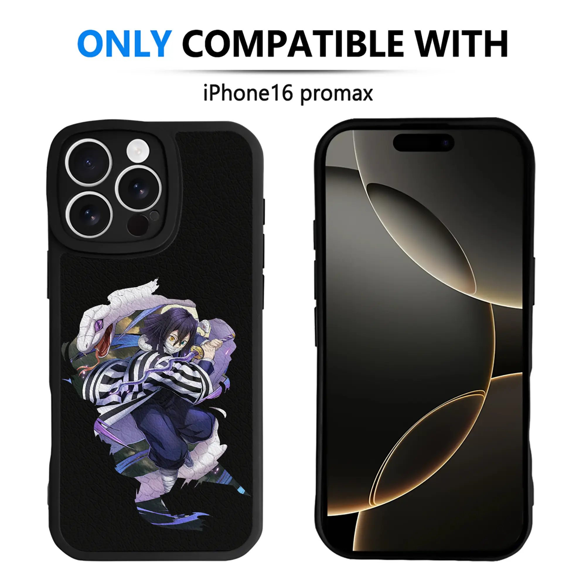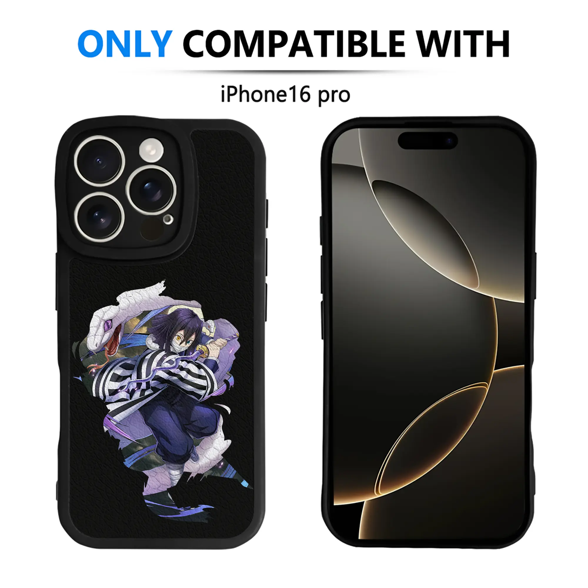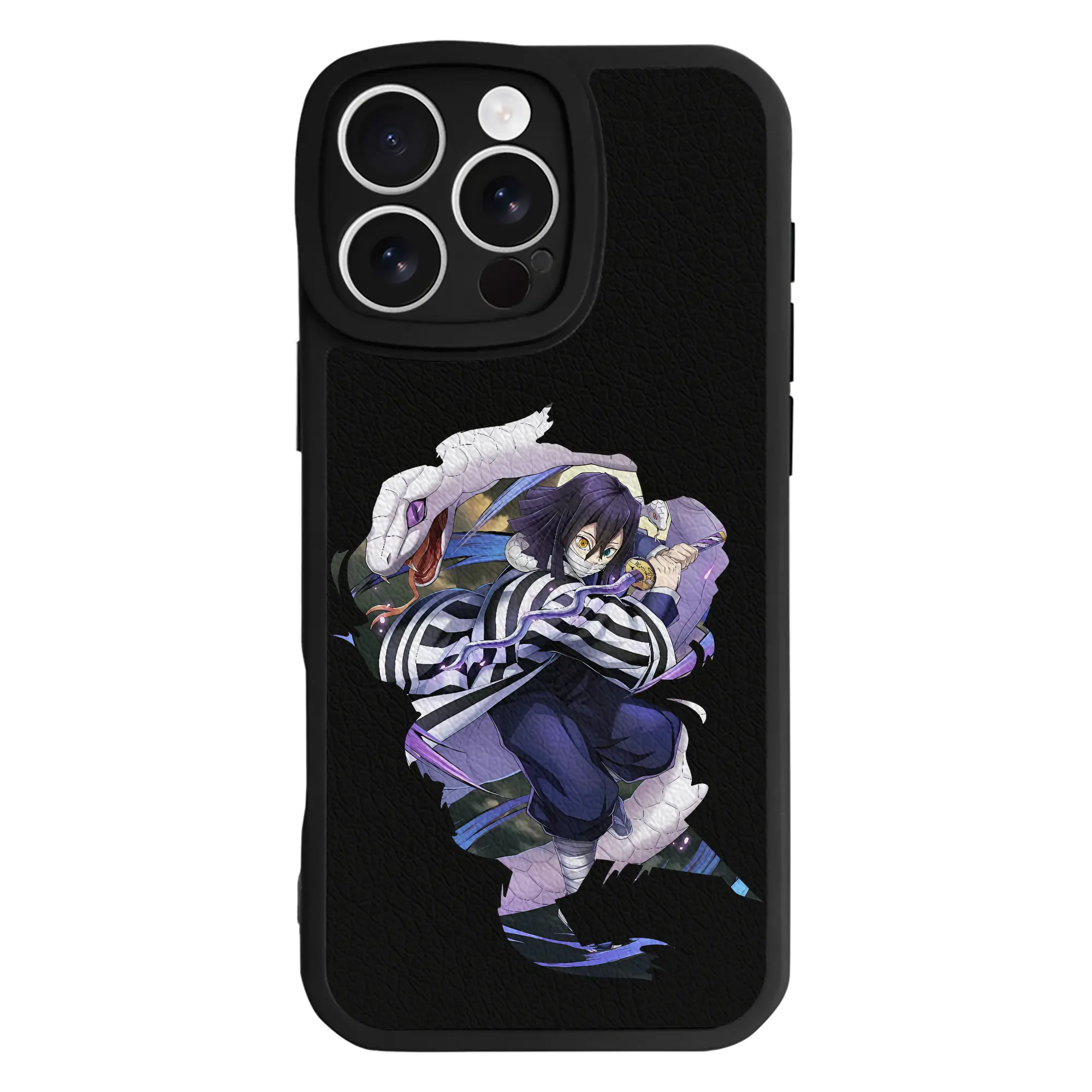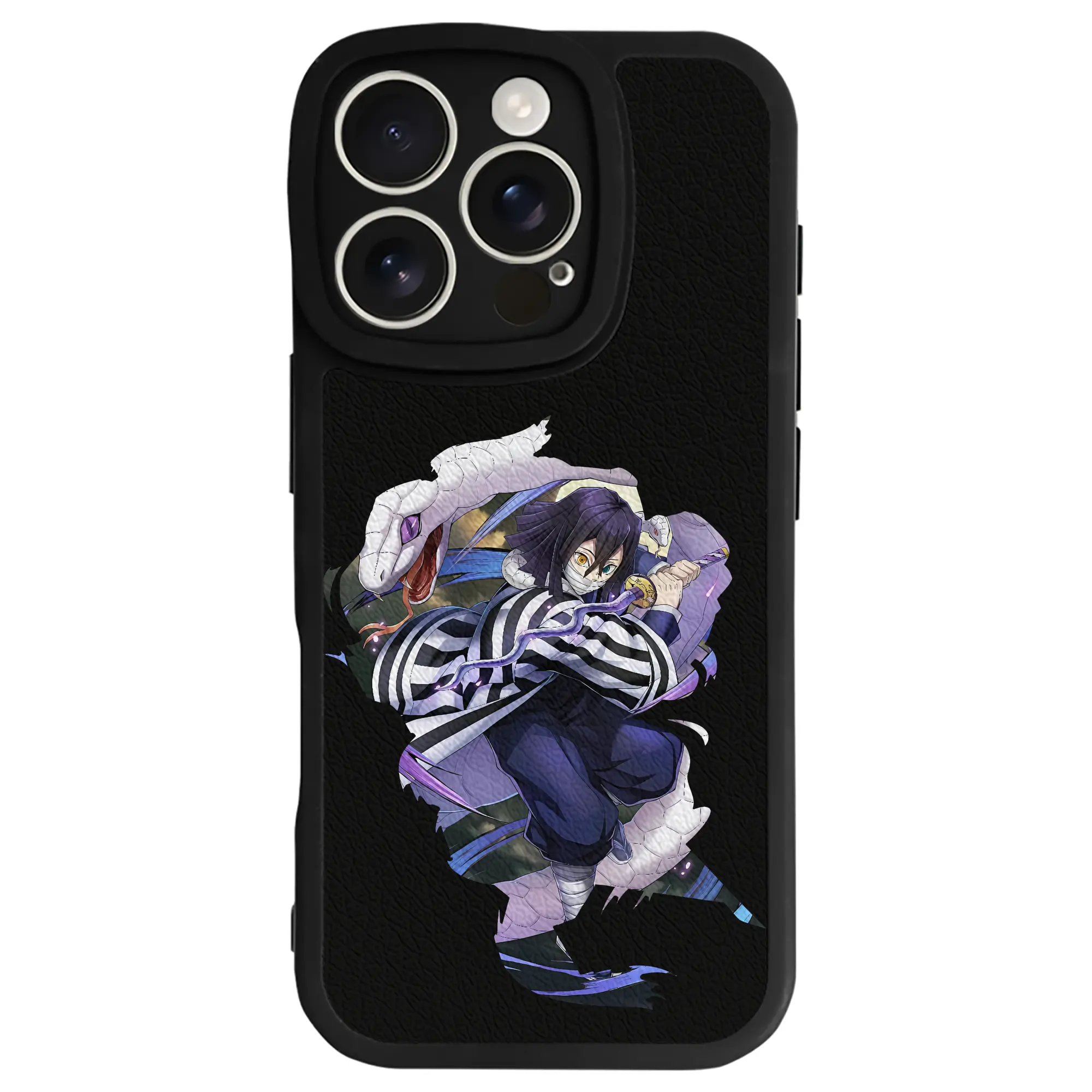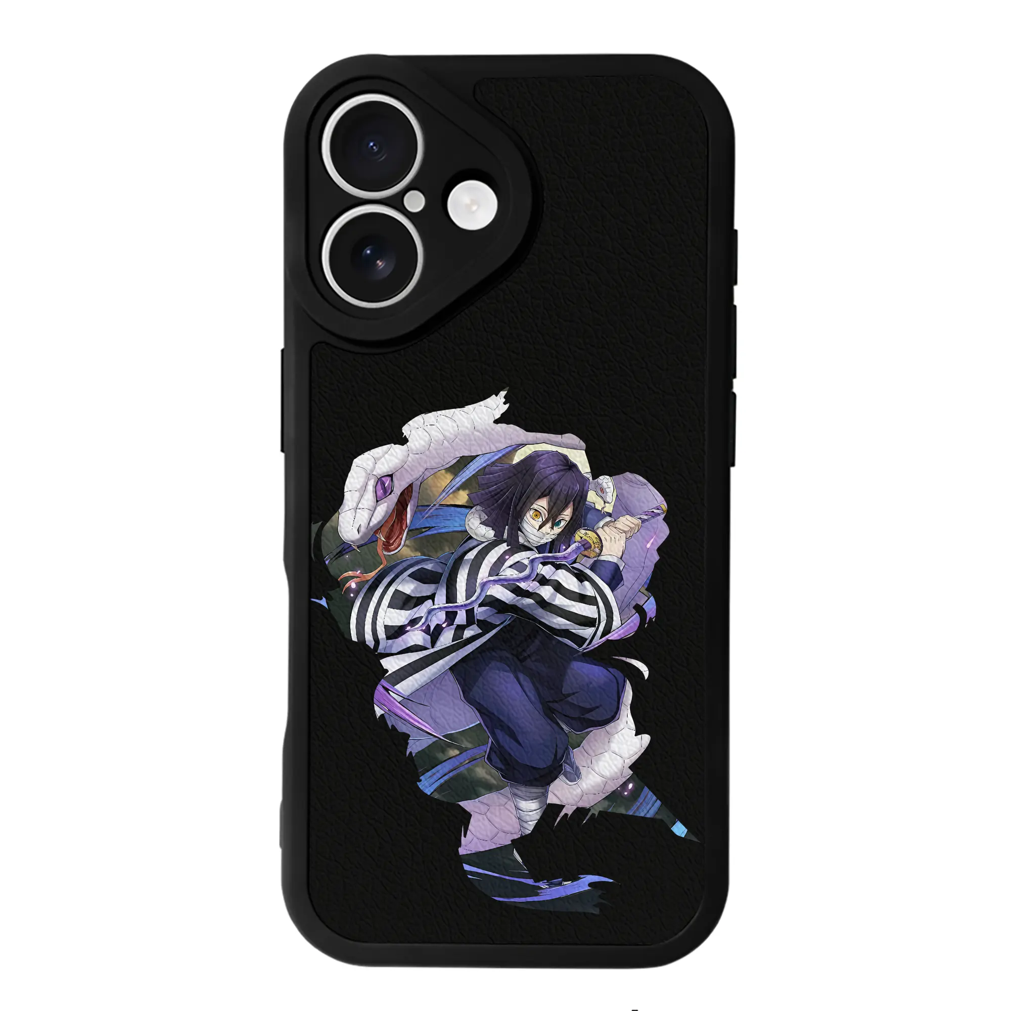 鬼滅の刃 グッズ,伊黒 小芭内 - IPhone 16シリーズ対応 ・ シリコンスマホケース ・ レザー調 ・ 高精度フィット ・ 耐衝撃 ・ ワイヤレス充電対応 ・ 精密カット