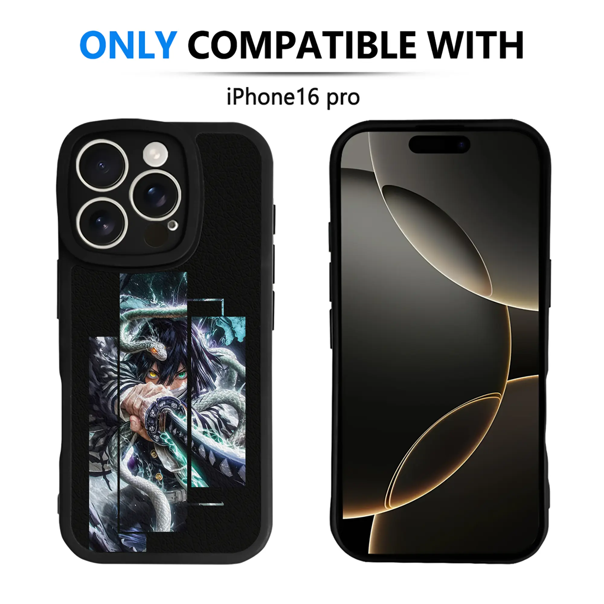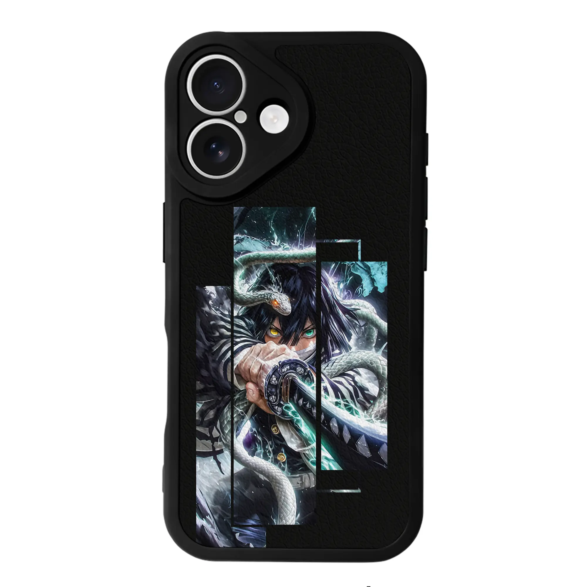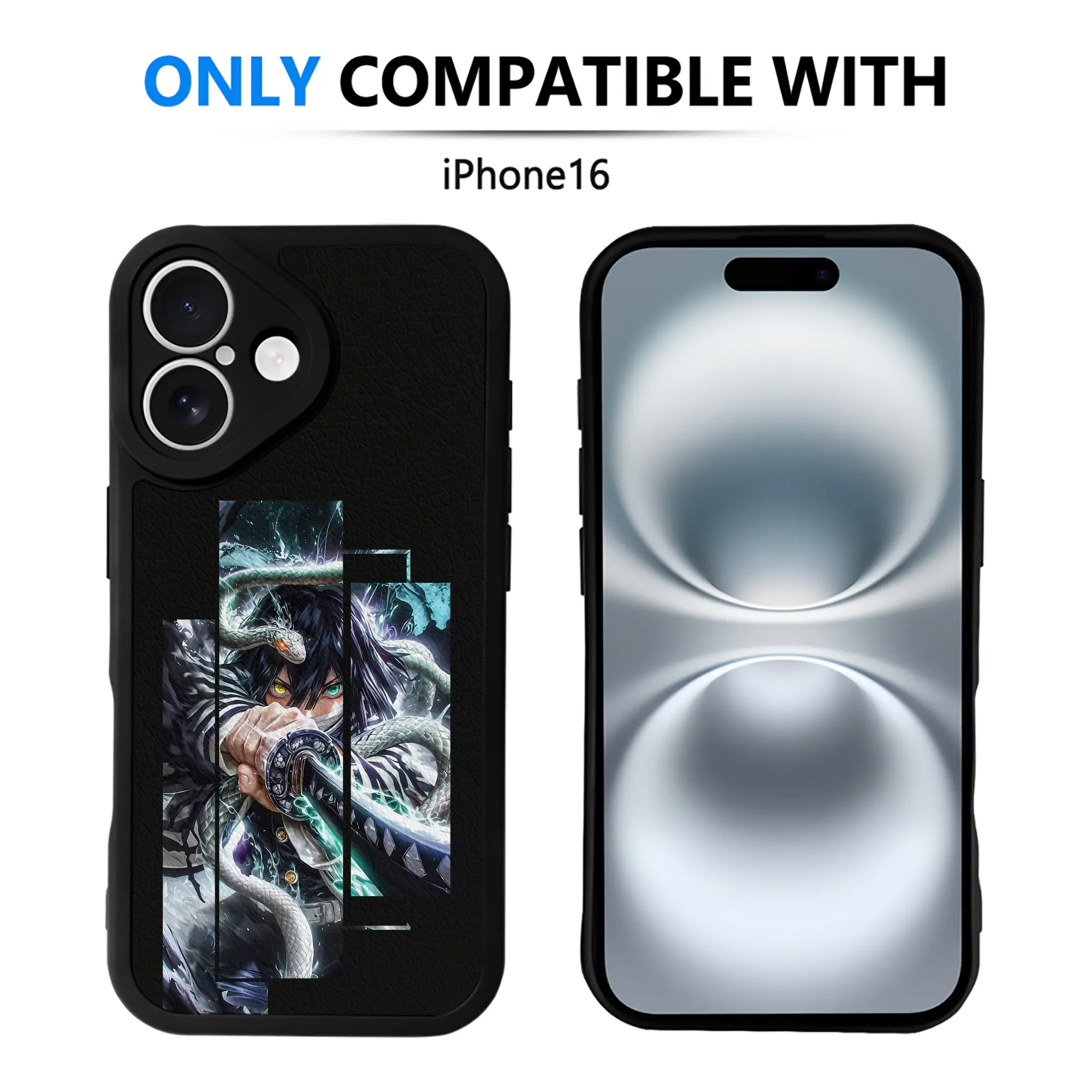 鬼滅の刃 グッズ,伊黒 小芭内 - IPhone 16シリーズ対応 ・ シリコンスマホケース ・ レザー調 ・ 高精度フィット ・ 耐衝撃 ・ ワイヤレス充電対応 ・ 精密カット