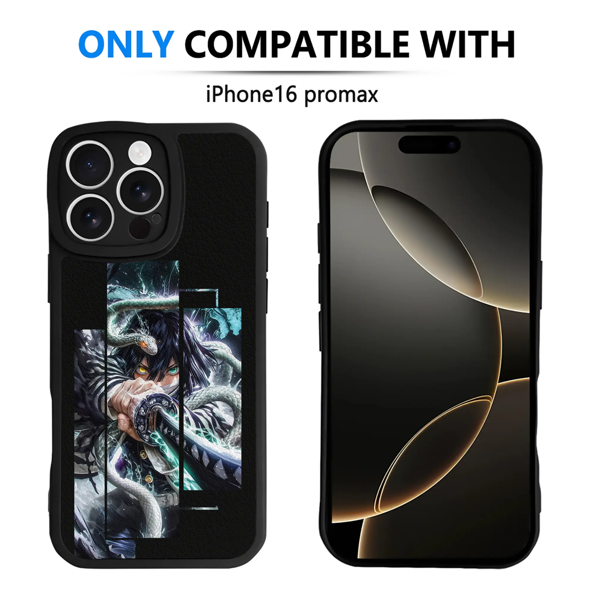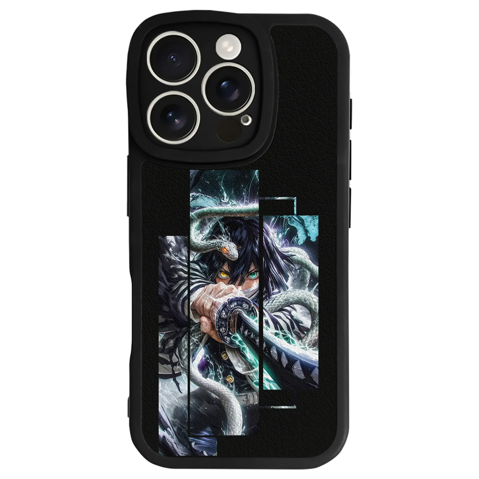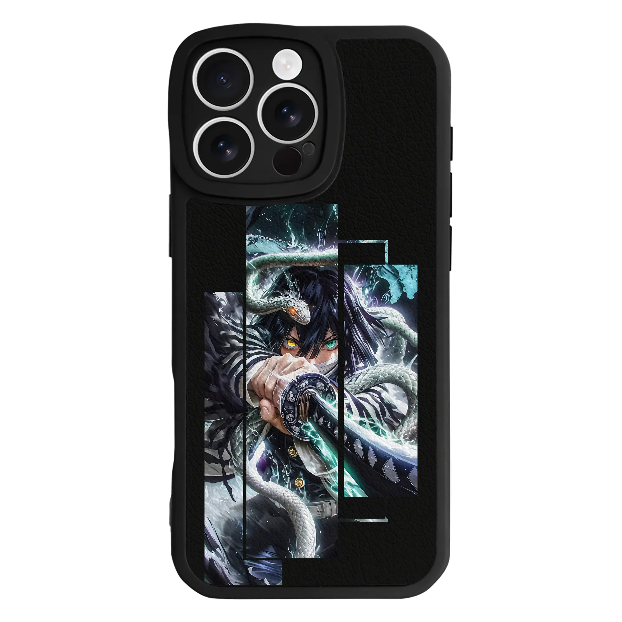 鬼滅の刃 グッズ,伊黒 小芭内 - IPhone 16シリーズ対応 ・ シリコンスマホケース ・ レザー調 ・ 高精度フィット ・ 耐衝撃 ・ ワイヤレス充電対応 ・ 精密カット