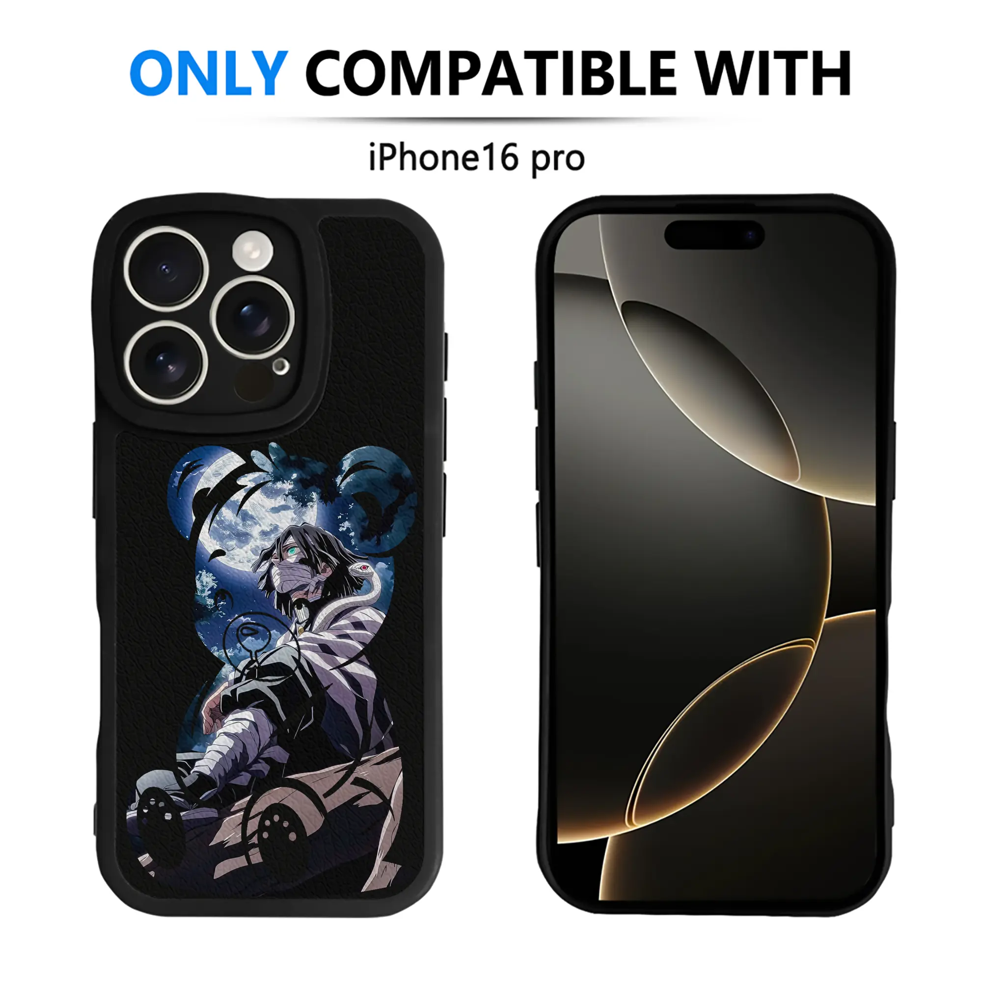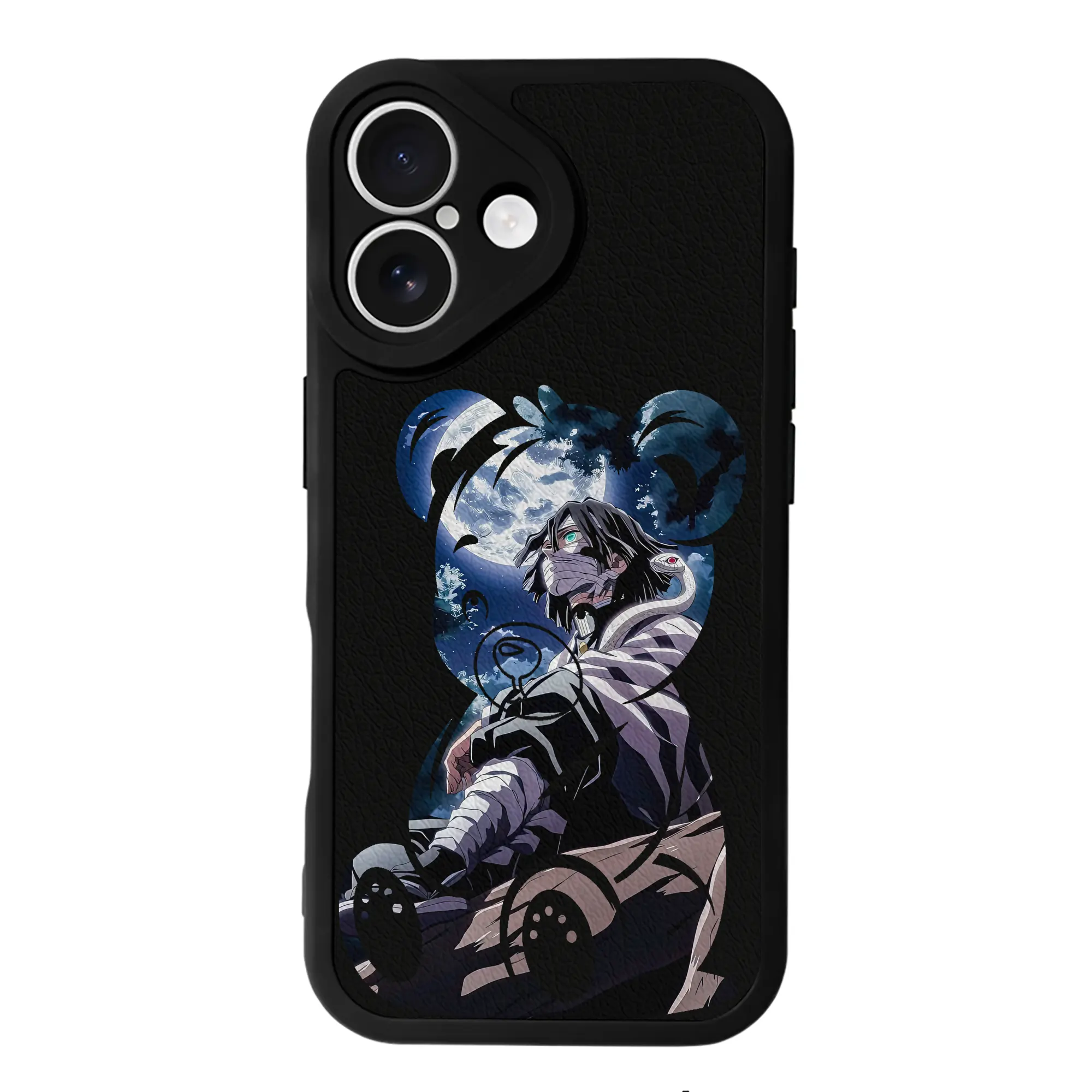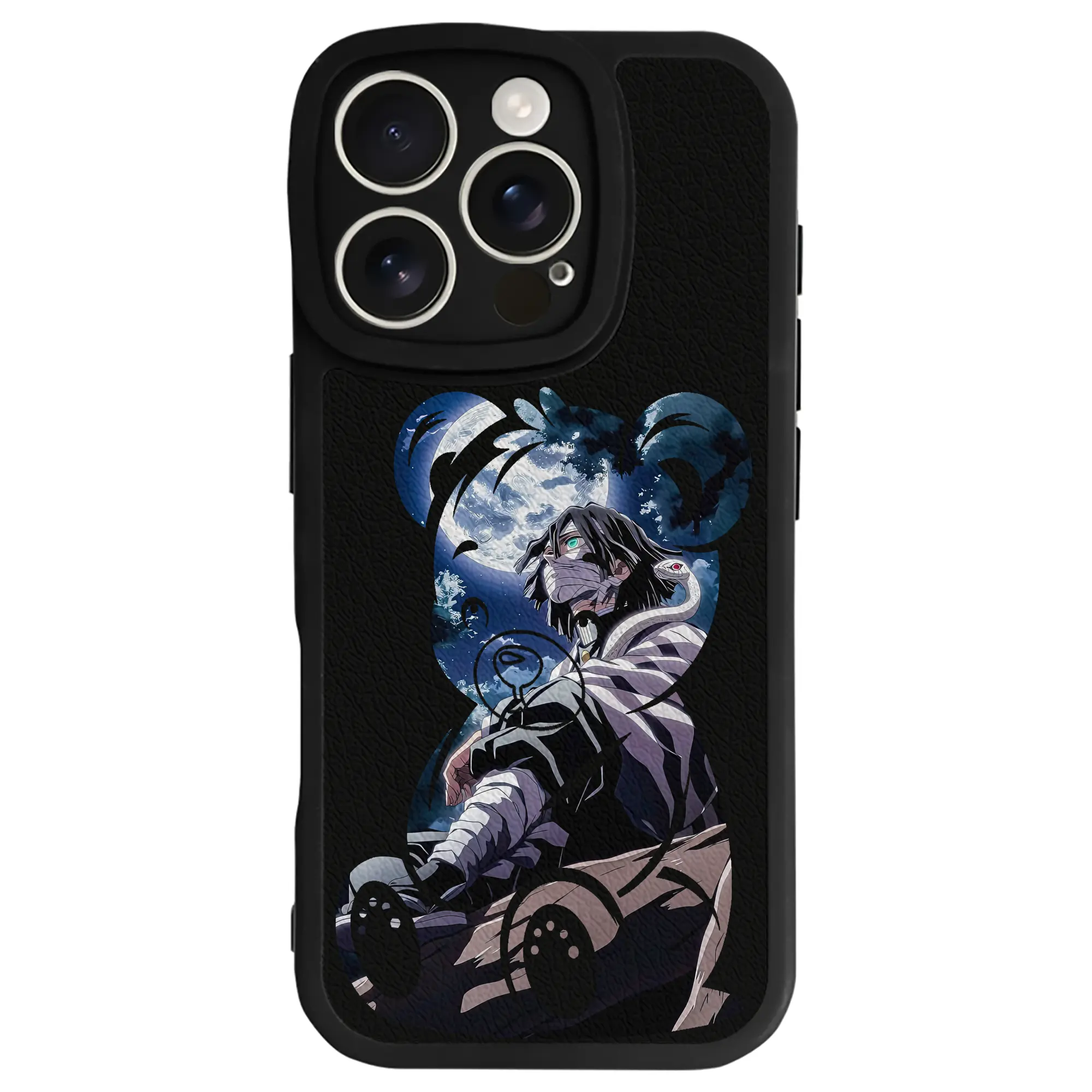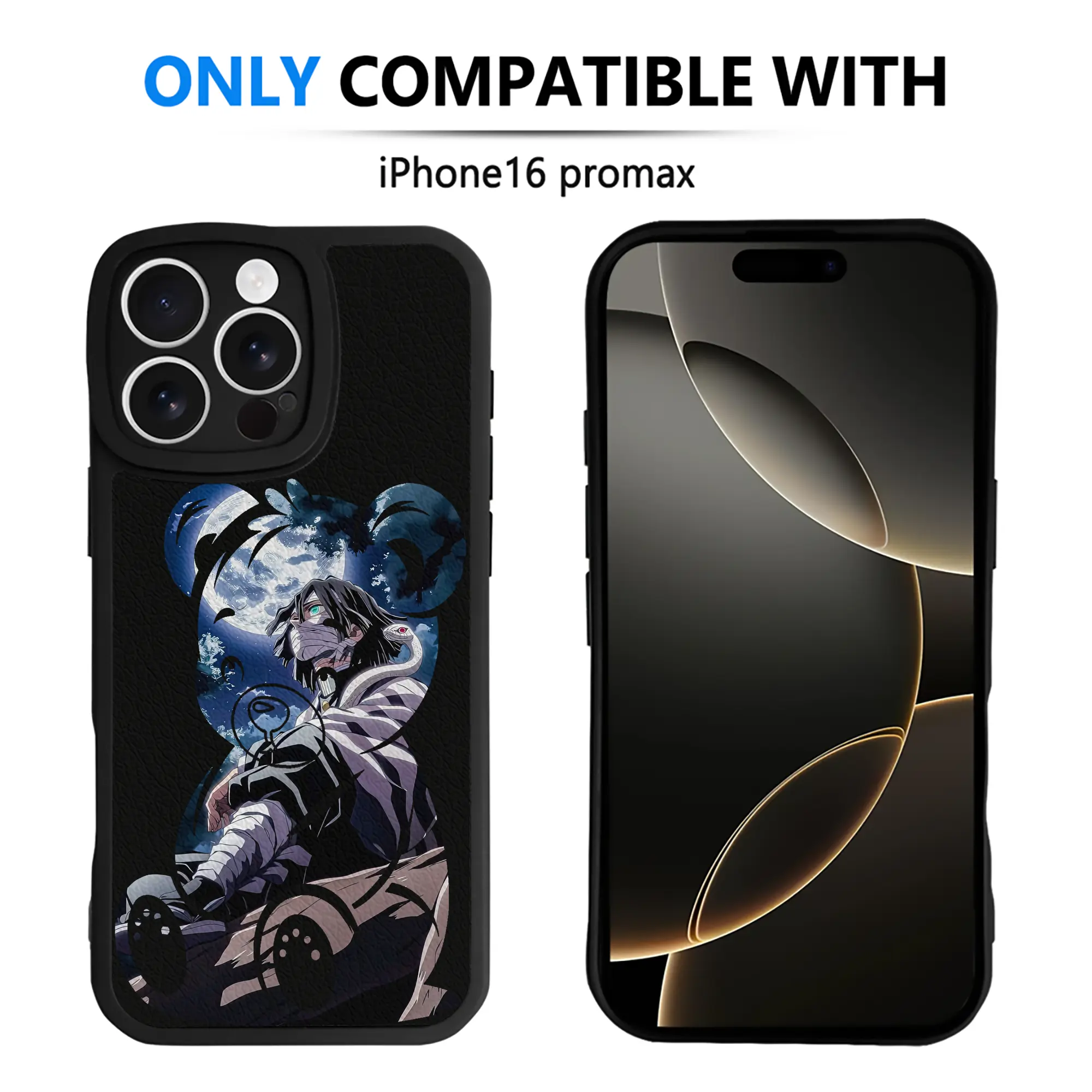 鬼滅の刃 グッズ,伊黒 小芭内 - IPhone 16シリーズ対応 ・ シリコンスマホケース ・ レザー調 ・ 高精度フィット ・ 耐衝撃 ・ ワイヤレス充電対応 ・ 精密カット