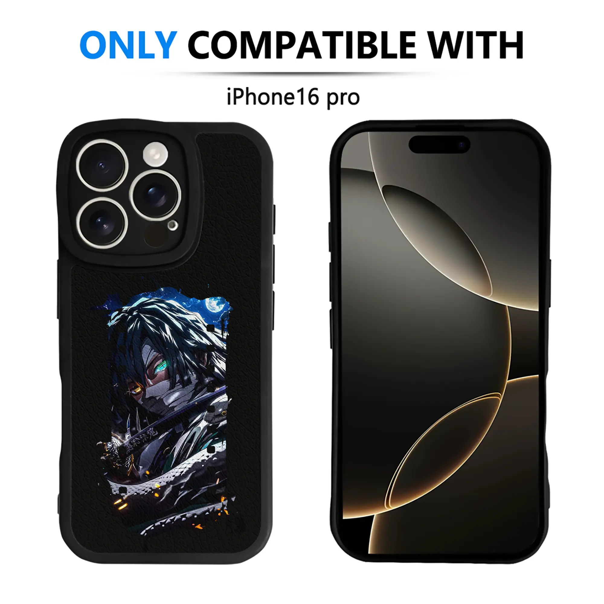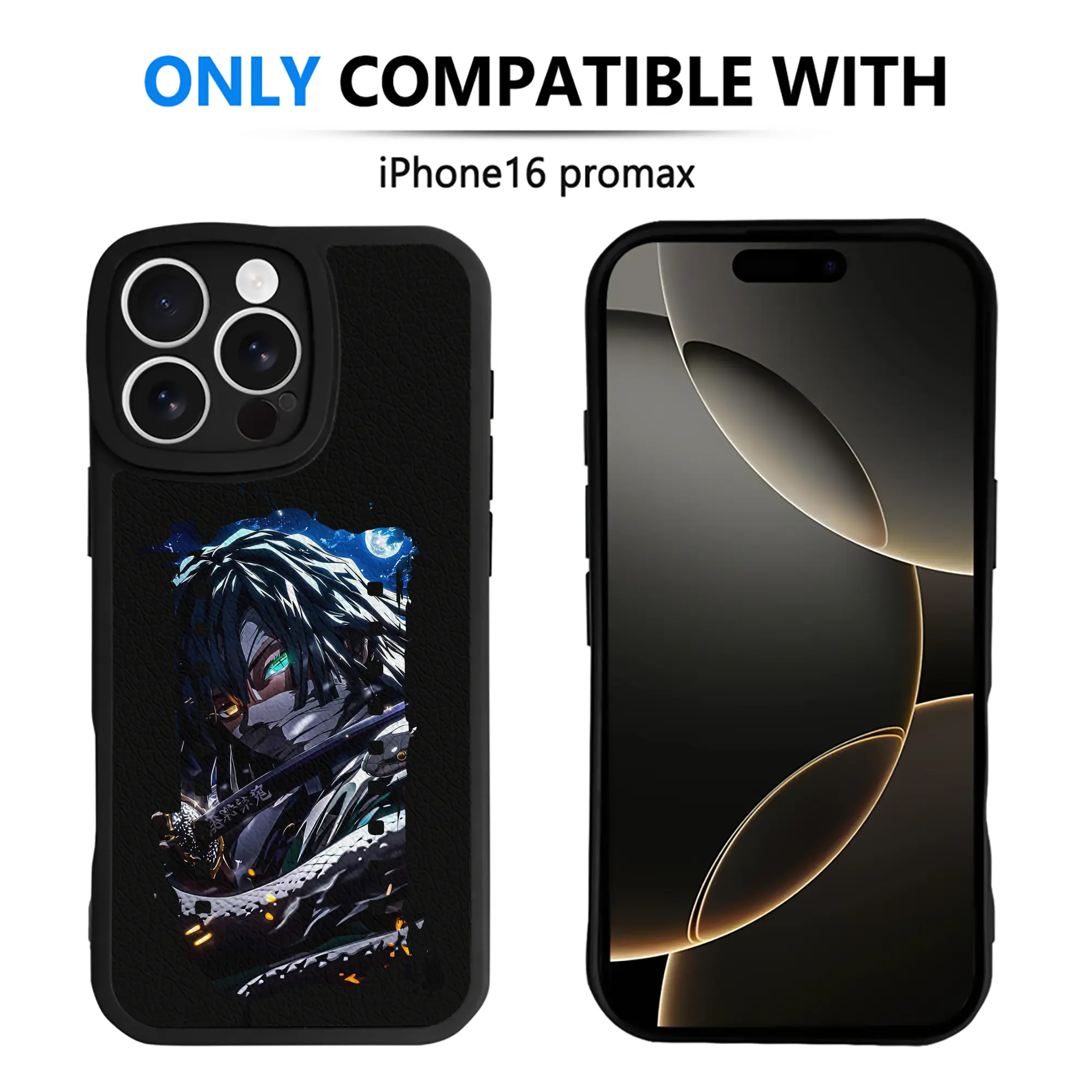 鬼滅の刃 グッズ,伊黒 小芭内 - IPhone 16シリーズ対応 ・ シリコンスマホケース ・ レザー調 ・ 高精度フィット ・ 耐衝撃 ・ ワイヤレス充電対応 ・ 精密カット