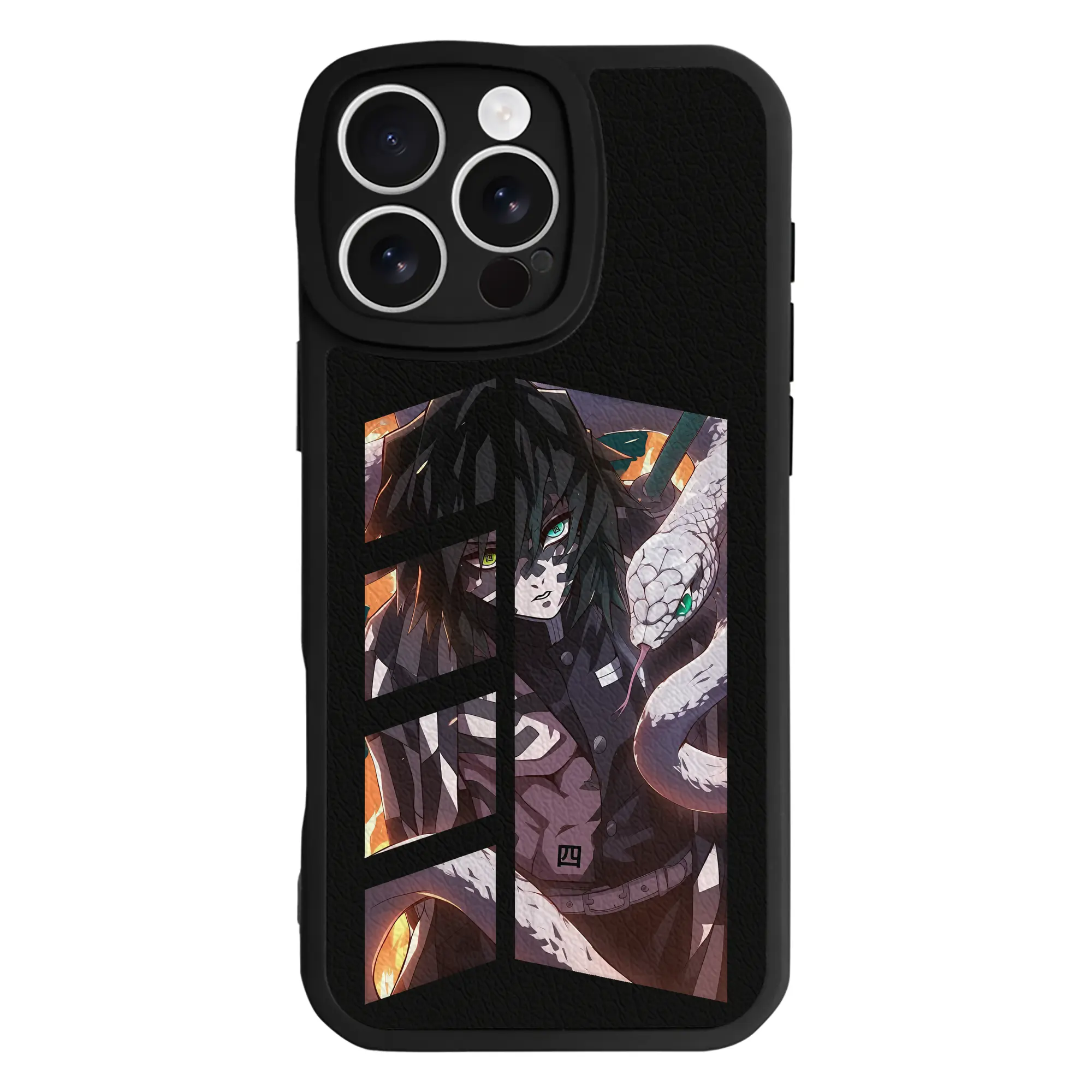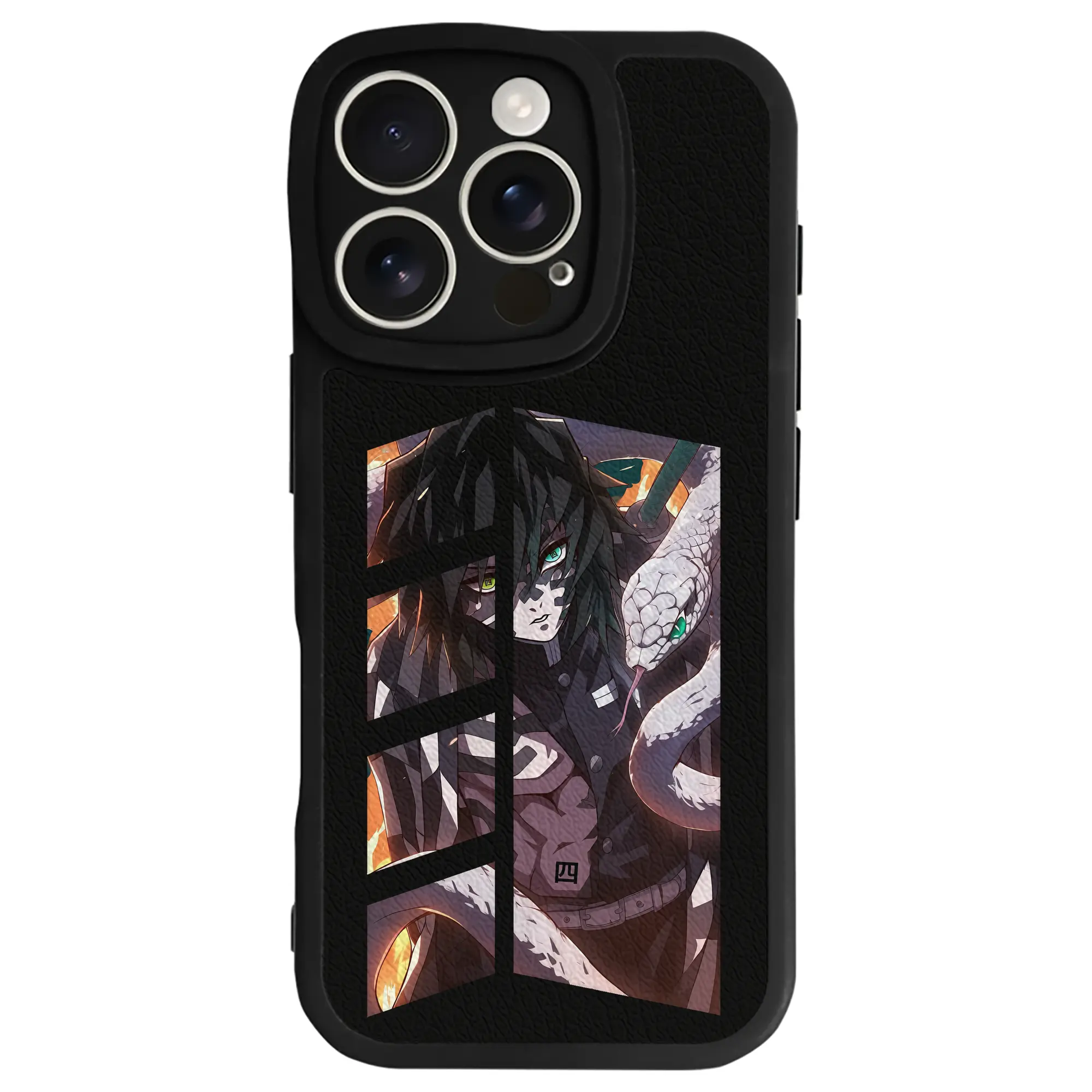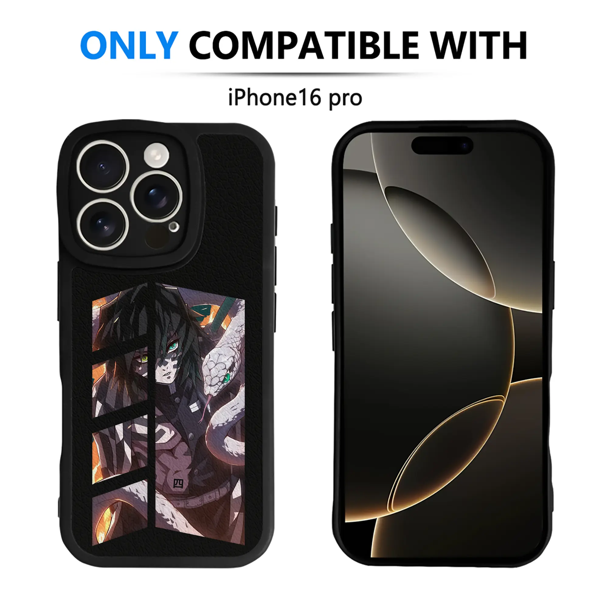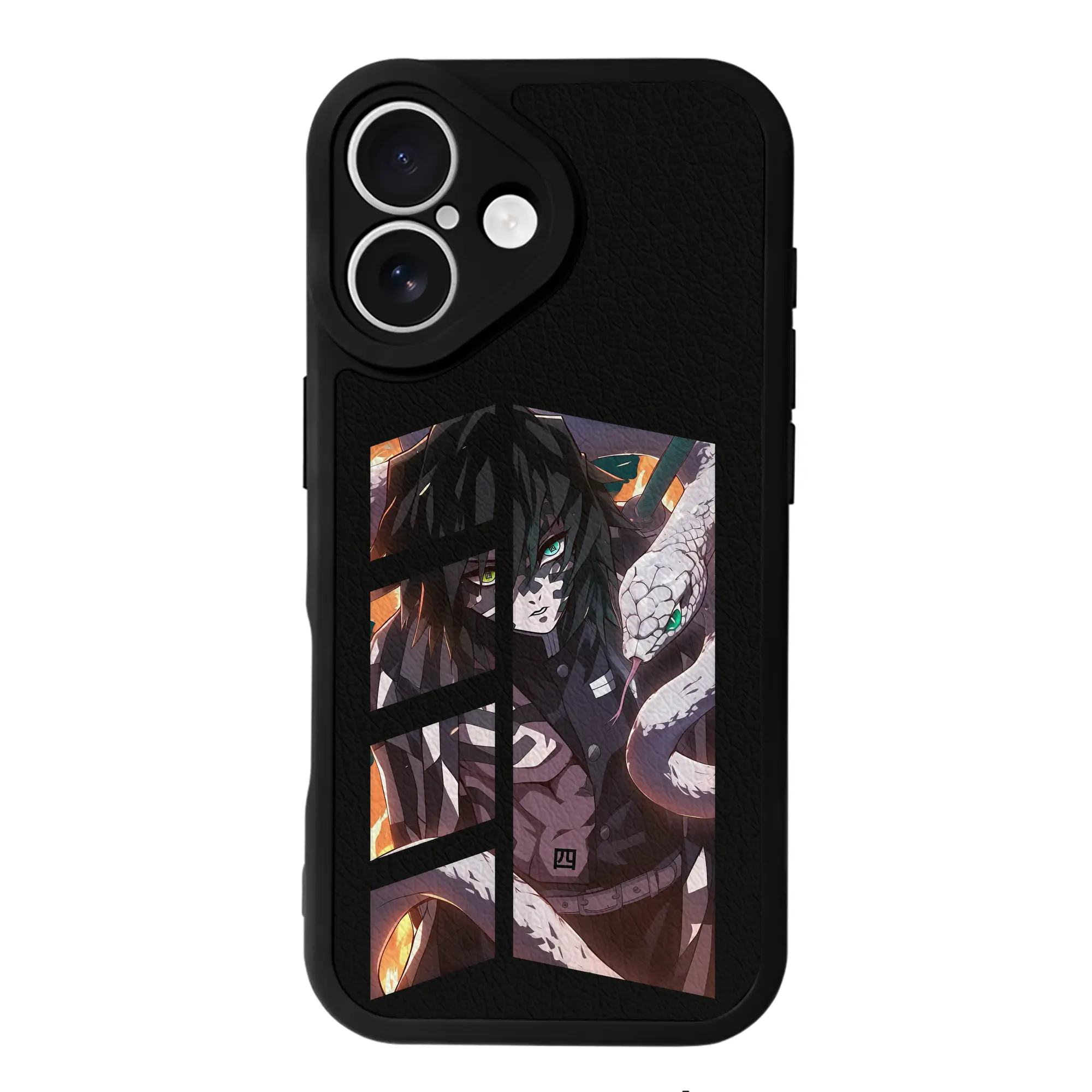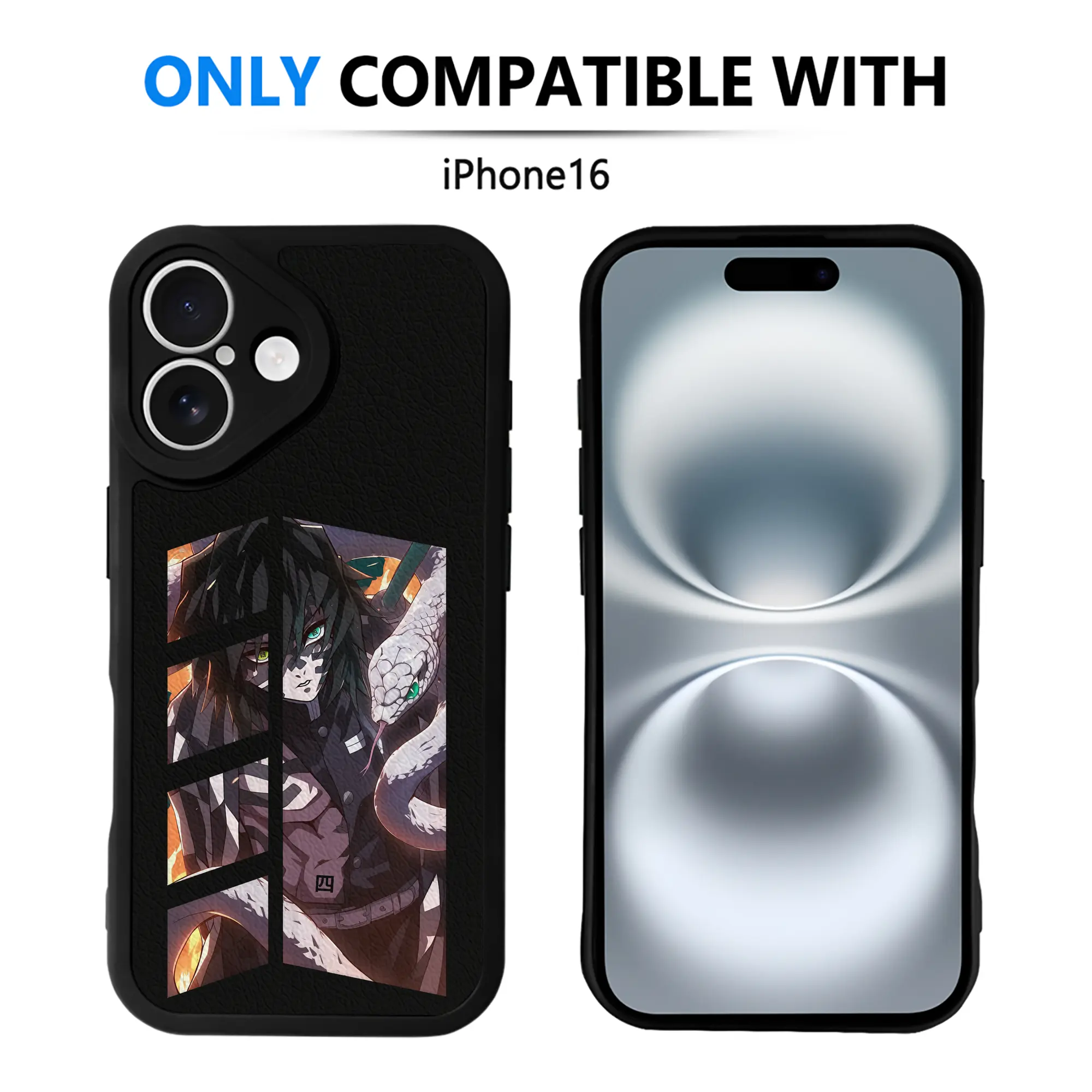 鬼滅の刃 グッズ,伊黒 小芭内 - IPhone 16シリーズ対応 ・ シリコンスマホケース ・ レザー調 ・ 高精度フィット ・ 耐衝撃 ・ ワイヤレス充電対応 ・ 精密カット