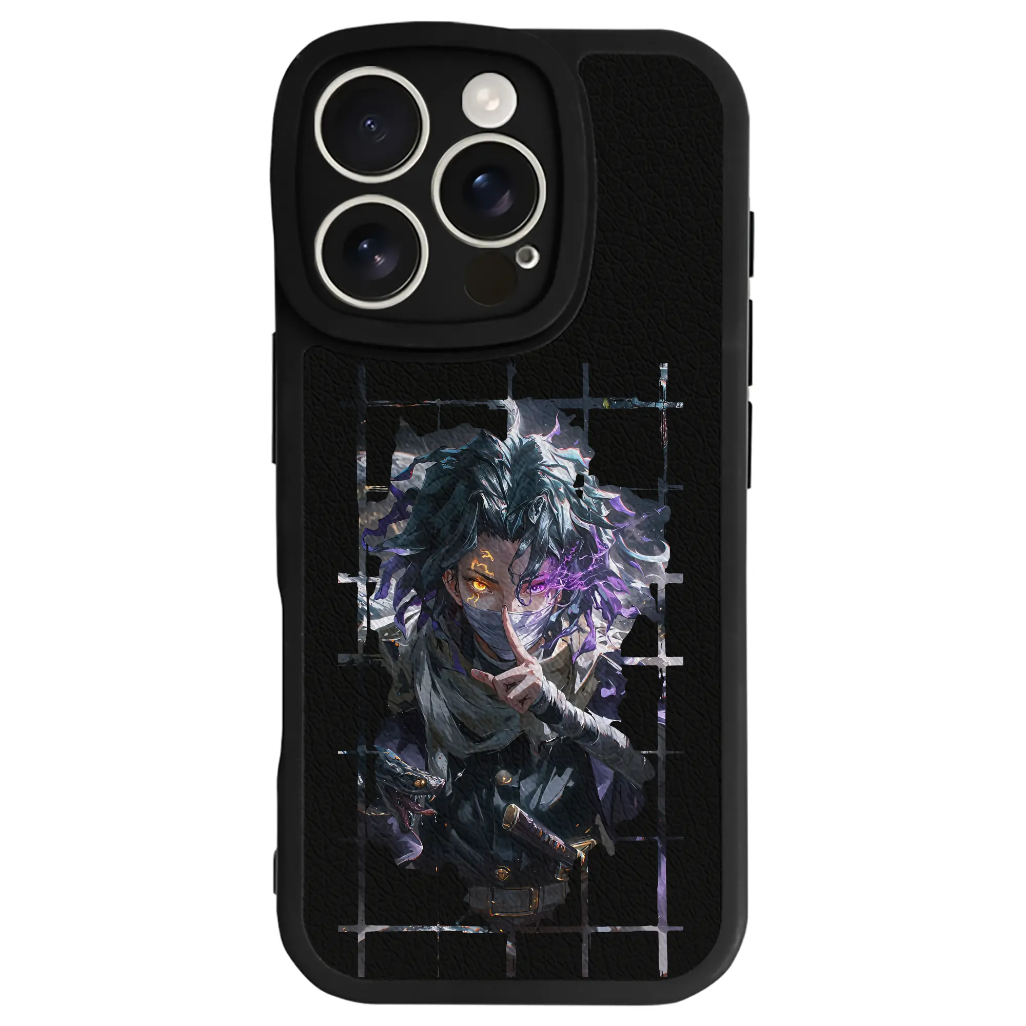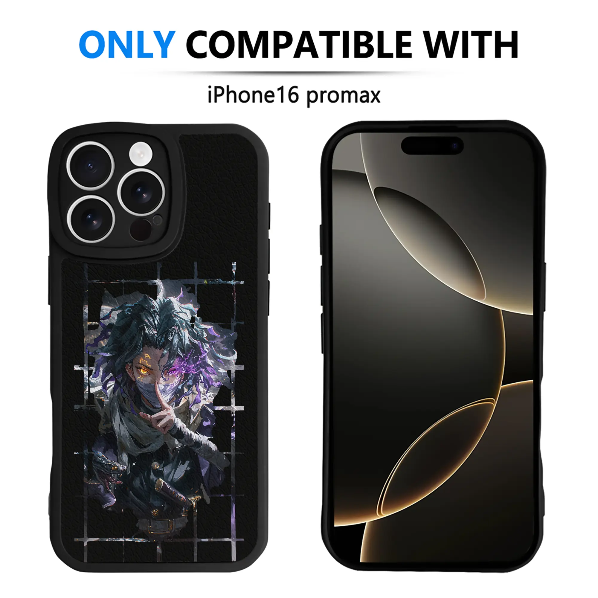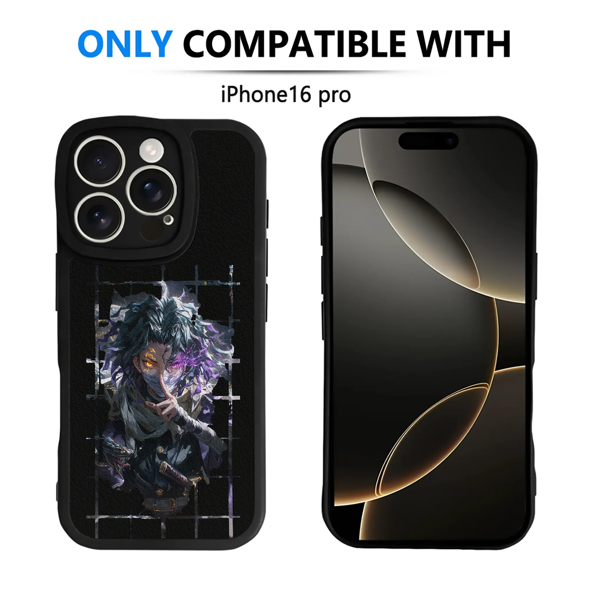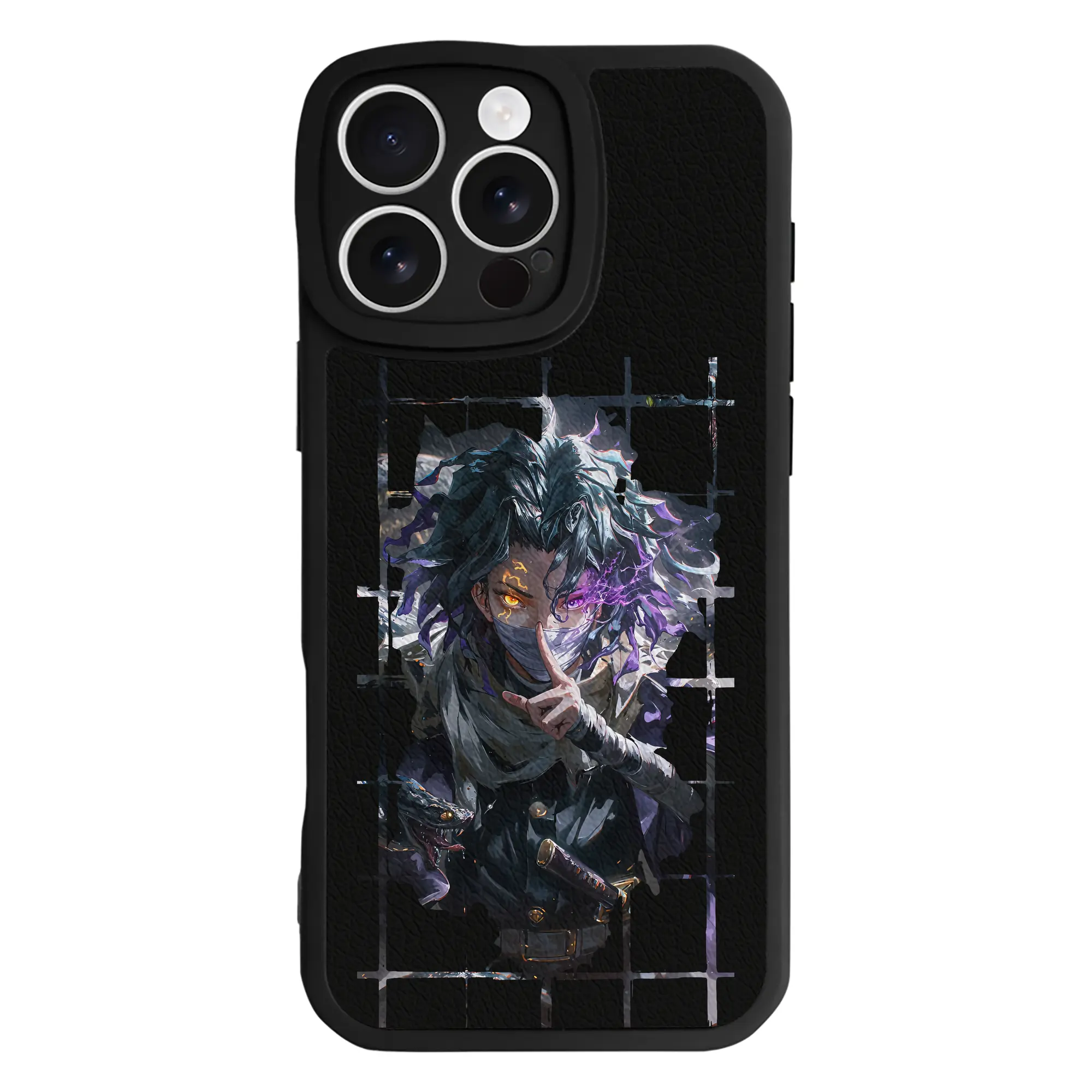 鬼滅の刃 グッズ,伊黒 小芭内 - IPhone 16シリーズ対応 ・ シリコンスマホケース ・ レザー調 ・ 高精度フィット ・ 耐衝撃 ・ ワイヤレス充電対応 ・ 精密カット