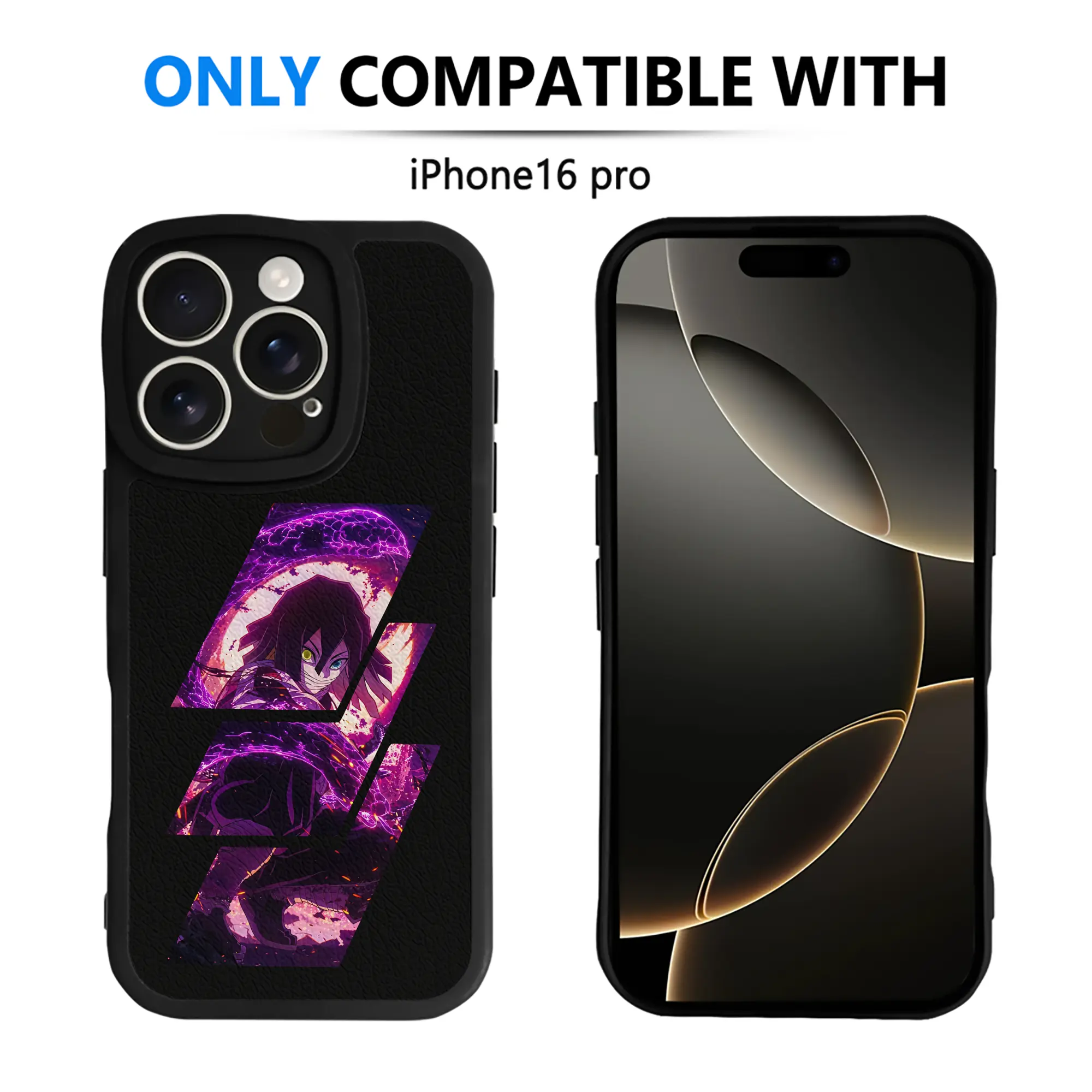 鬼滅の刃 グッズ,伊黒 小芭内 - IPhone 16シリーズ対応 ・ シリコンスマホケース ・ レザー調 ・ 高精度フィット ・ 耐衝撃 ・ ワイヤレス充電対応 ・ 精密カット