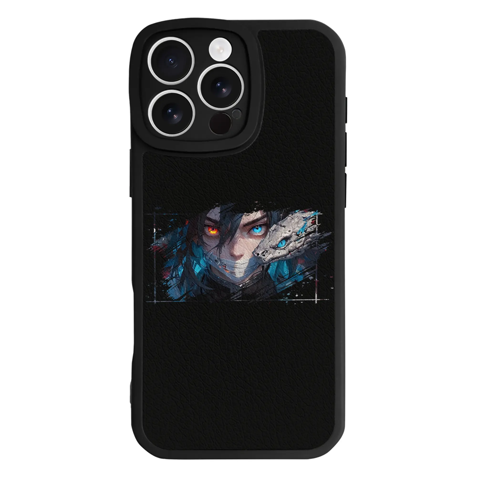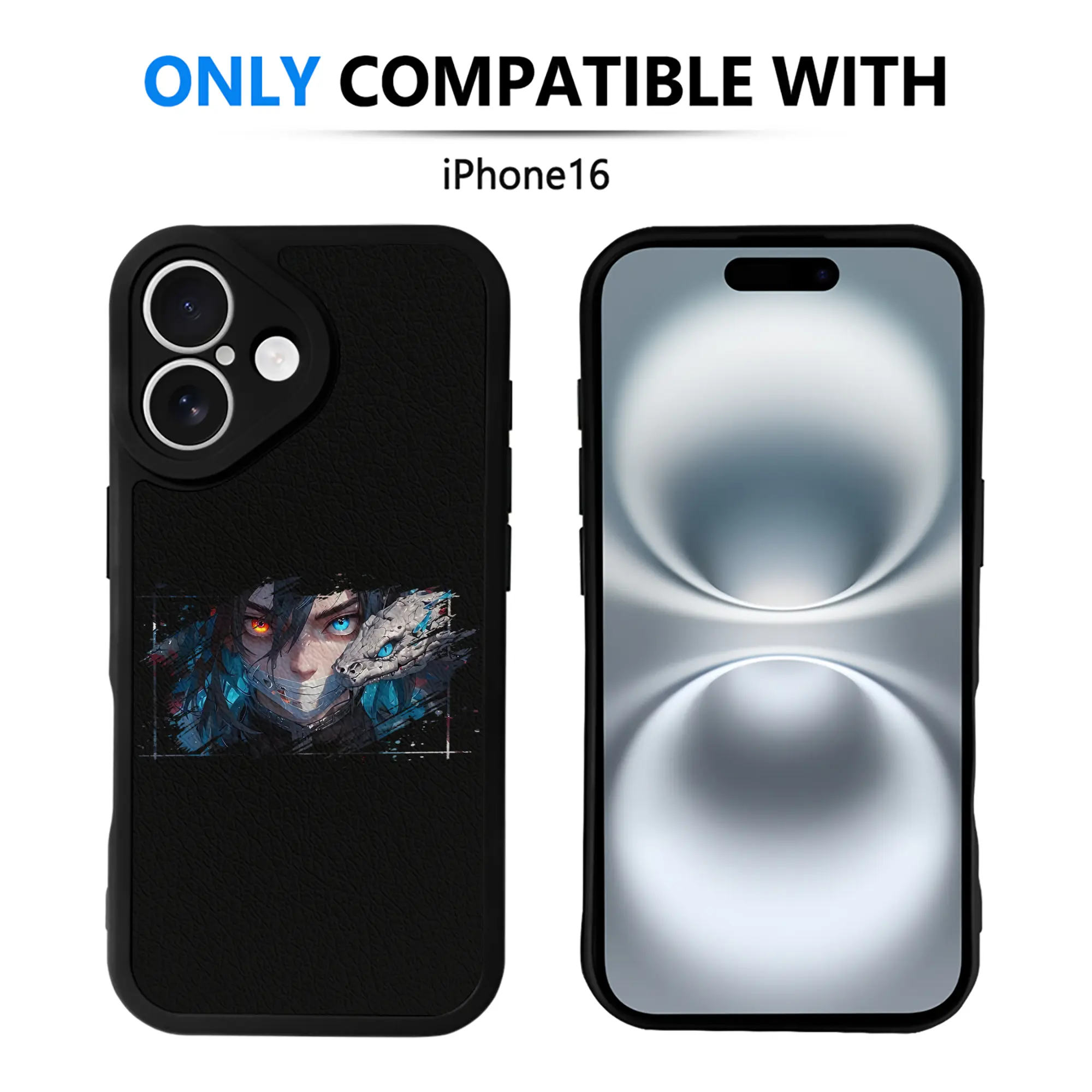 鬼滅の刃 グッズ,伊黒 小芭内 - IPhone 16シリーズ対応 ・ シリコンスマホケース ・ レザー調 ・ 高精度フィット ・ 耐衝撃 ・ ワイヤレス充電対応 ・ 精密カット