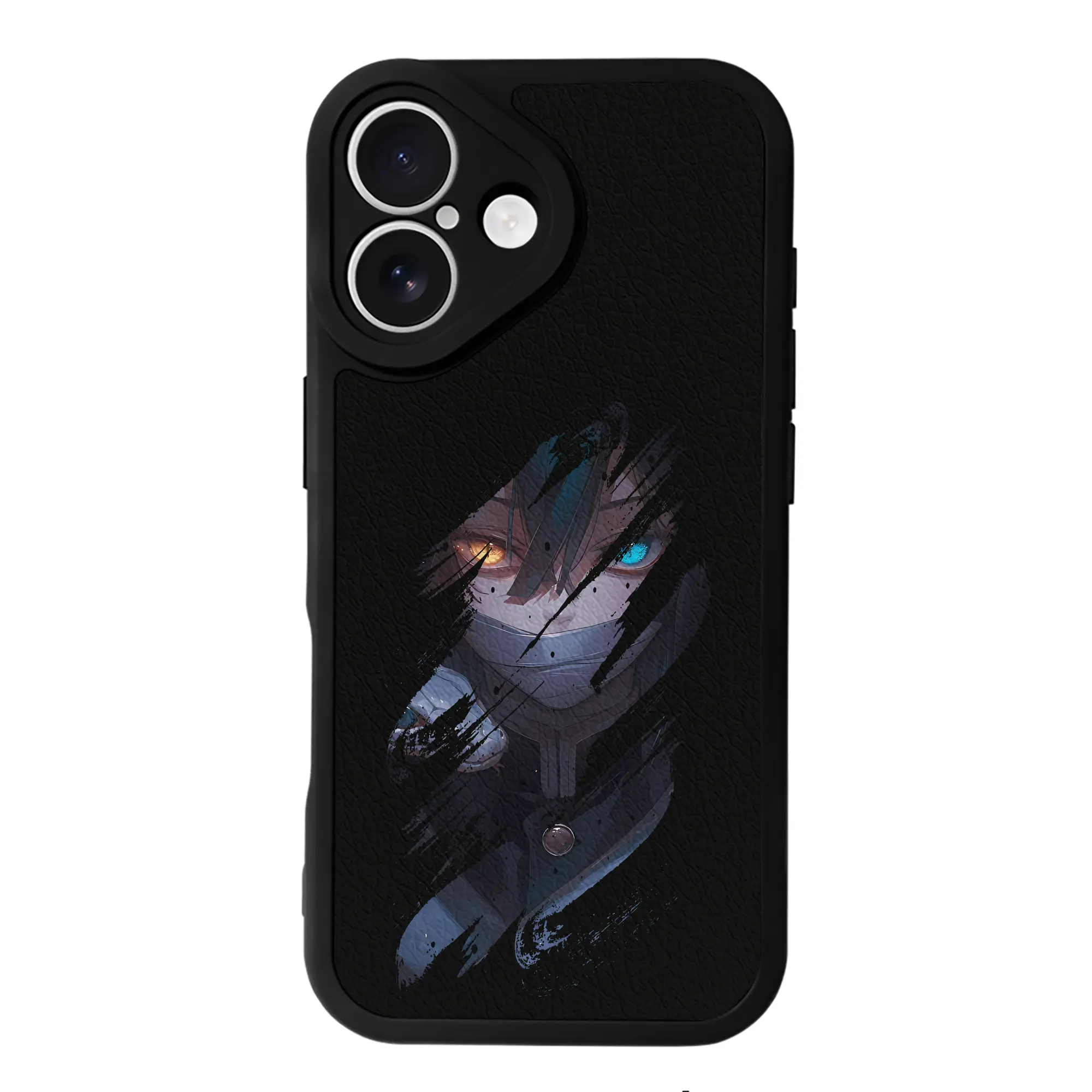 鬼滅の刃 グッズ,伊黒 小芭内 - IPhone 16シリーズ対応 ・ シリコンスマホケース ・ レザー調 ・ 高精度フィット ・ 耐衝撃 ・ ワイヤレス充電対応 ・ 精密カット