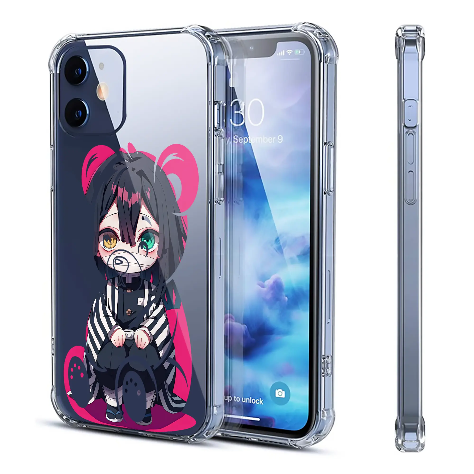 鬼滅の刃 グッズ,伊黒 小芭内 - IPhone 12シリーズ対応 ・ 透明スマホケース ・ クリアソフトケース ・ TPU素材 ・ 耐衝撃 ・ 高密着 ・ 防汚 防指紋 ・ 簡単着脱