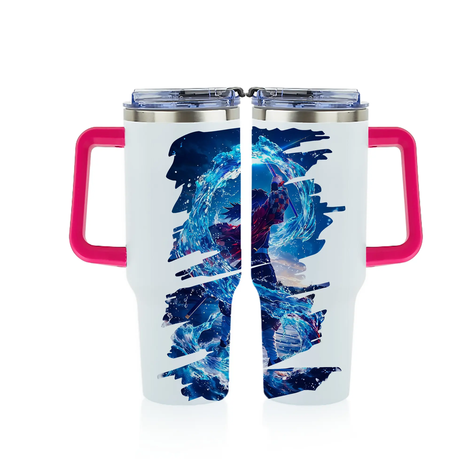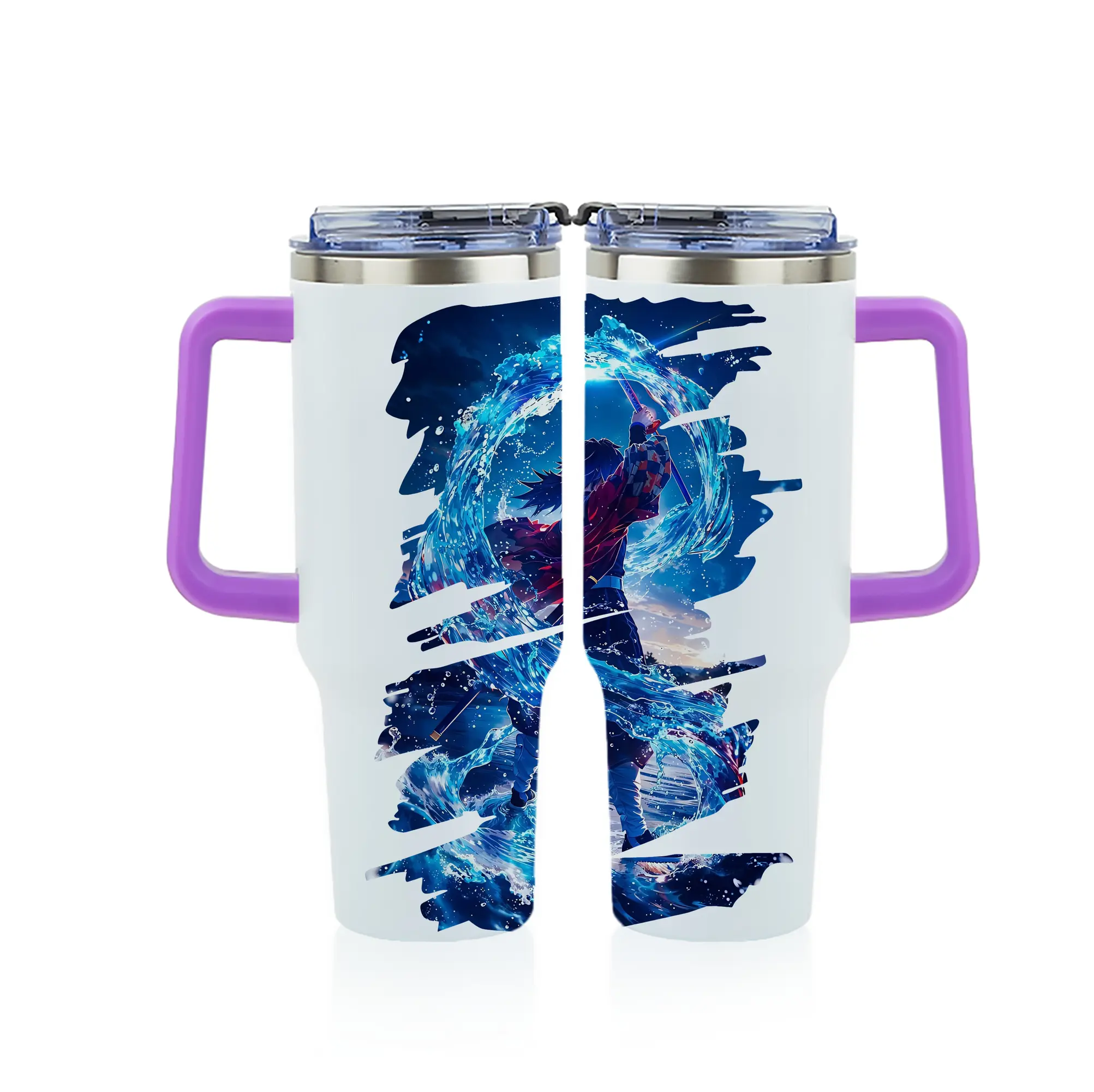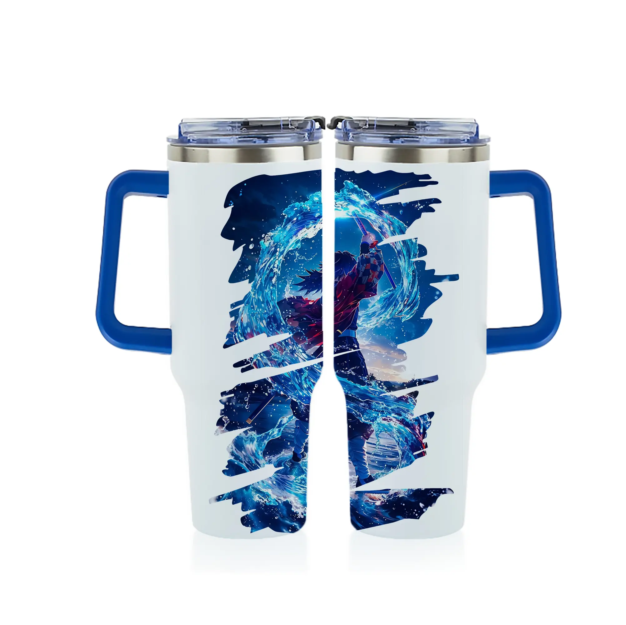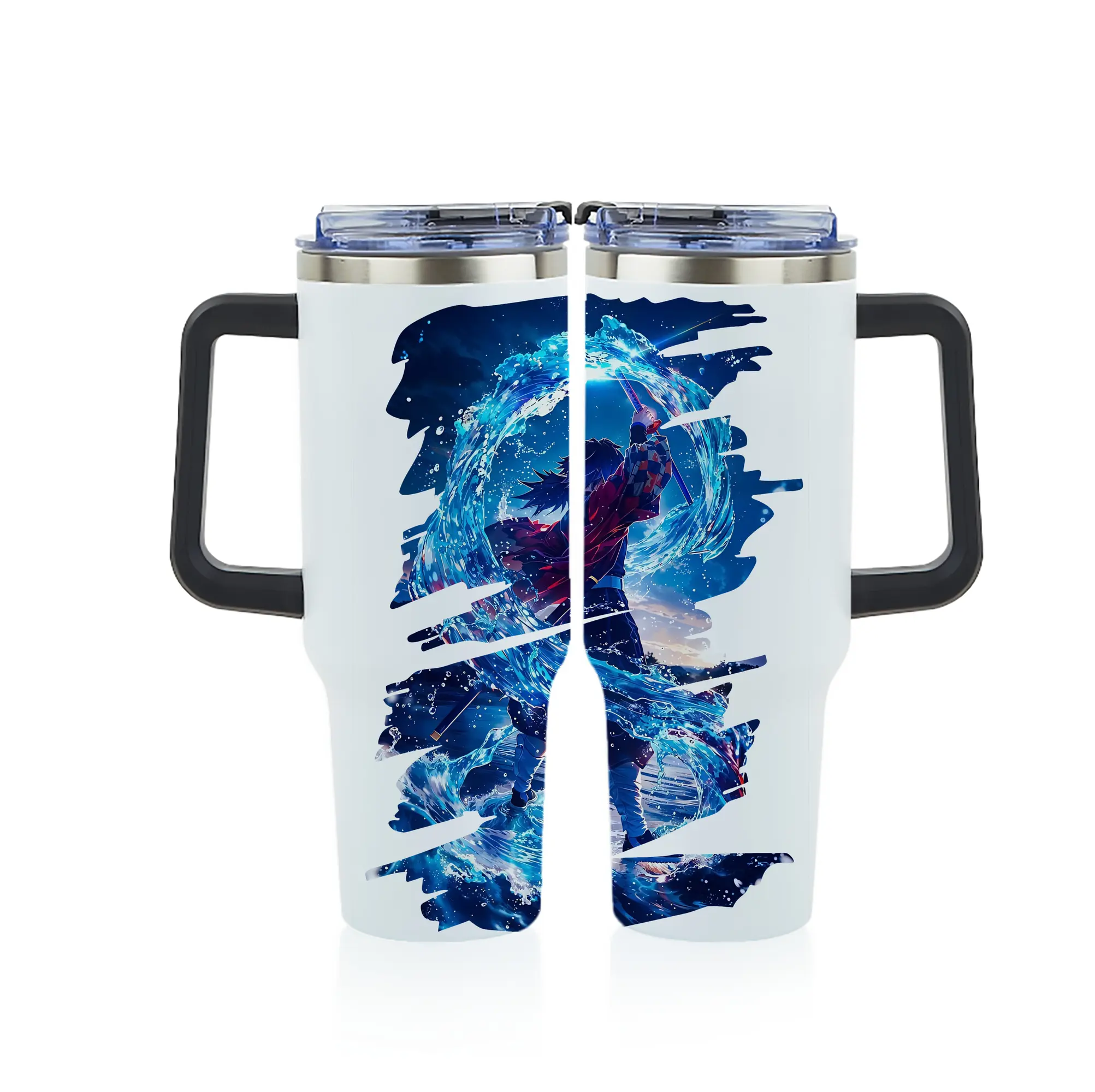 鬼滅の刃 グッズ,冨岡 義勇 - 1200mL フルプリント車用タンブラー ・ 304ステンレス 内側 ・ 201ステンレス 外側 ・ 保温 保冷 ・ 通勤 ドライブ アウトドア用