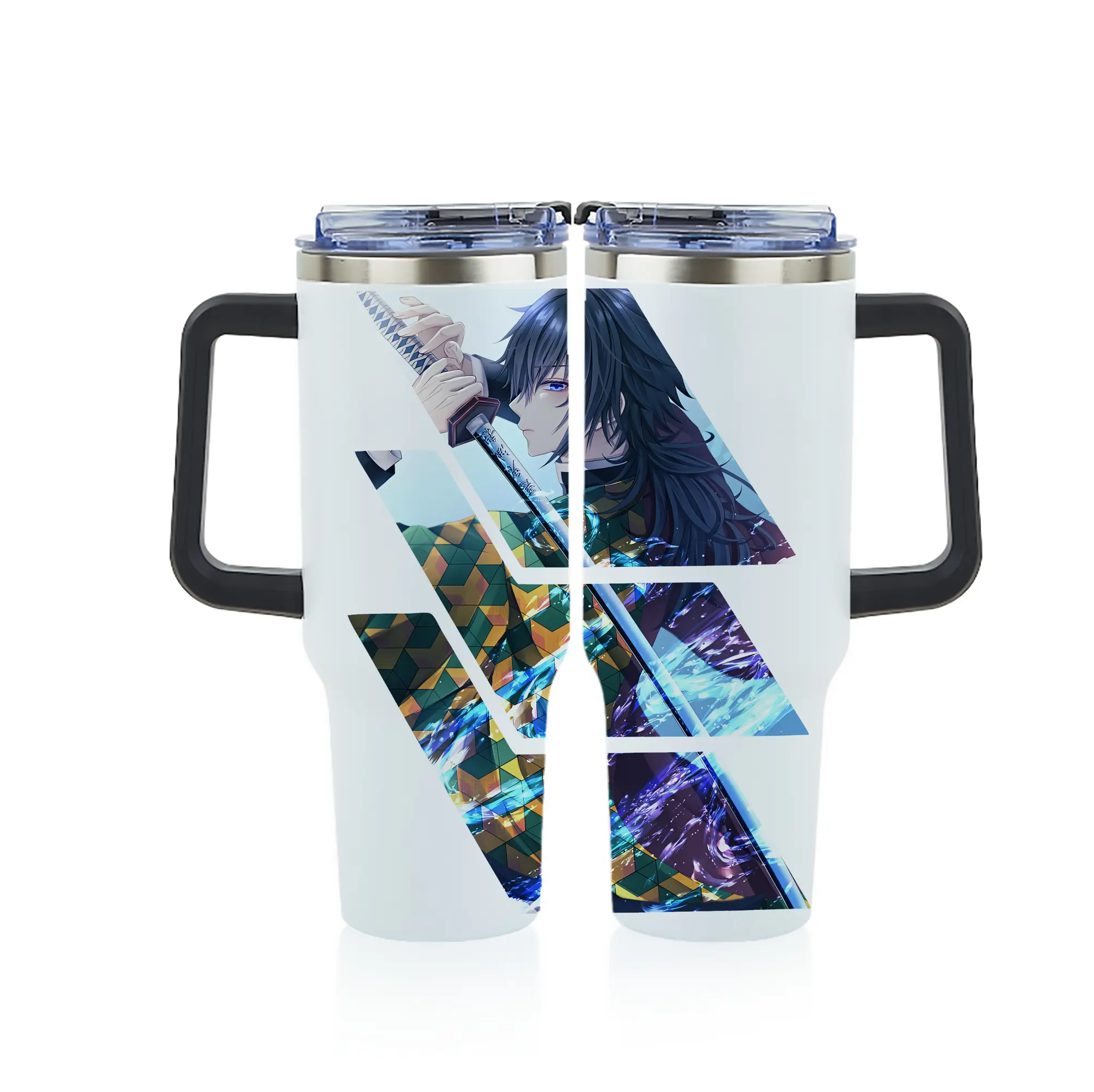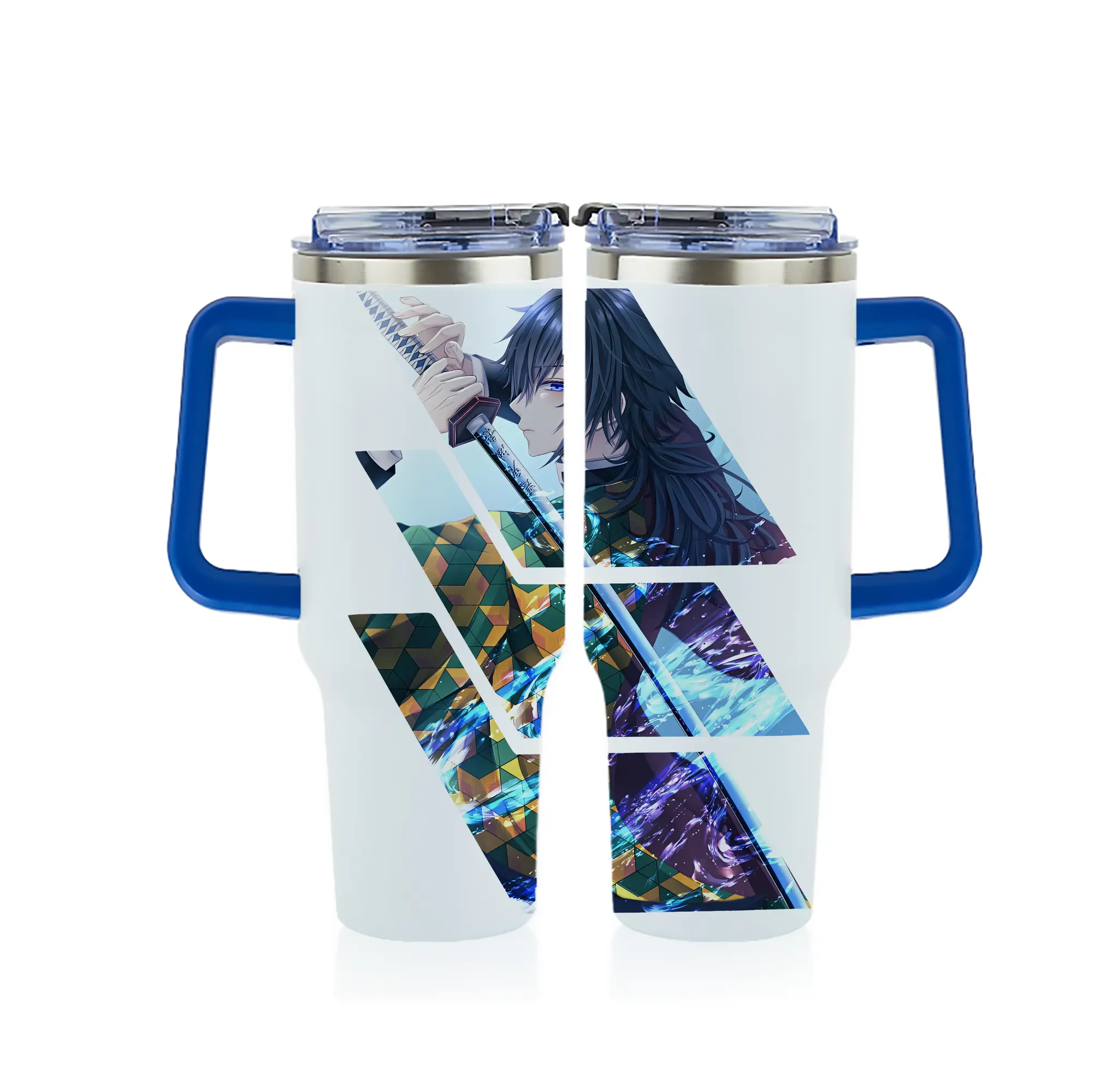 鬼滅の刃 グッズ,冨岡 義勇 - 1200mL フルプリント車用タンブラー ・ 304ステンレス 内側 ・ 201ステンレス 外側 ・ 保温 保冷 ・ 通勤 ドライブ アウトドア用