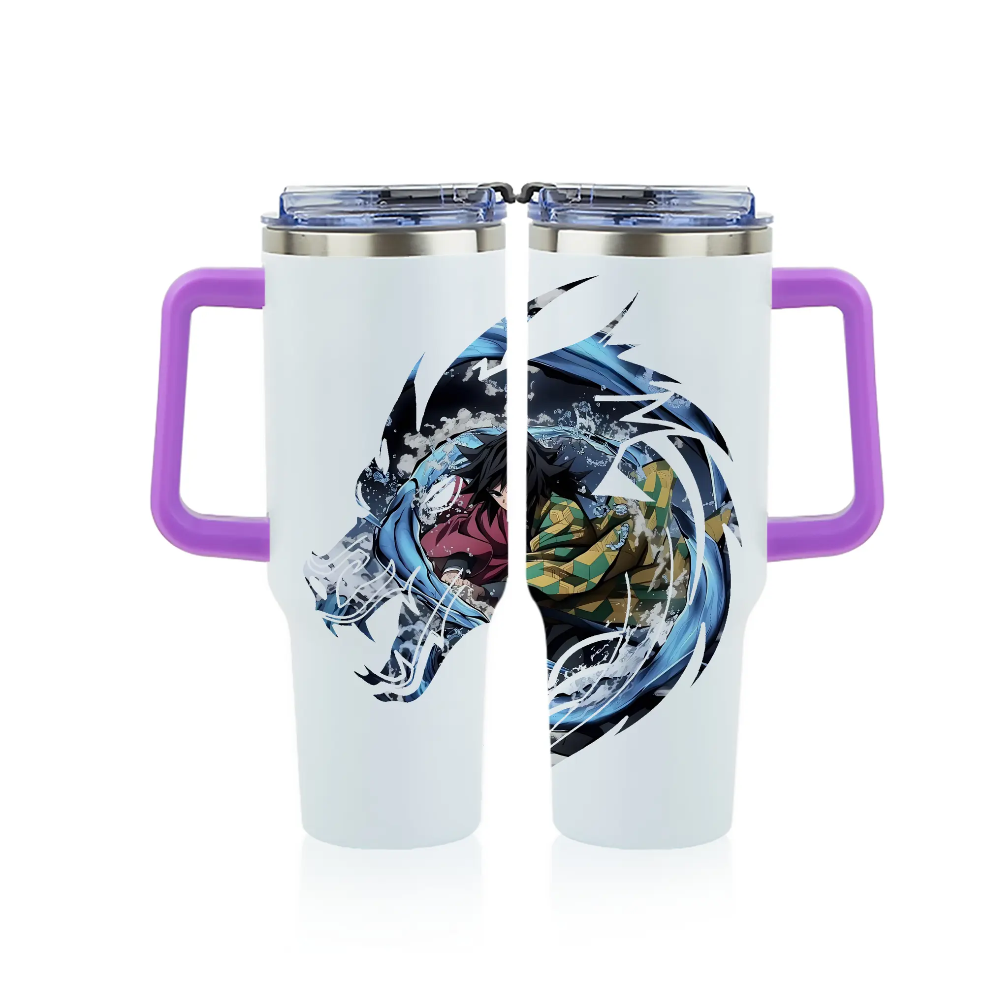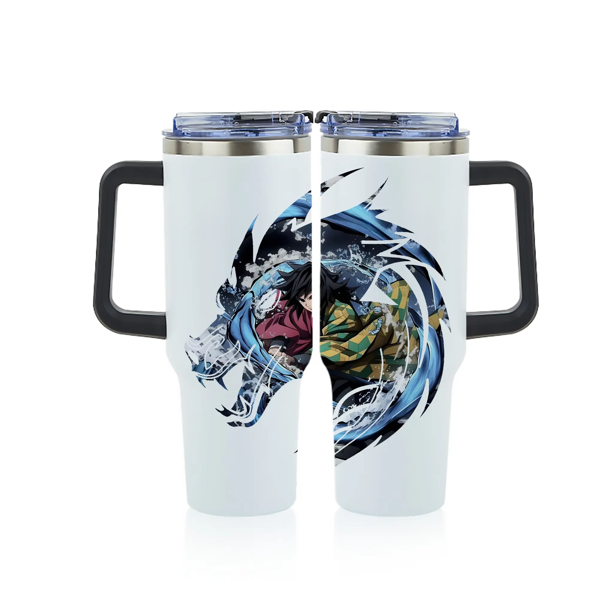 鬼滅の刃 グッズ,冨岡 義勇 - 1200mL フルプリント車用タンブラー ・ 304ステンレス 内側 ・ 201ステンレス 外側 ・ 保温 保冷 ・ 通勤 ドライブ アウトドア用