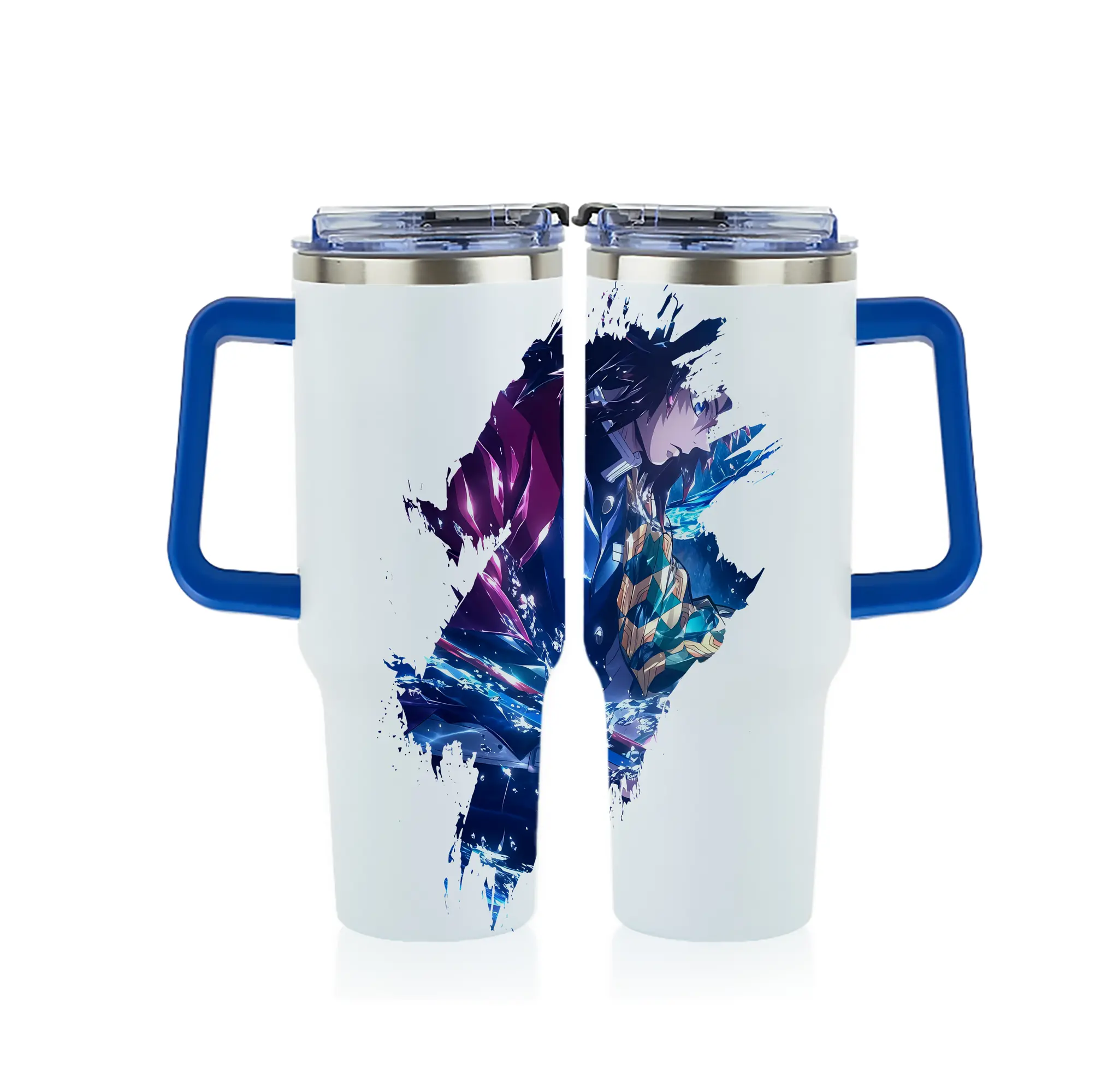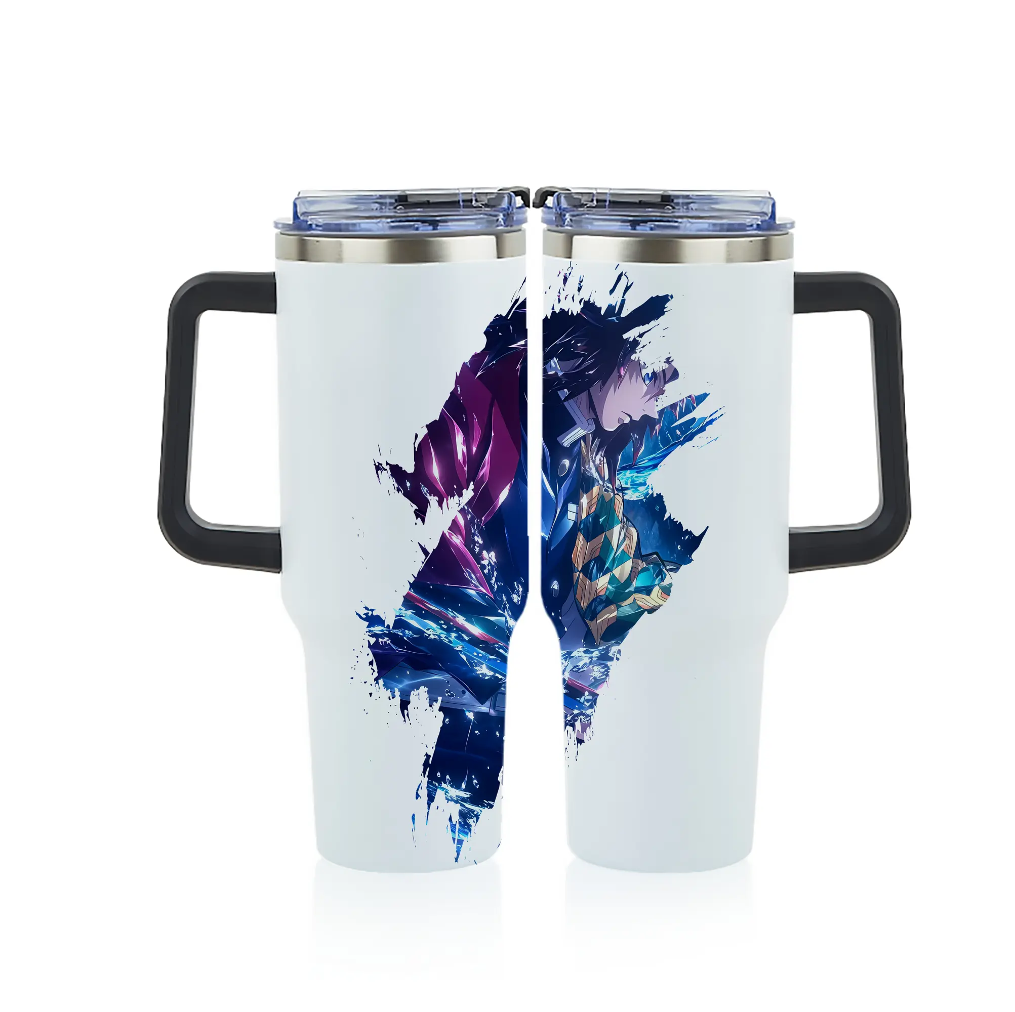 鬼滅の刃 グッズ,冨岡 義勇 - 1200mL フルプリント車用タンブラー ・ 304ステンレス 内側 ・ 201ステンレス 外側 ・ 保温 保冷 ・ 通勤 ドライブ アウトドア用