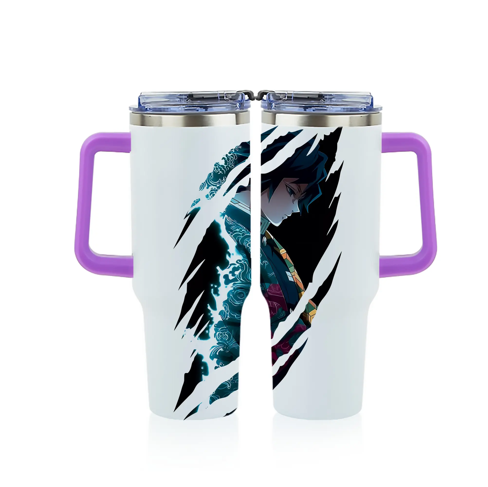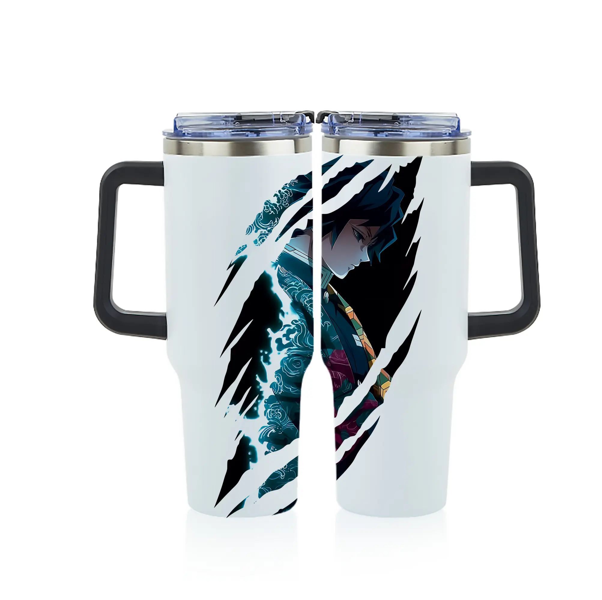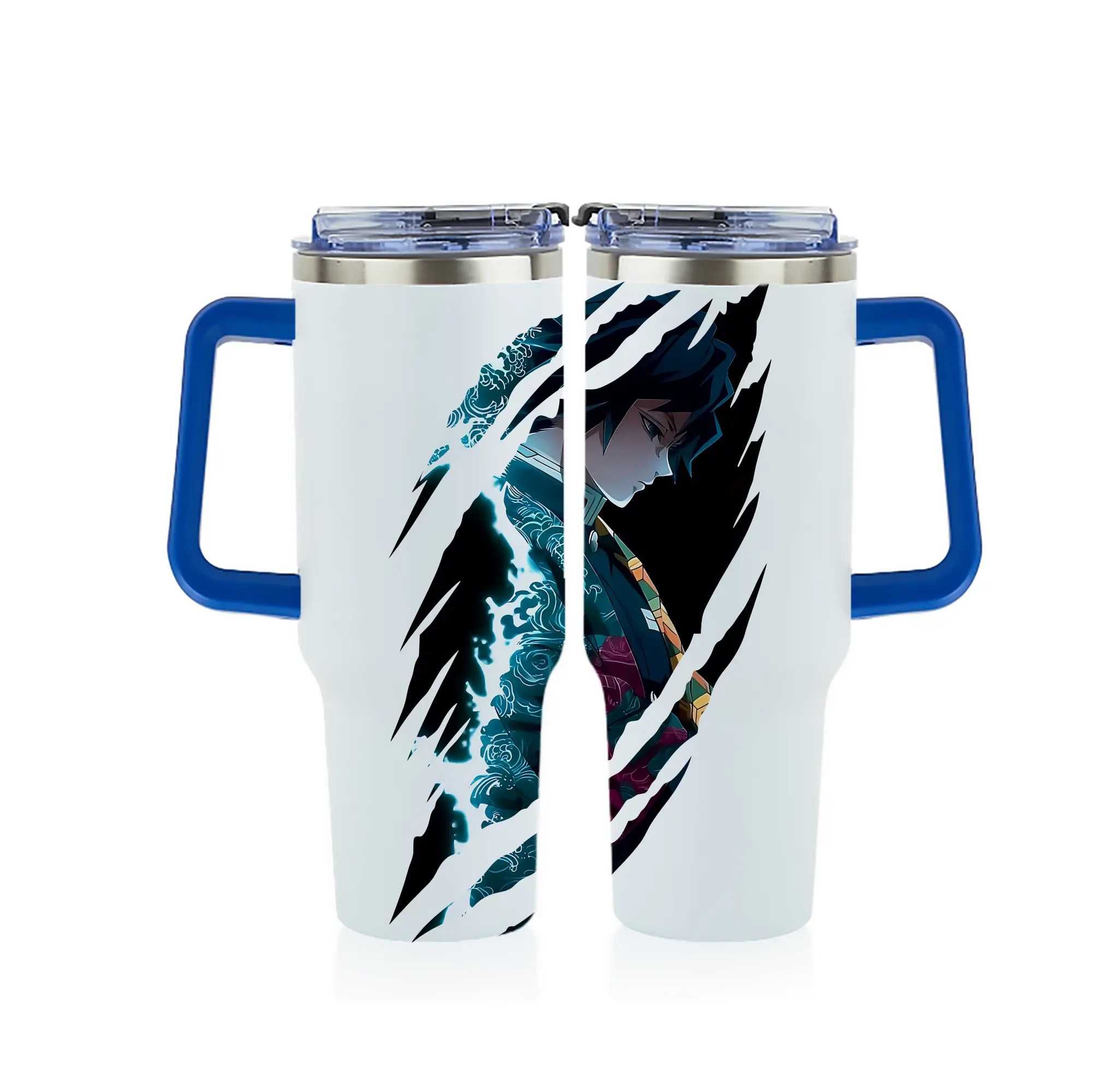 鬼滅の刃 グッズ,冨岡 義勇 - 1200mL フルプリント車用タンブラー ・ 304ステンレス 内側 ・ 201ステンレス 外側 ・ 保温 保冷 ・ 通勤 ドライブ アウトドア用