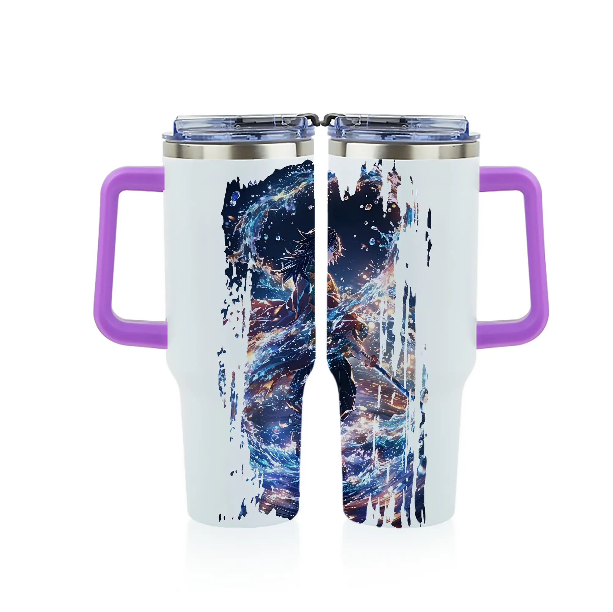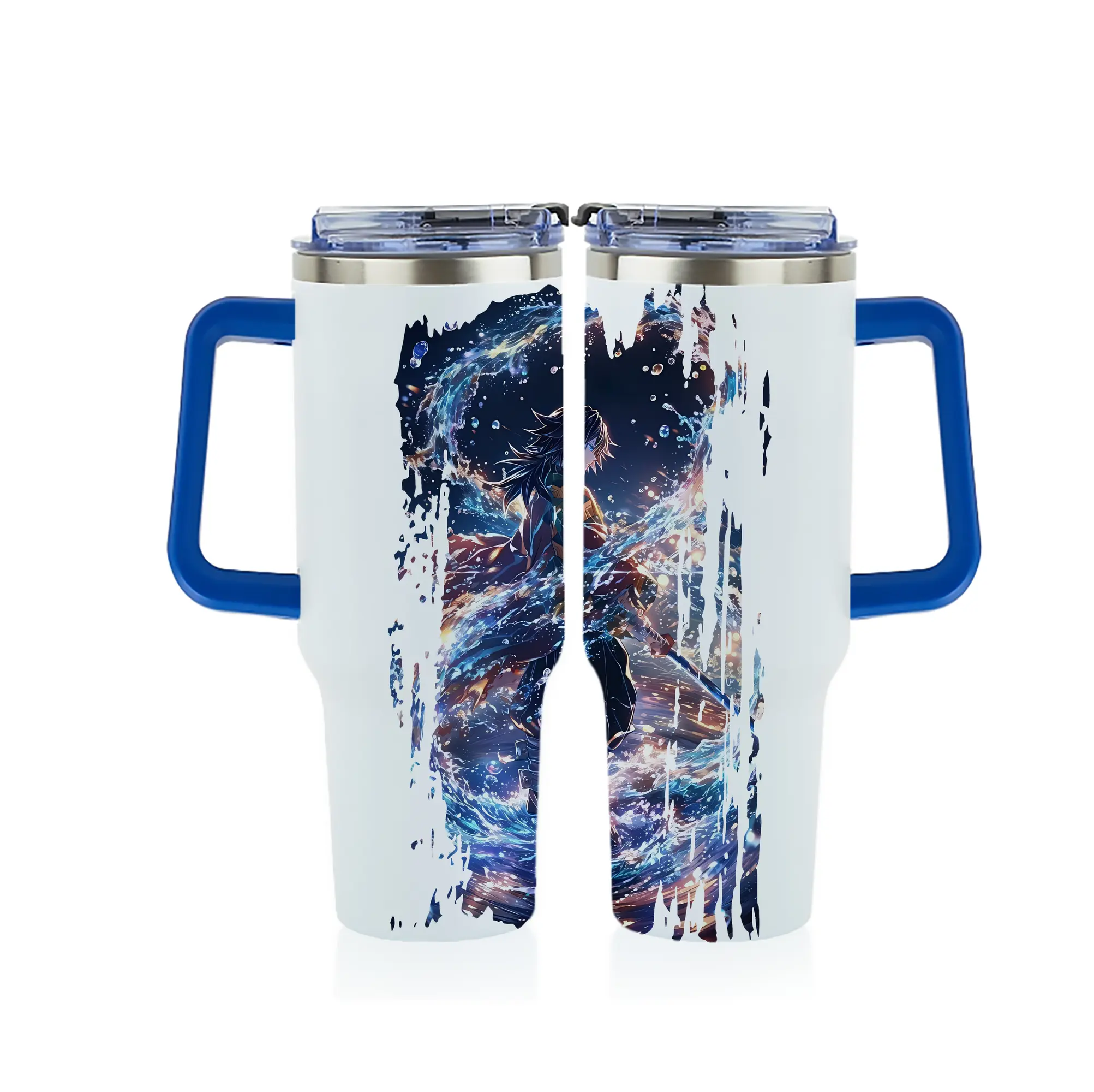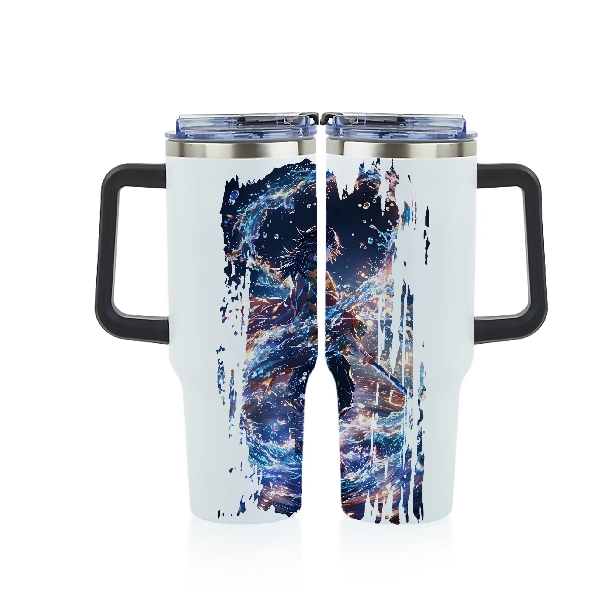 鬼滅の刃 グッズ,冨岡 義勇 - 1200mL フルプリント車用タンブラー ・ 304ステンレス 内側 ・ 201ステンレス 外側 ・ 保温 保冷 ・ 通勤 ドライブ アウトドア用