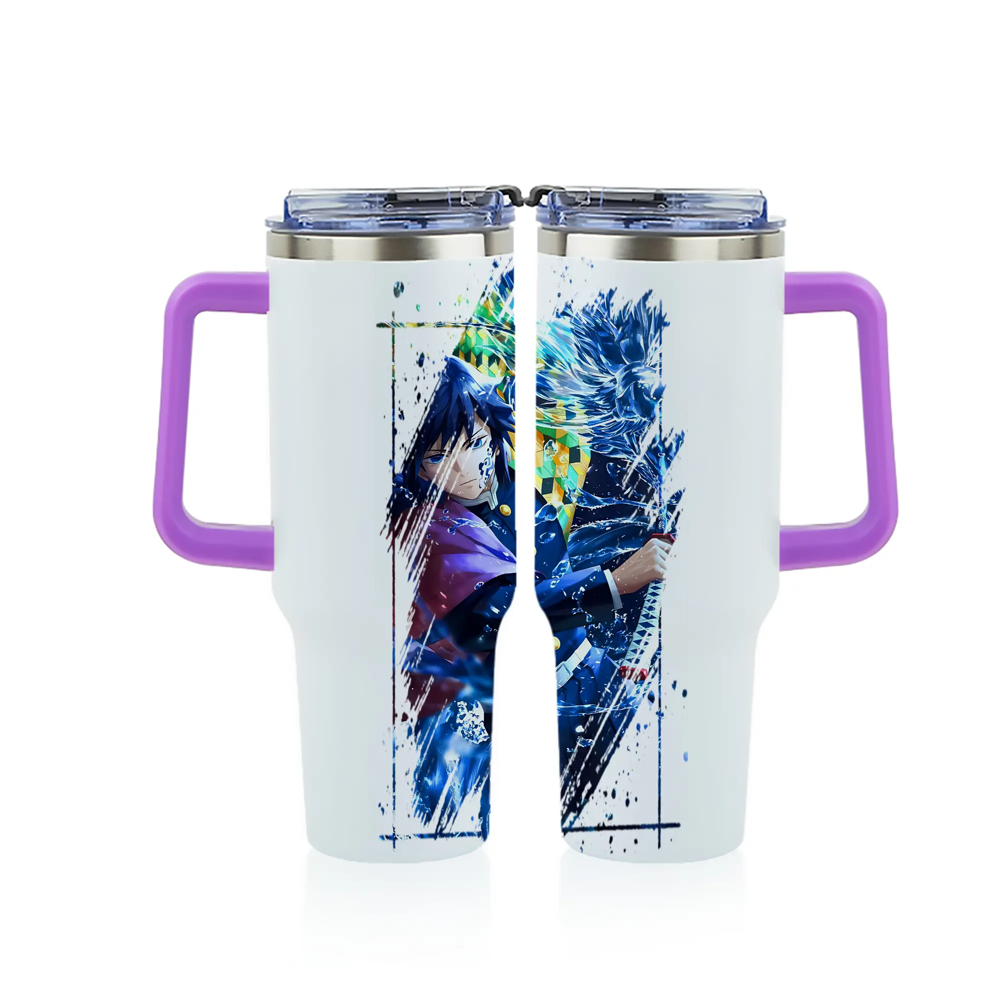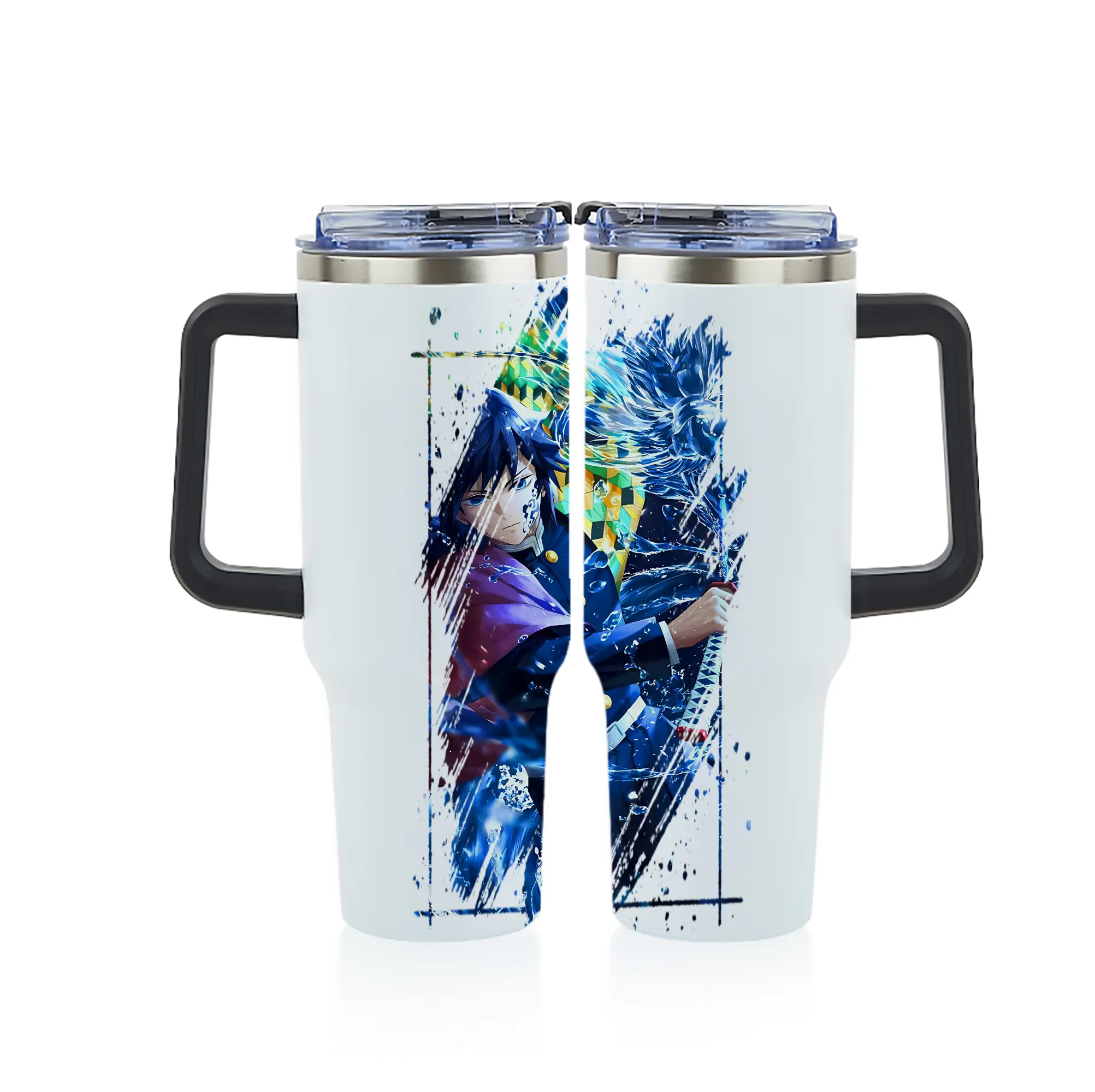 鬼滅の刃 グッズ,冨岡 義勇 - 1200mL フルプリント車用タンブラー ・ 304ステンレス 内側 ・ 201ステンレス 外側 ・ 保温 保冷 ・ 通勤 ドライブ アウトドア用