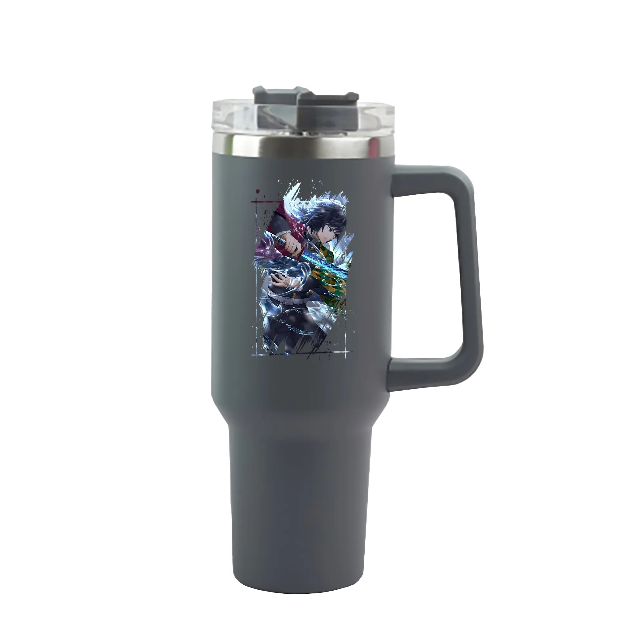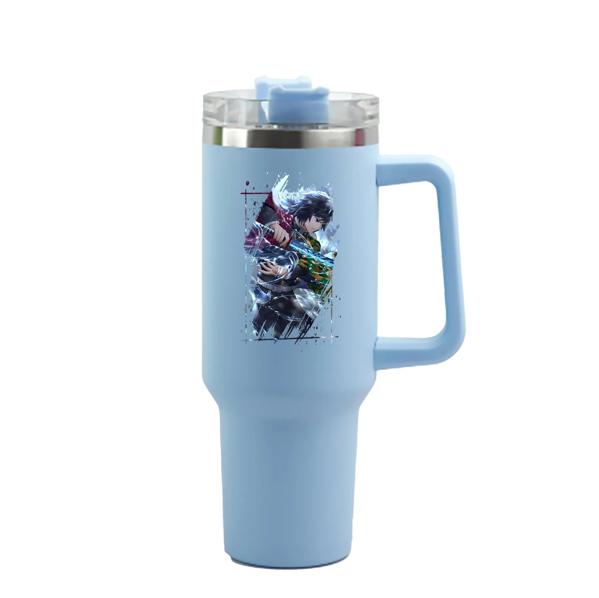 鬼滅の刃 グッズ,冨岡 義勇 - 1200mL 車用タンブラー ・ クリスタルステッカー ・ 304ステンレス 内側 ・ 201ステンレス 外側 ・ 保温 保冷 ・ ハンドル&ストロー付き ・ 通勤 ドライブ アウトドア用